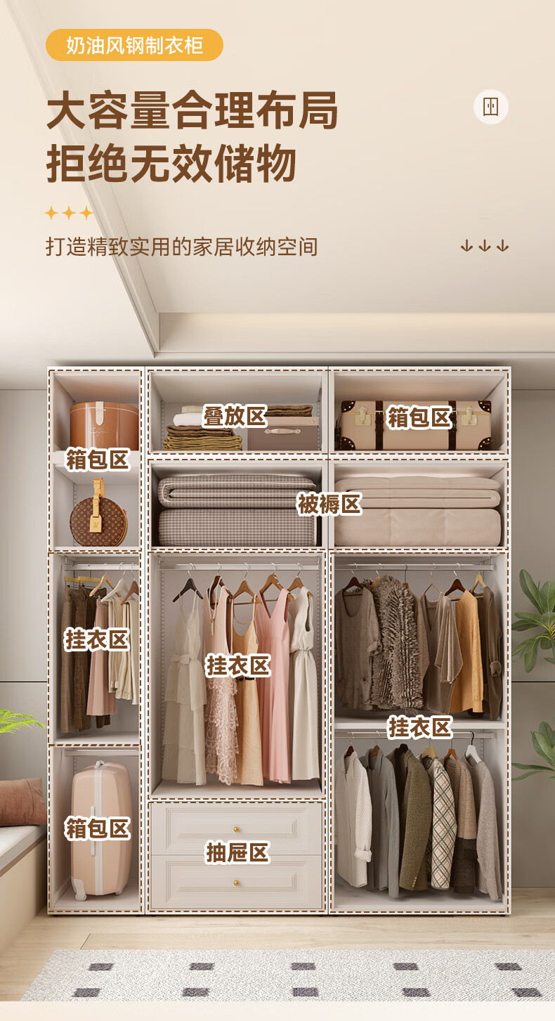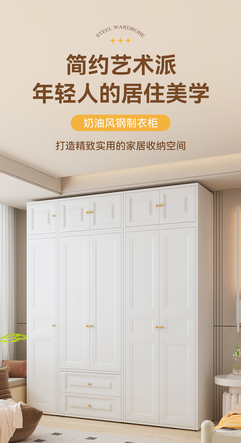 Jiachi household iron wardrobe steel simple bedroom children's wardrobe iron sliding door balcony storage cabinet moisture-proof cabinet 424*550*400mm single door top cabinet environmentally friendly certified combination wardrobe door-to-door delivery + master installation