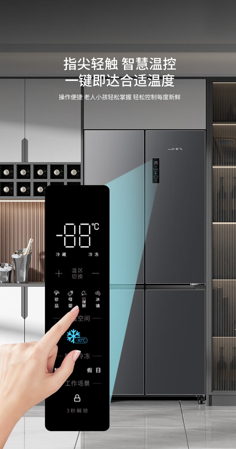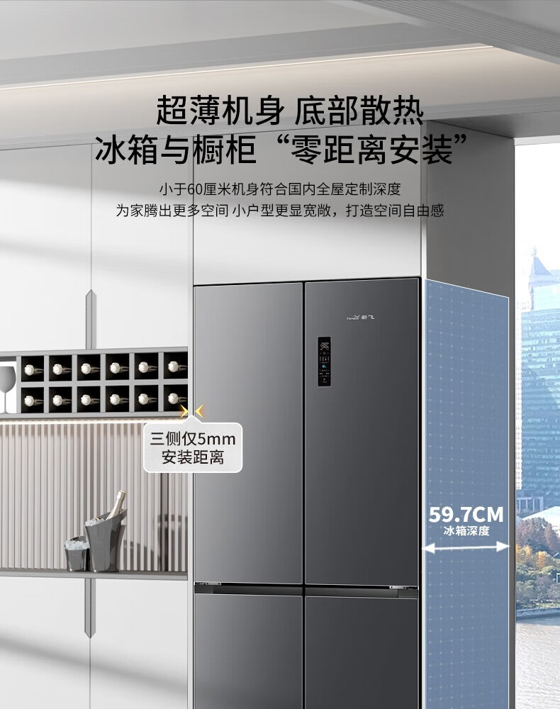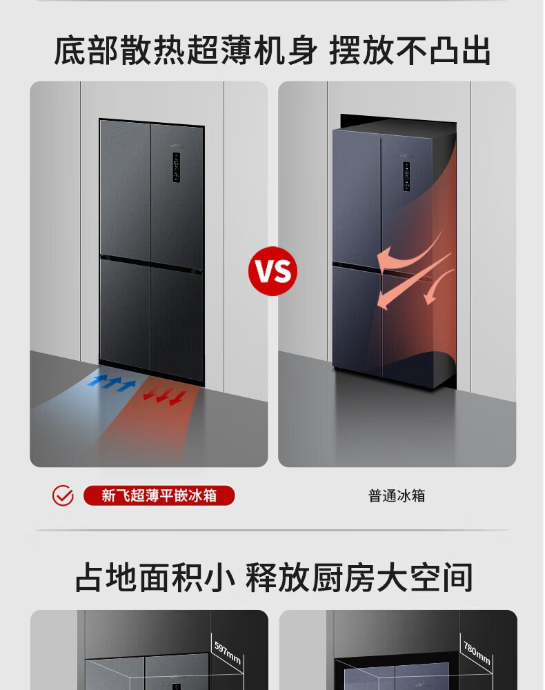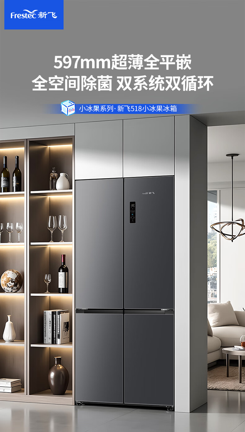Xinfei (Frestec) 518-liter cross four-door ultra-thin zero-embedded household refrigerator, full space sterilization, double purification, first-level frequency conversion, air-cooling, frost-free BCD-518WKQS8AT, dual purification and dual-system ice making, 518 sterilization flat embedded