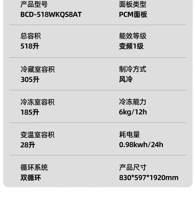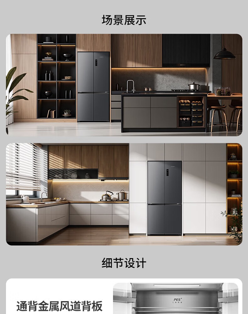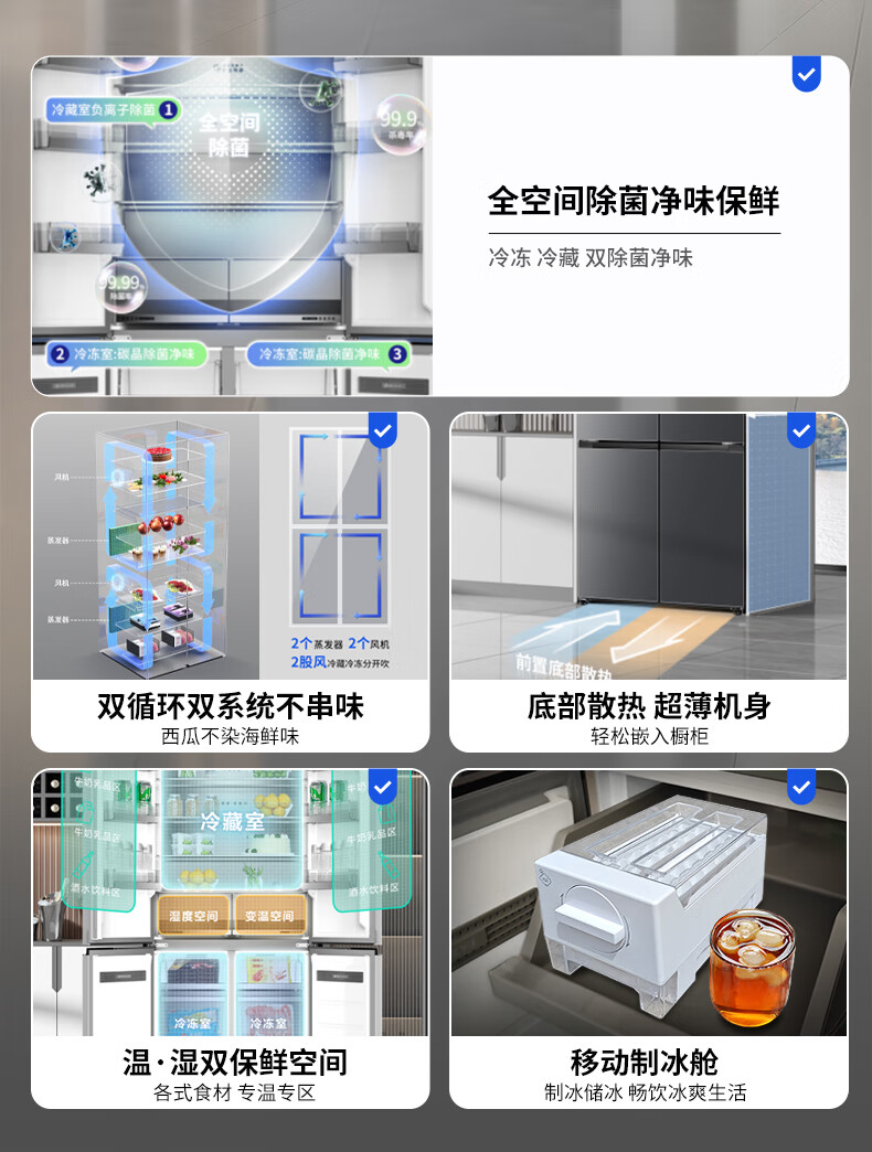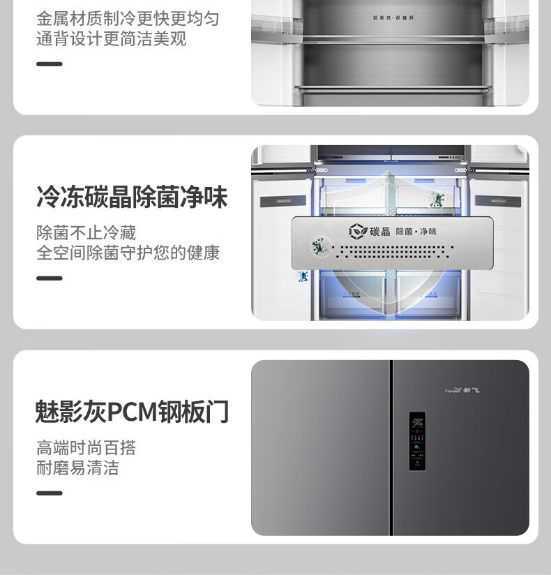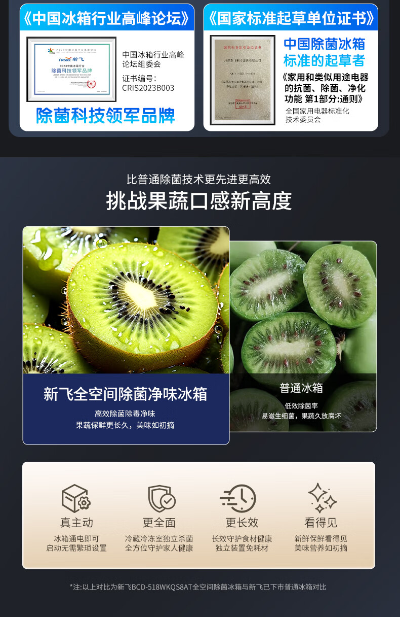 Xinfei (Frestec) 518-liter cross four-door ultra-thin zero-embedded household refrigerator, full space sterilization, double purification, first-level frequency conversion, air-cooling, frost-free BCD-518WKQS8AT, dual purification and dual-system ice making, 518 sterilization flat embedded
