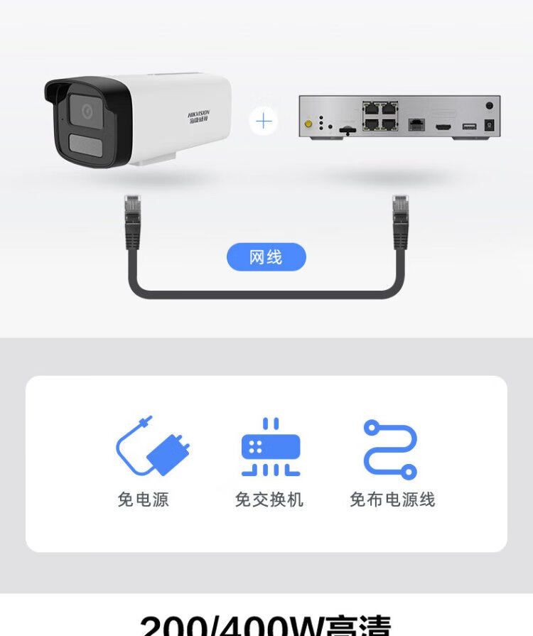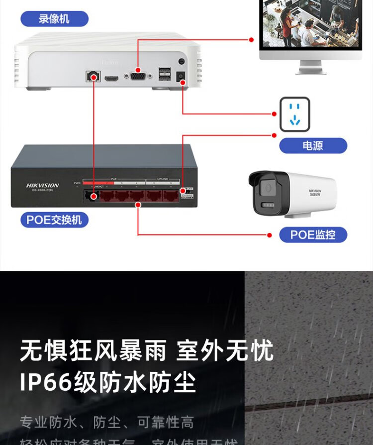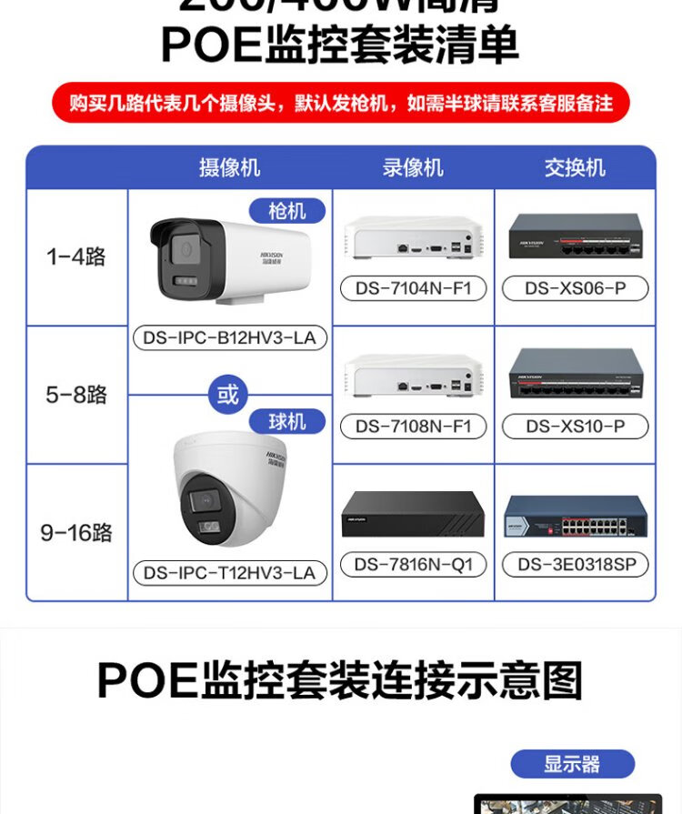 Hikvision surveillance camera set security anti-theft shop supermarket factory warehouse enterprise multi-scenario solution customized high-definition full-color mobile phone remote monitoring 4 cameras + 1 4-way video recorder + POE switch 6T hard drive 4MP 4 million pixels (customized)