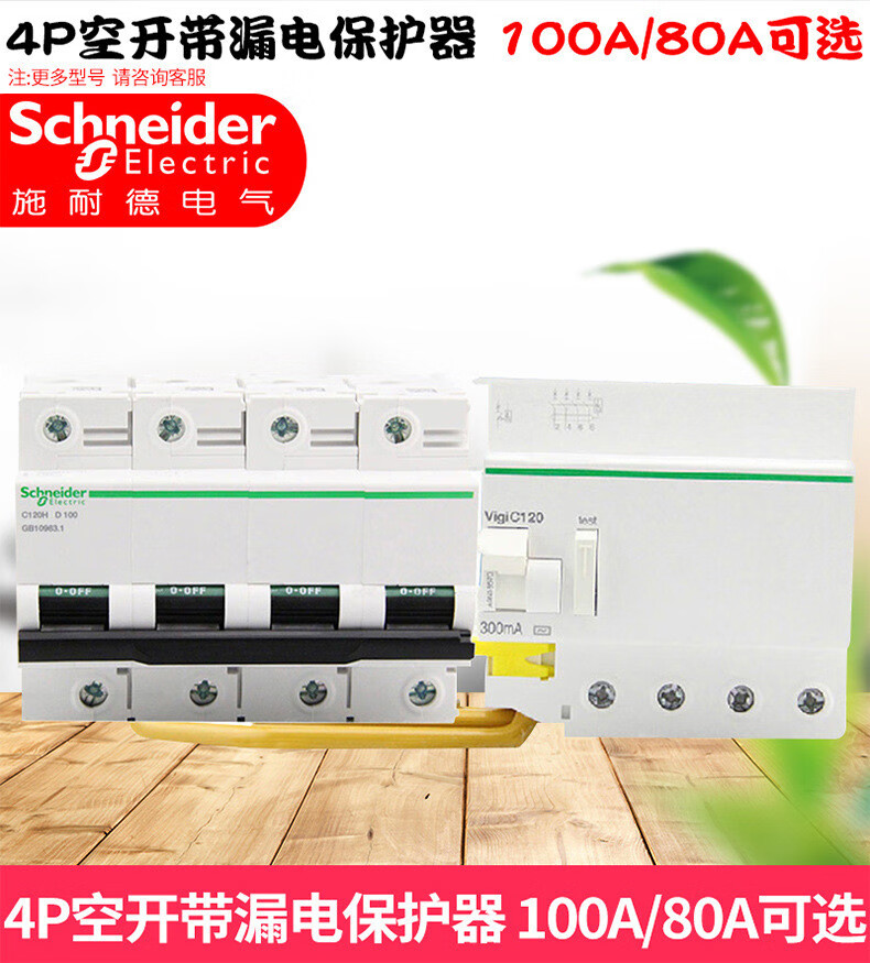 Schneider leakage protector C120HVIGI circuit breaker 380V three-phase four-wire 300MA switch 4P100A 80A 4p