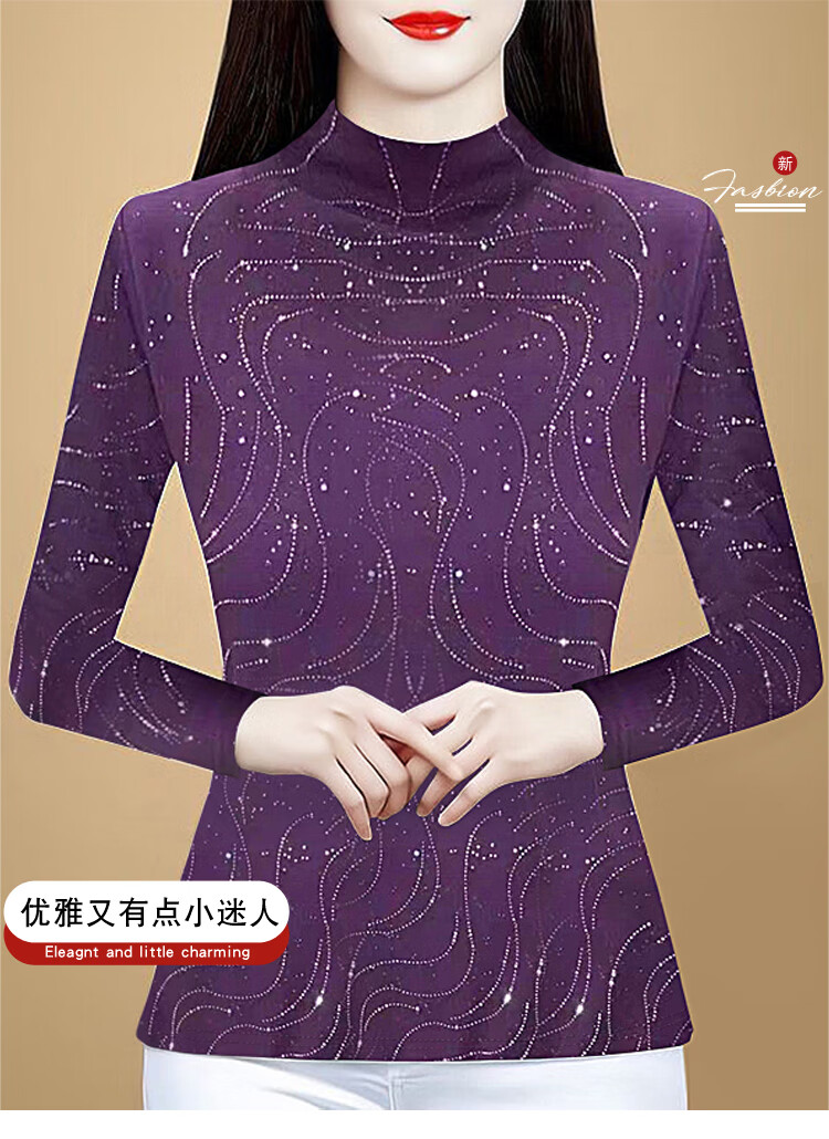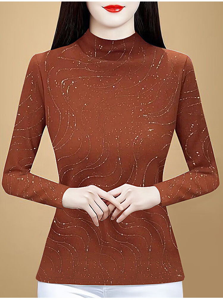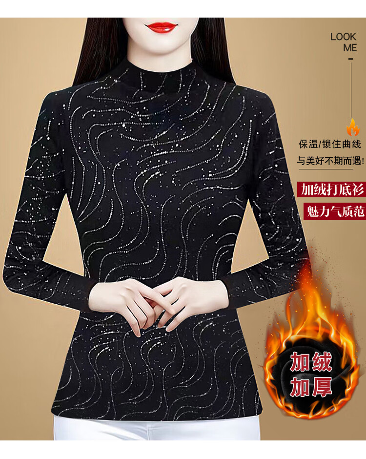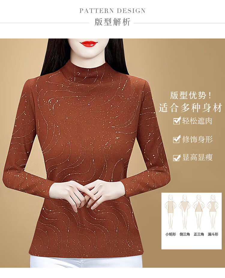 Woodpecker (TUCANO) velvet and thickened lace bottoming shirt for women, stylish autumn and winter 2026 new warm long-sleeved half-turtle collar top, orange, velvet, thickened, 3XL, recommended 135-150 pounds