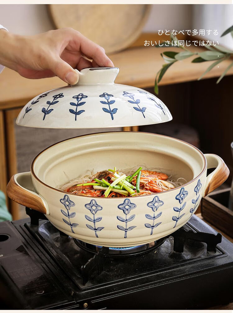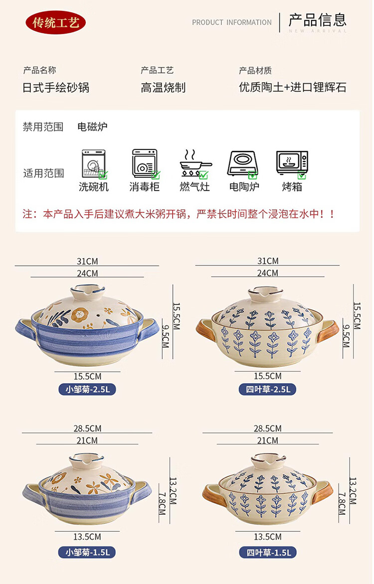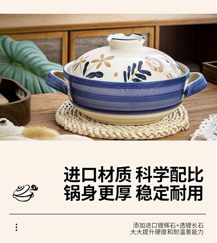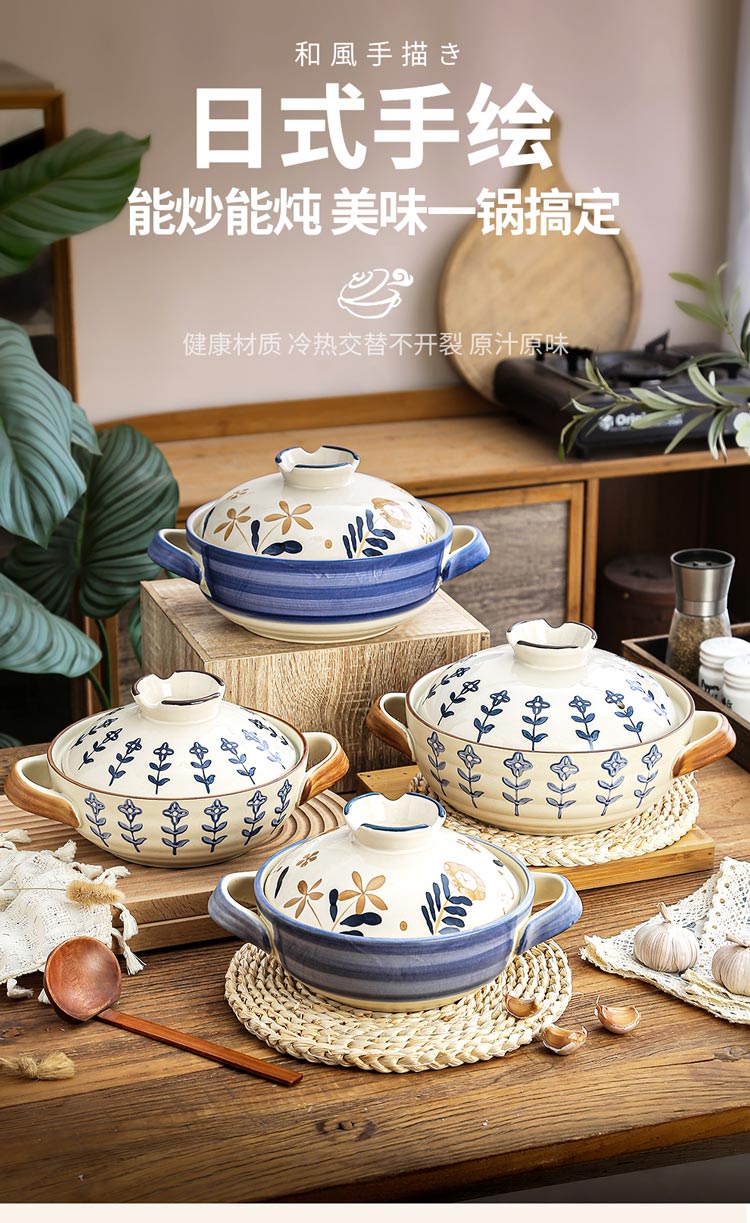Japanese-style casserole pot household high-temperature-resistant ceramic pot dry-cooked without cracking soup stew clay pot rice gas stove special pot four-leaf clover-2.5 liters + casserole mat 2500ml