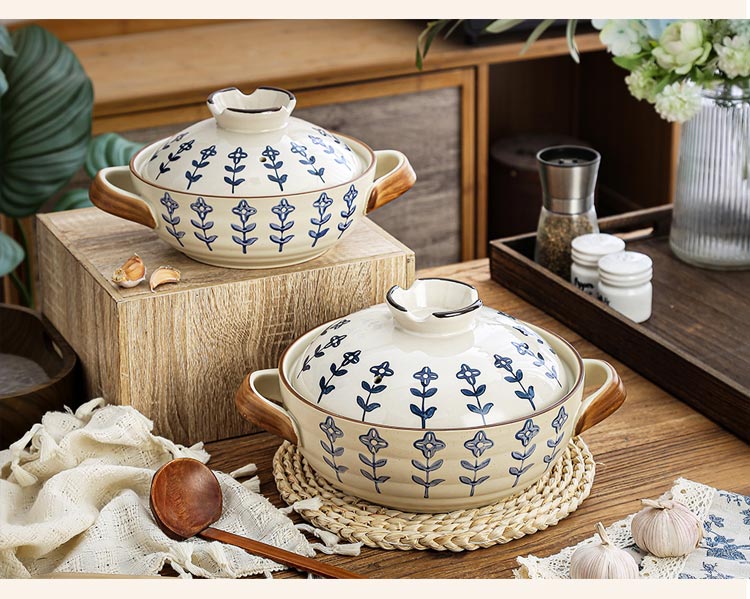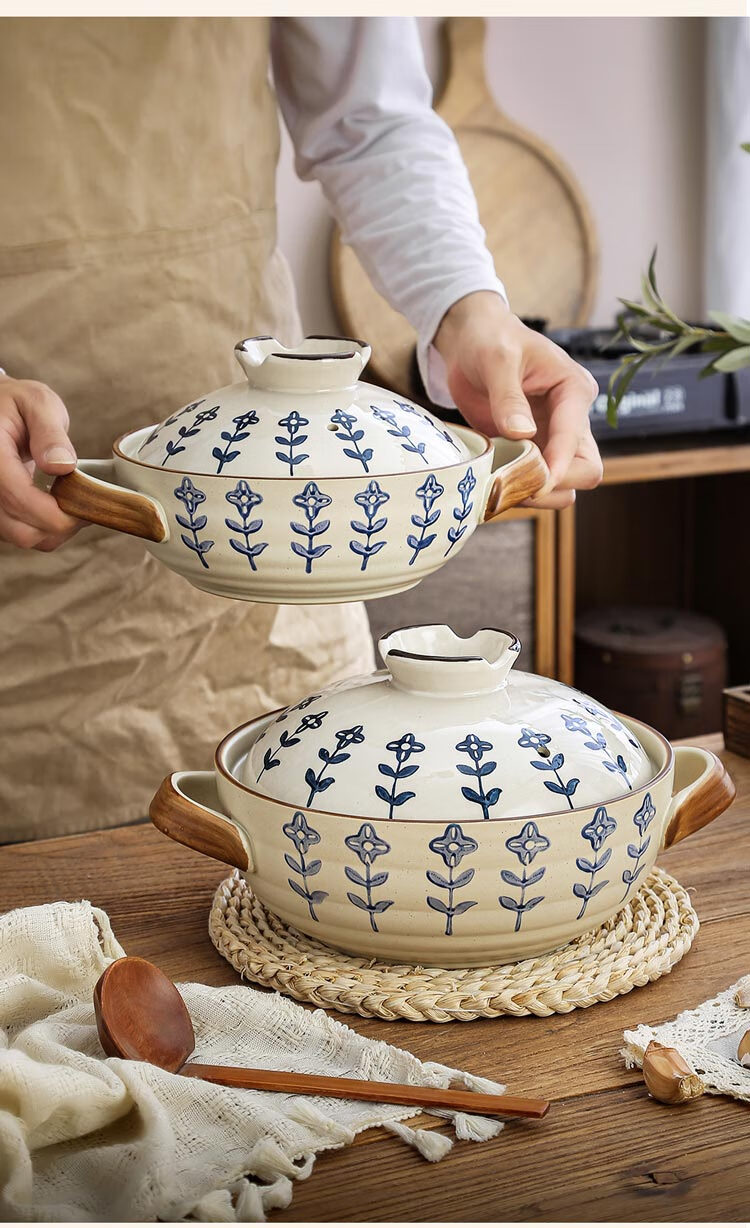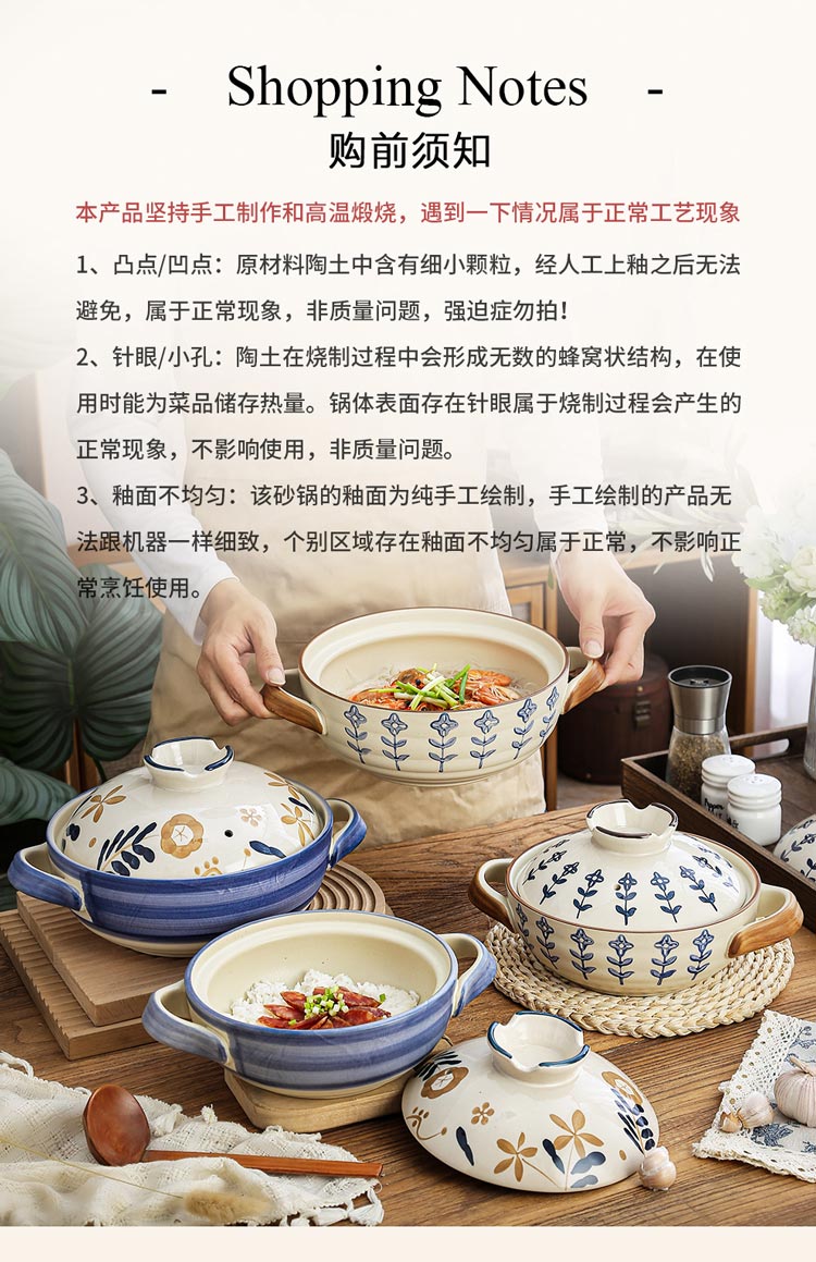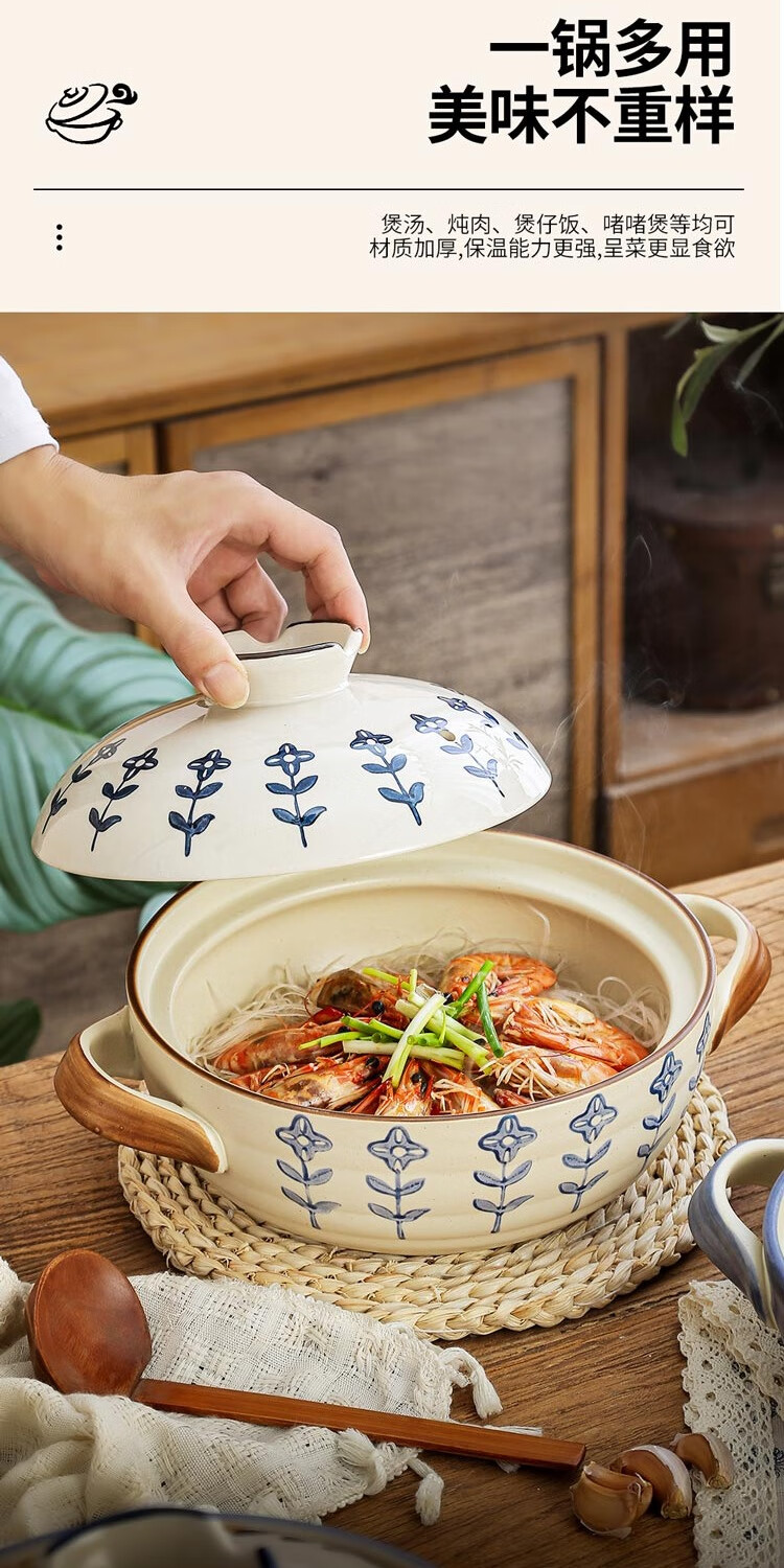 Japanese-style casserole pot household high-temperature-resistant ceramic pot dry-cooked without cracking soup stew clay pot rice gas stove special pot four-leaf clover-2.5 liters + casserole mat 2500ml