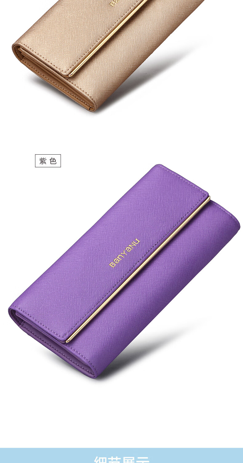 Banyanu 2025 New Women's Wallet Long Leather Clutch Fashionable Large Capacity Women's Wallet Wallet Can Hold Mobile Phone Purple