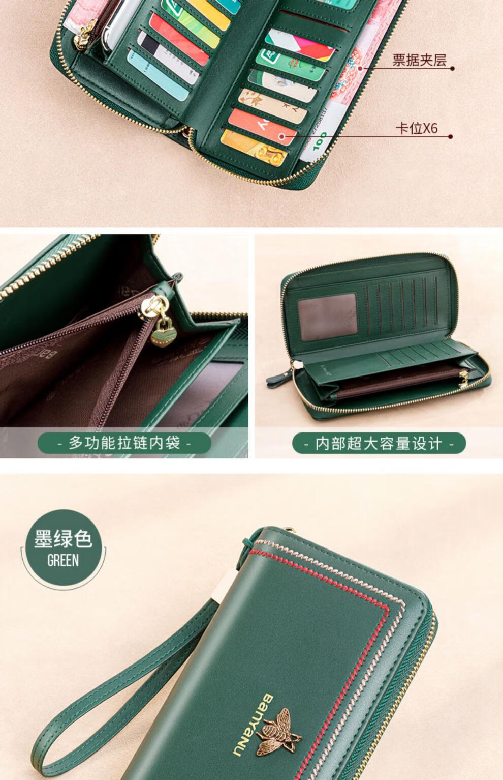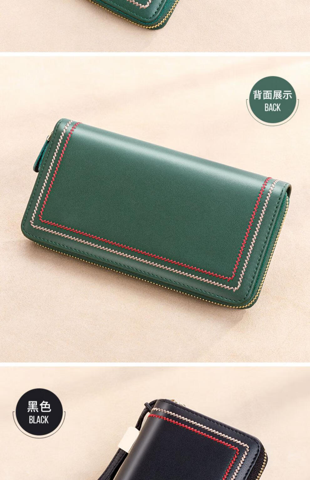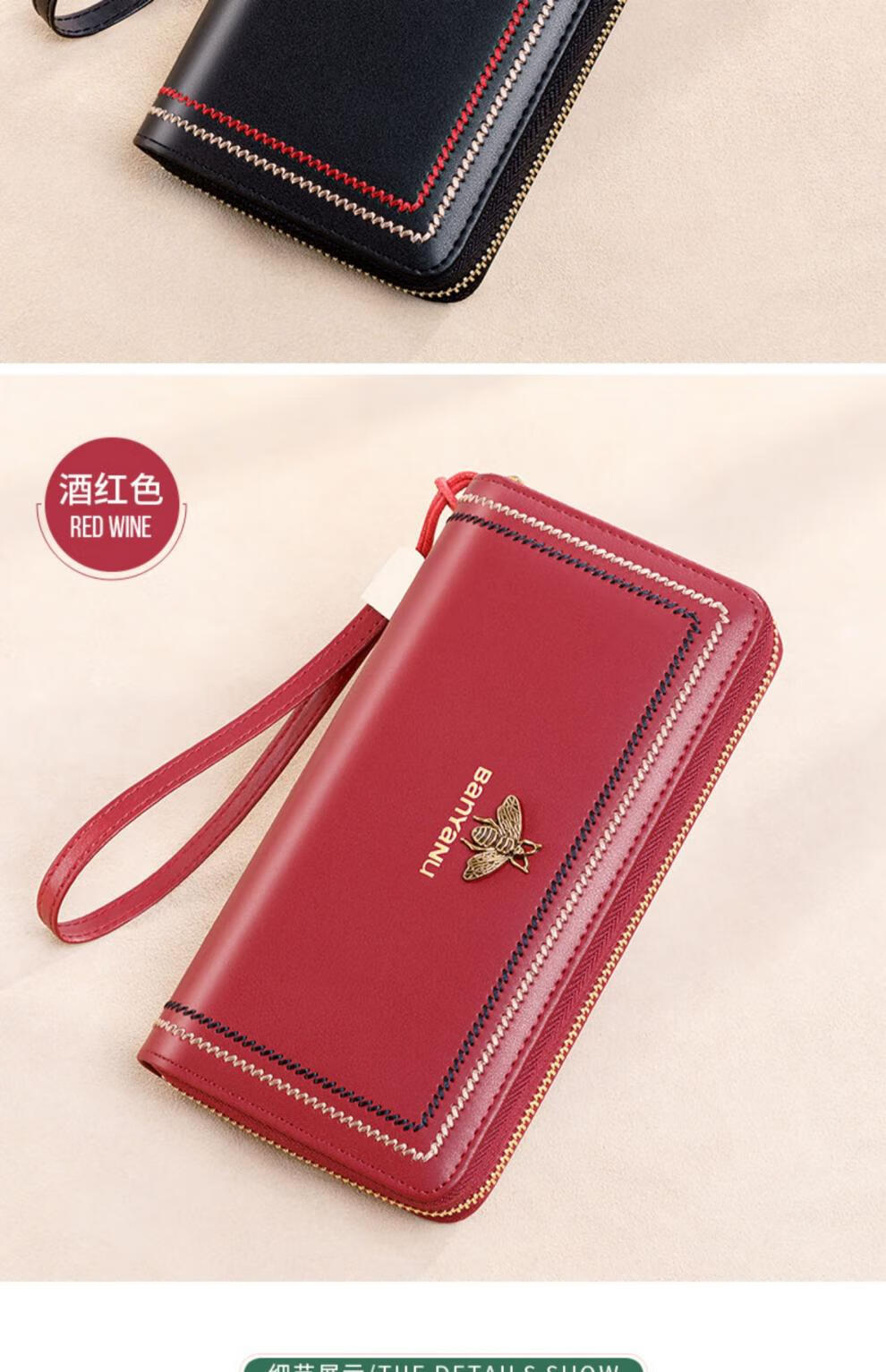 Banyanu Wallet Women's 2025 New Genuine Leather Large Capacity Long Women's Wallet Simple Multi-Function Clutch Women Black (Nappa Cowhide) - Anti-Theft Brush