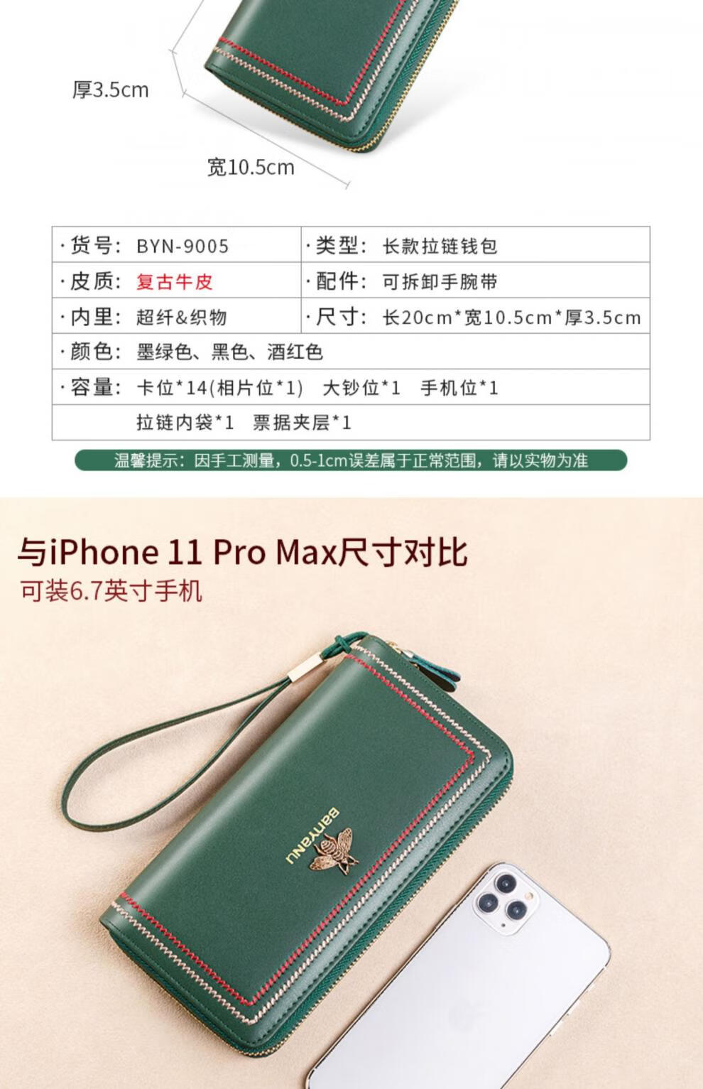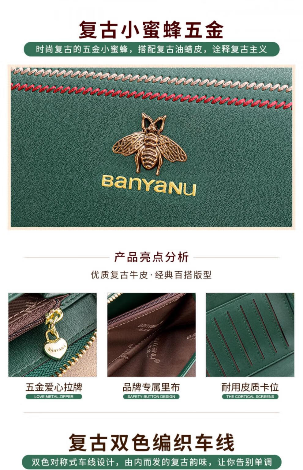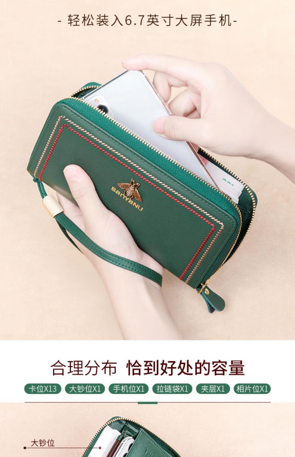 Banyanu Wallet Women's 2025 New Genuine Leather Large Capacity Long Women's Wallet Simple Multi-Function Clutch Women Black (Nappa Cowhide) - Anti-Theft Brush