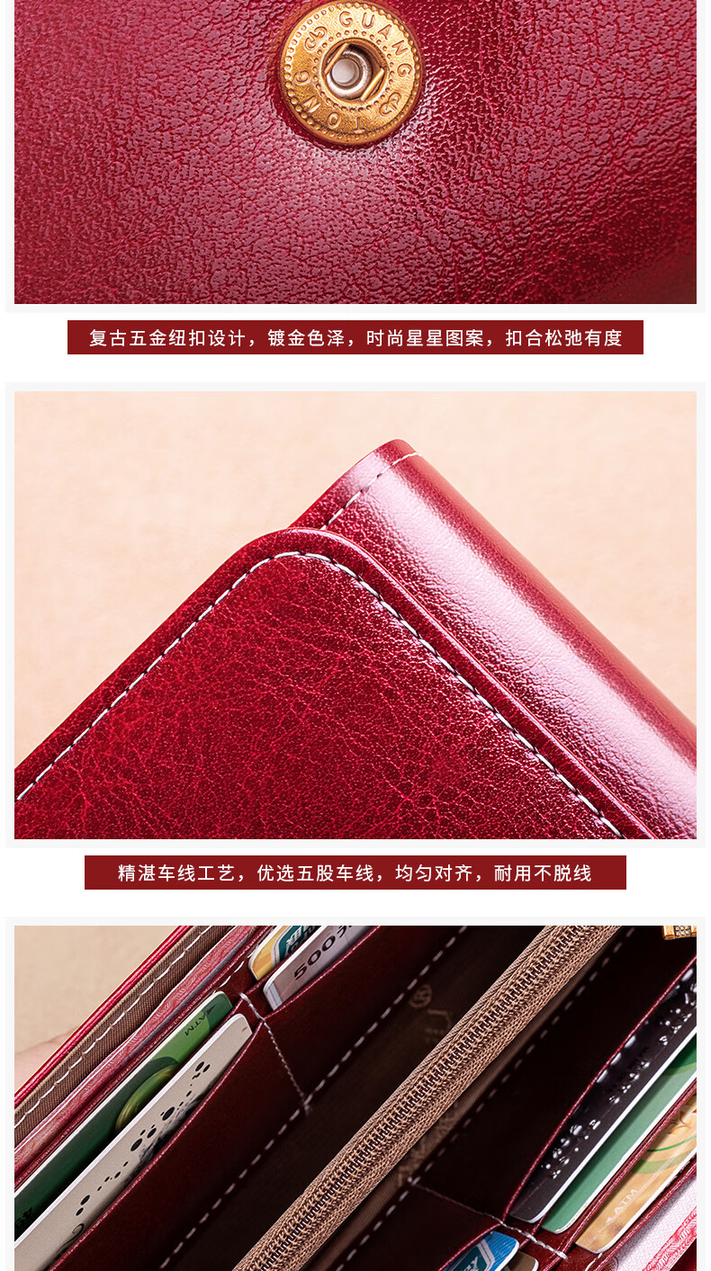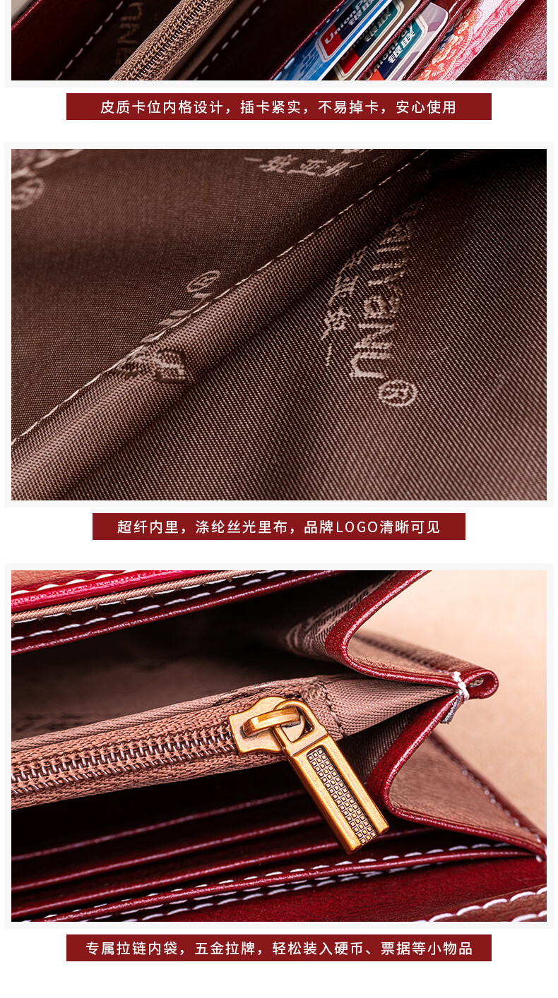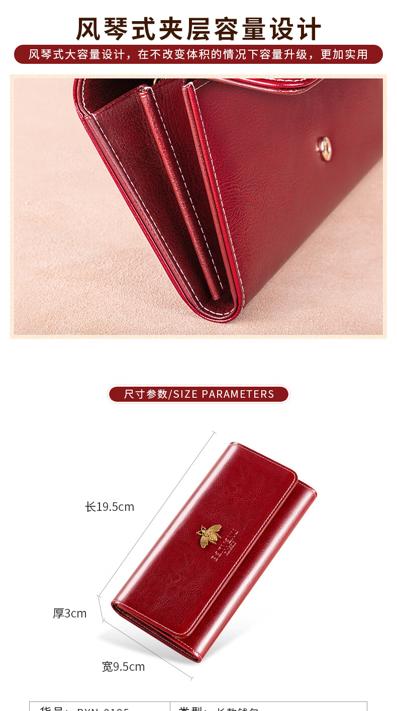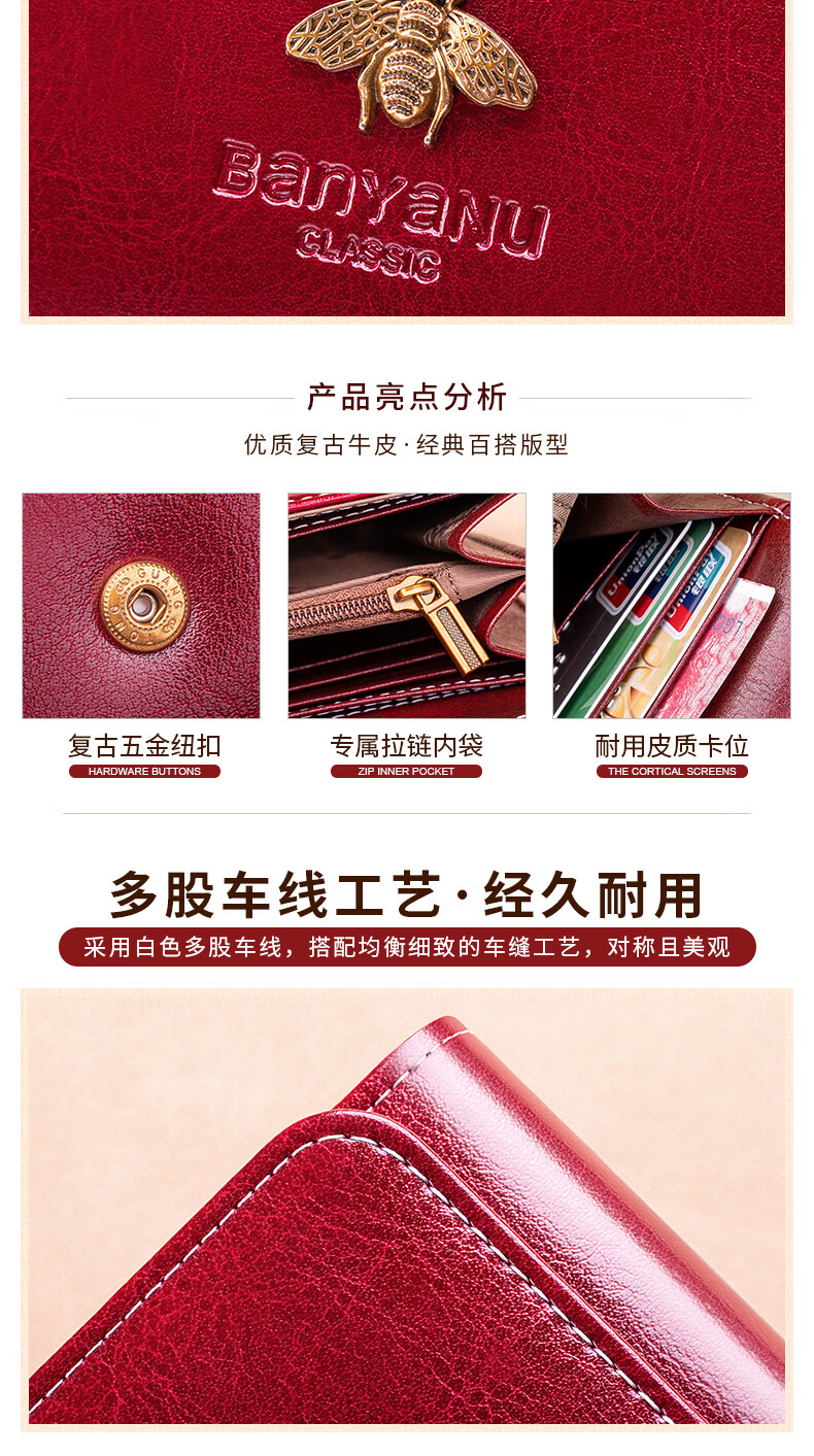 Banyanu wallet women's long genuine leather fashionable large capacity 2025 new style exquisite Korean style simple multi-functional wallet burgundy - anti-theft brush