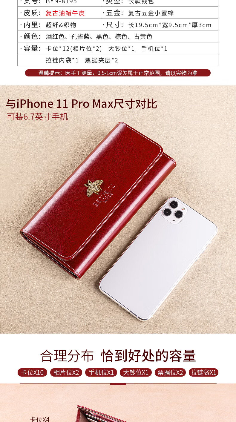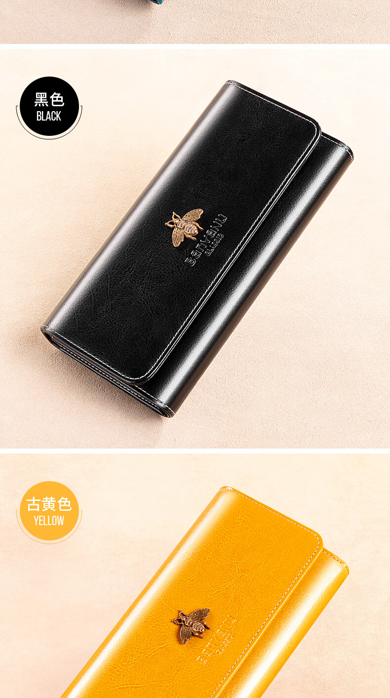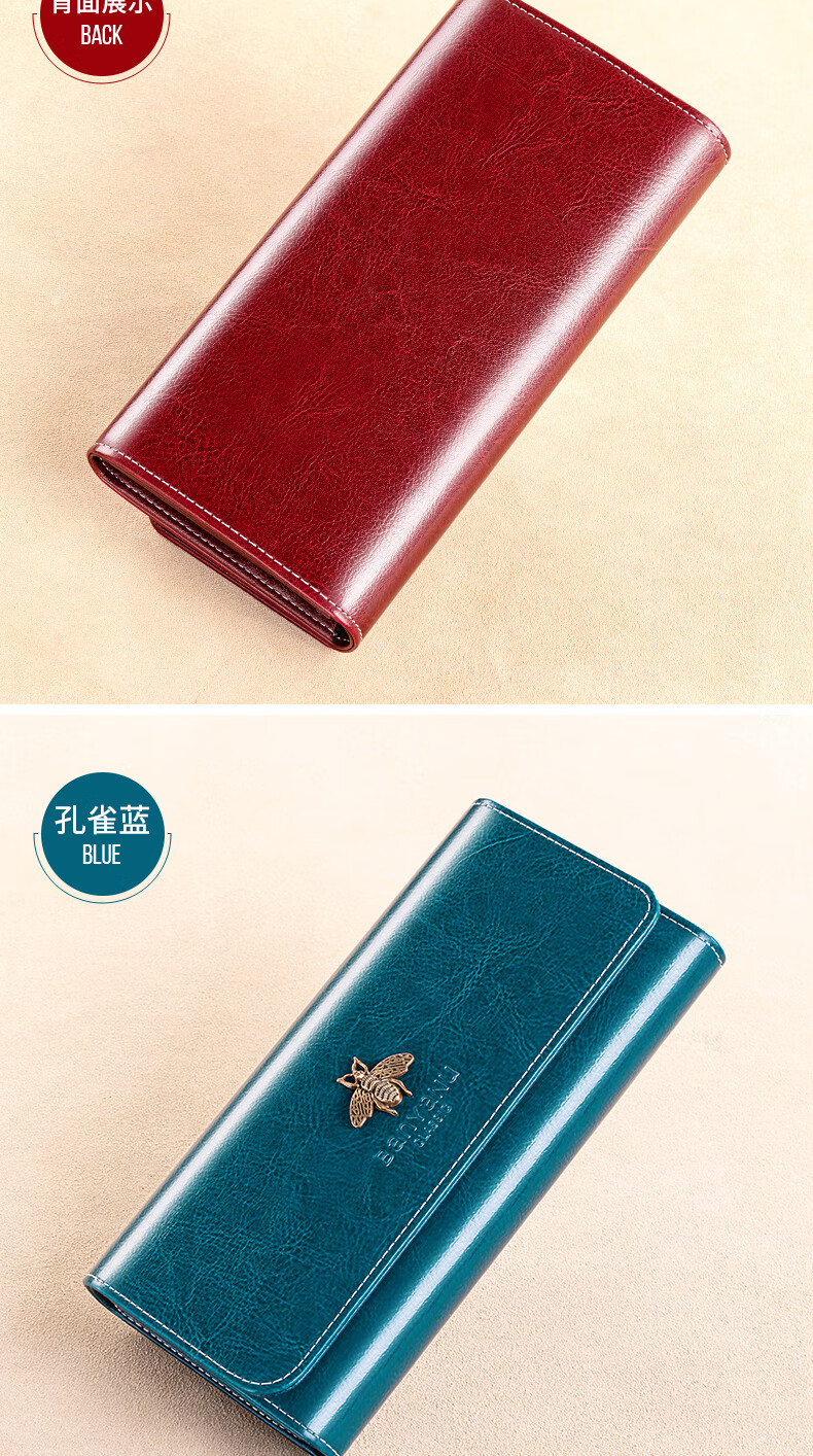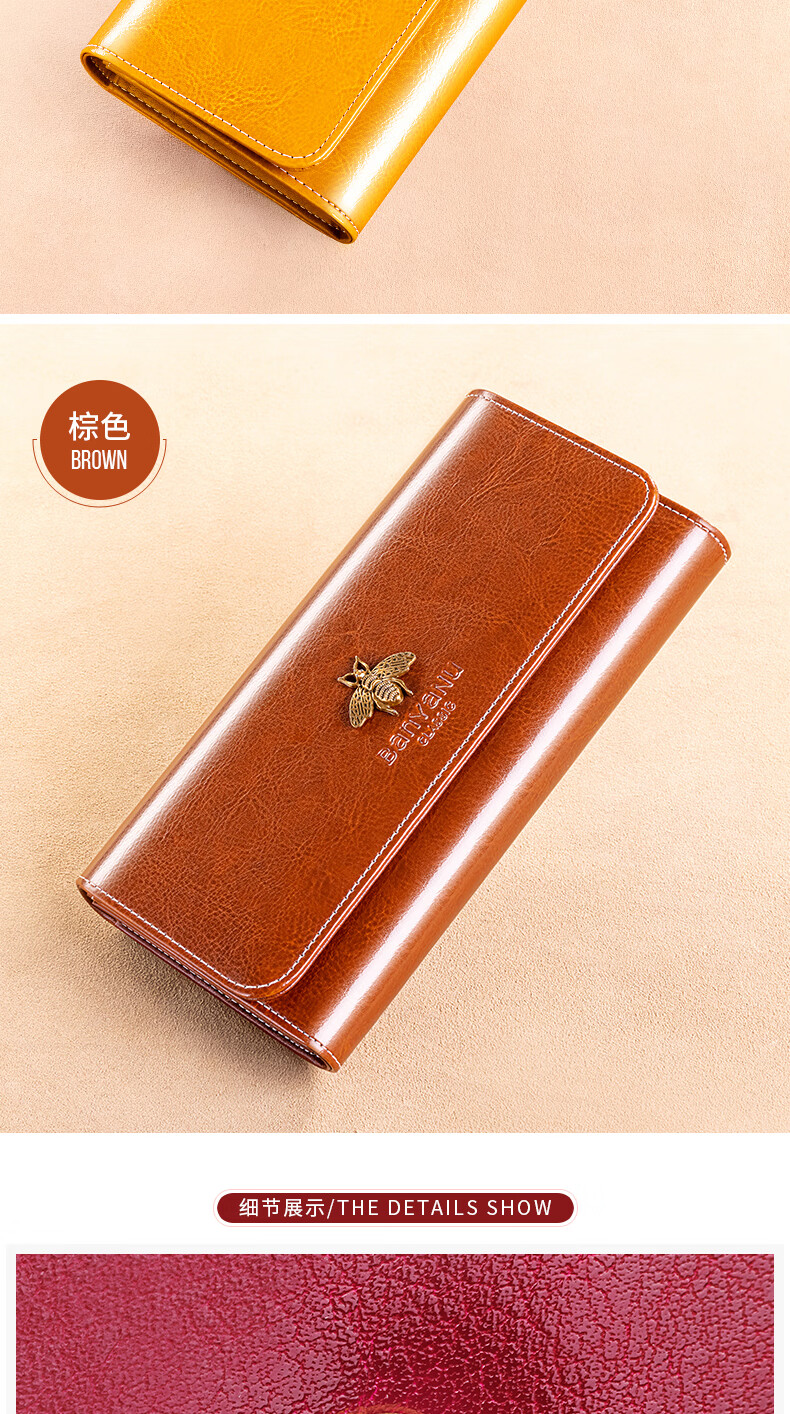 Banyanu wallet women's long genuine leather fashionable large capacity 2025 new style exquisite Korean style simple multi-functional wallet burgundy - anti-theft brush