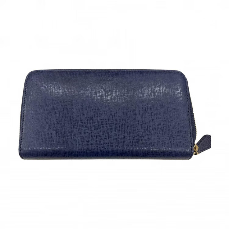 BALLY Classic Women's Leather Clutch Wallet Women's Navy Blue Basic Pack (Bag + Dust Bag)