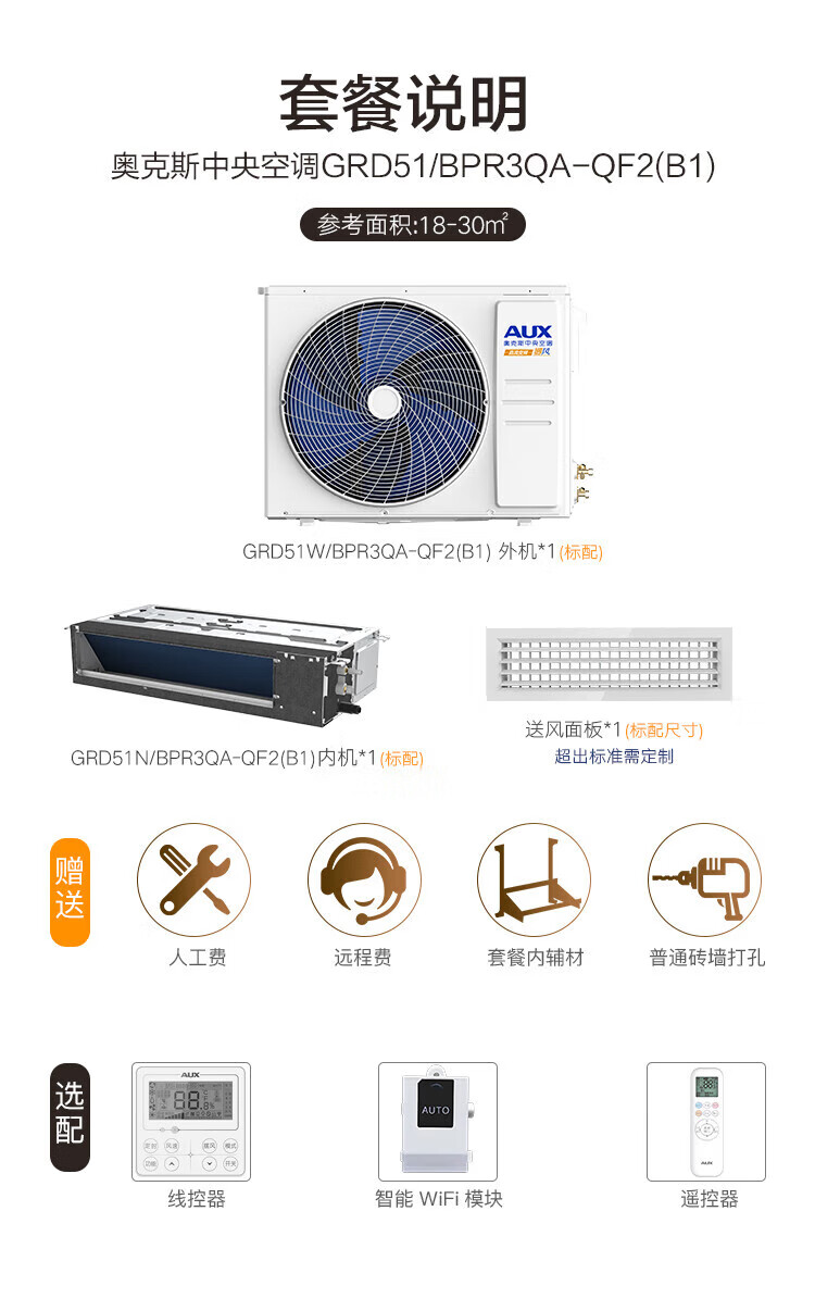 Oaks duct machine one-to-one 2-horsepower central air conditioner, level 1 energy efficiency, full DC frequency conversion, living room and bedroom, 2-horsepower, level 1 energy efficiency, energy saving, fast heating and cooling, self-cleaning
