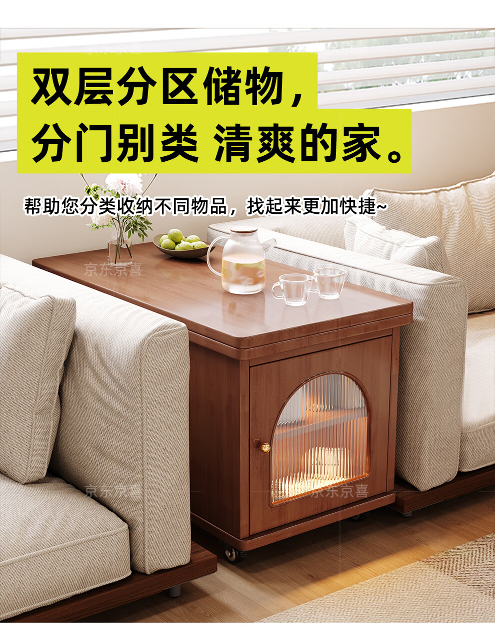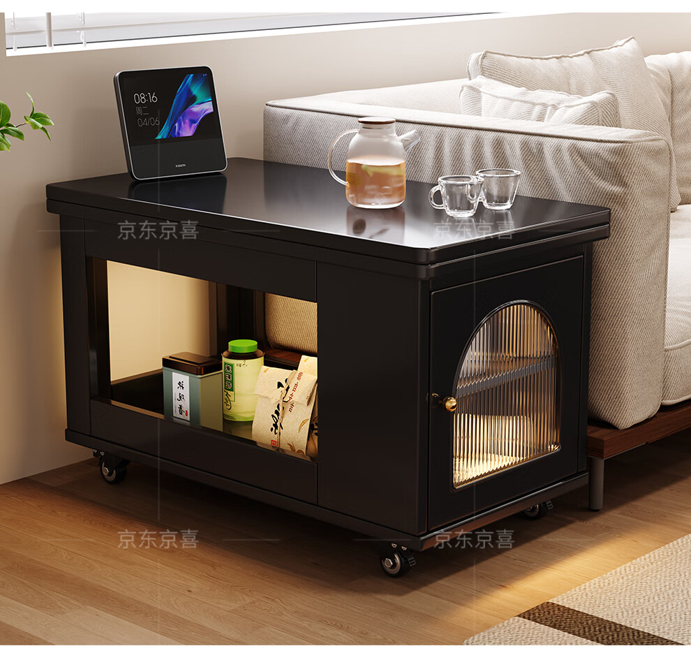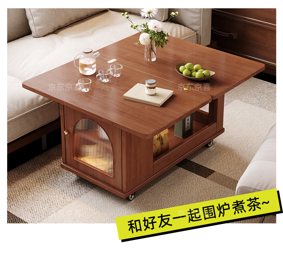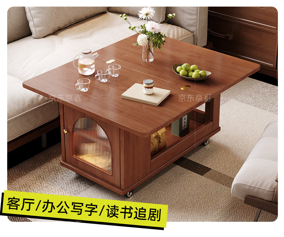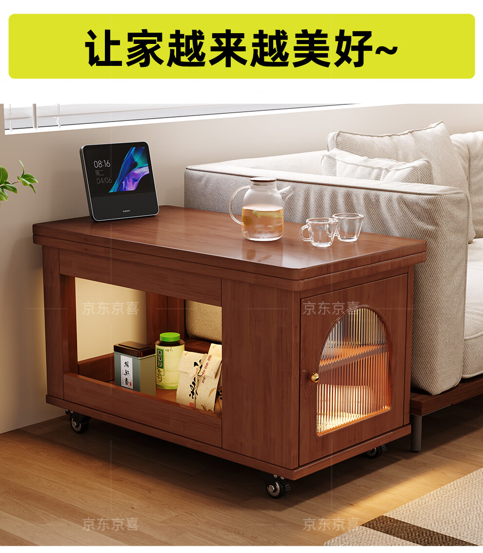 Mobile side table foldable small coffee table living room household small apartment sofa side cabinet solid wood multi-functional trolley walnut color all solid wood folding side table