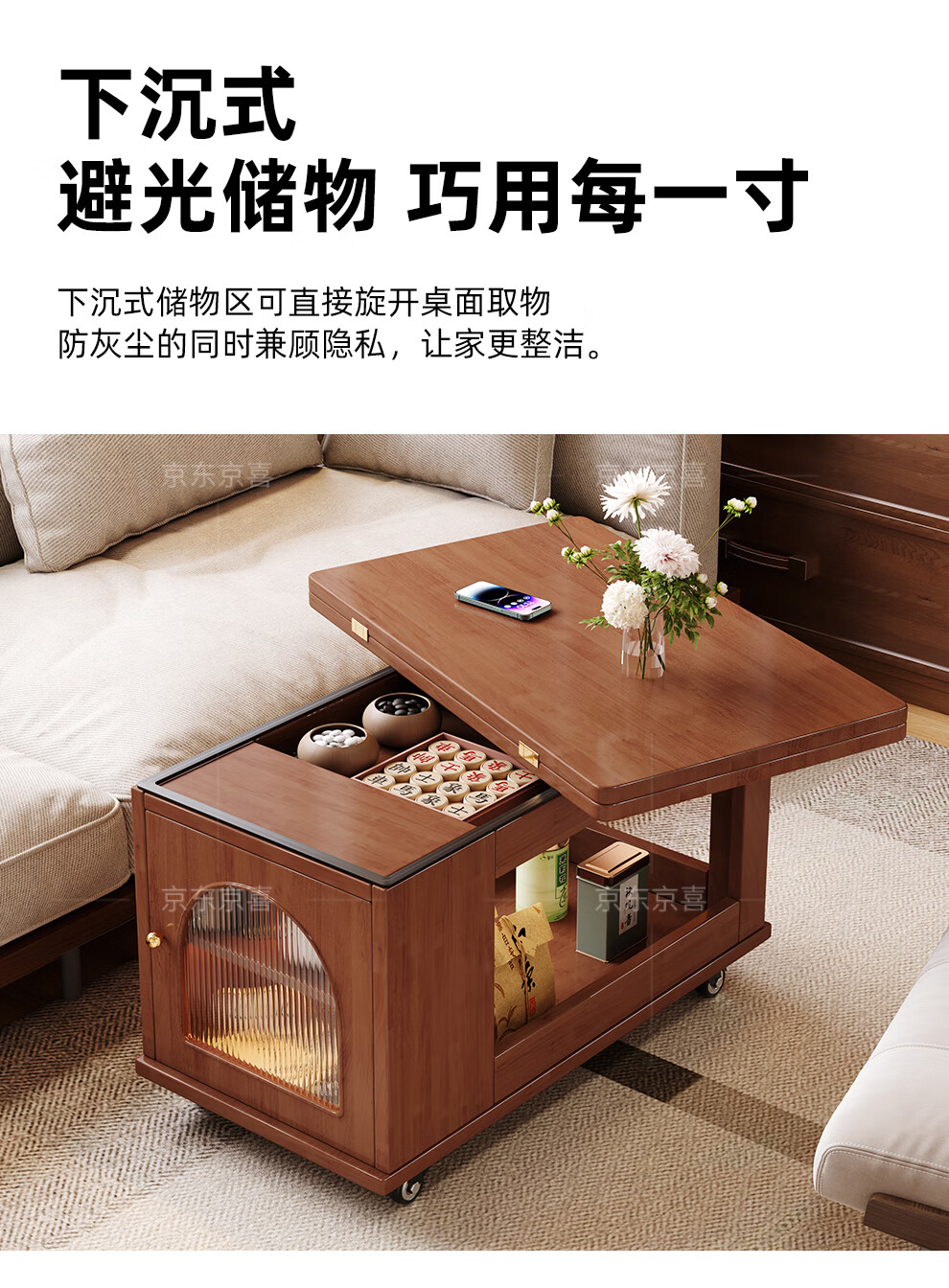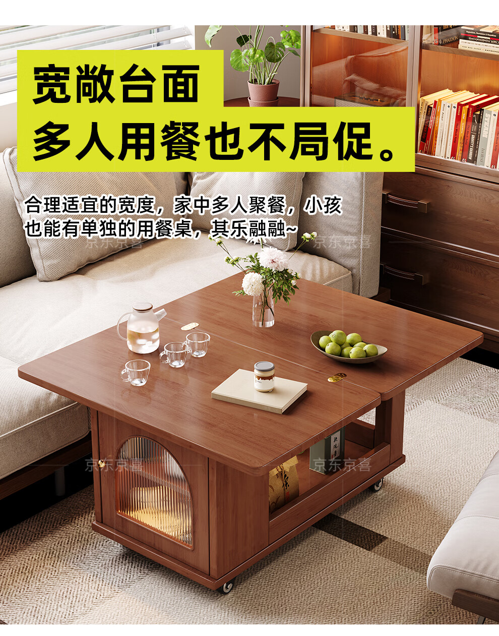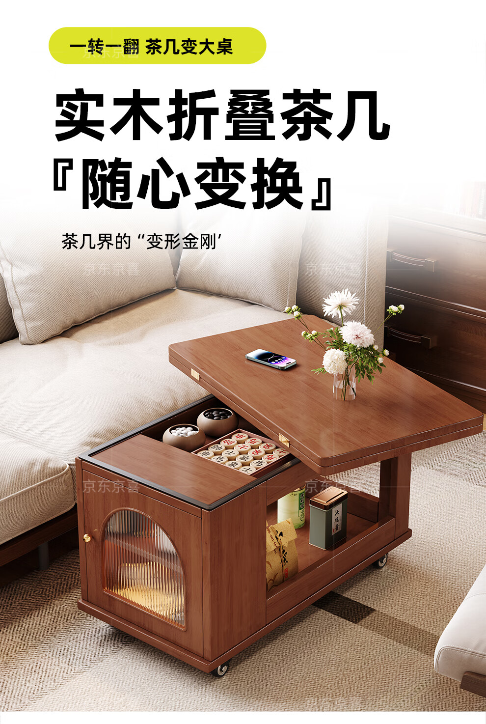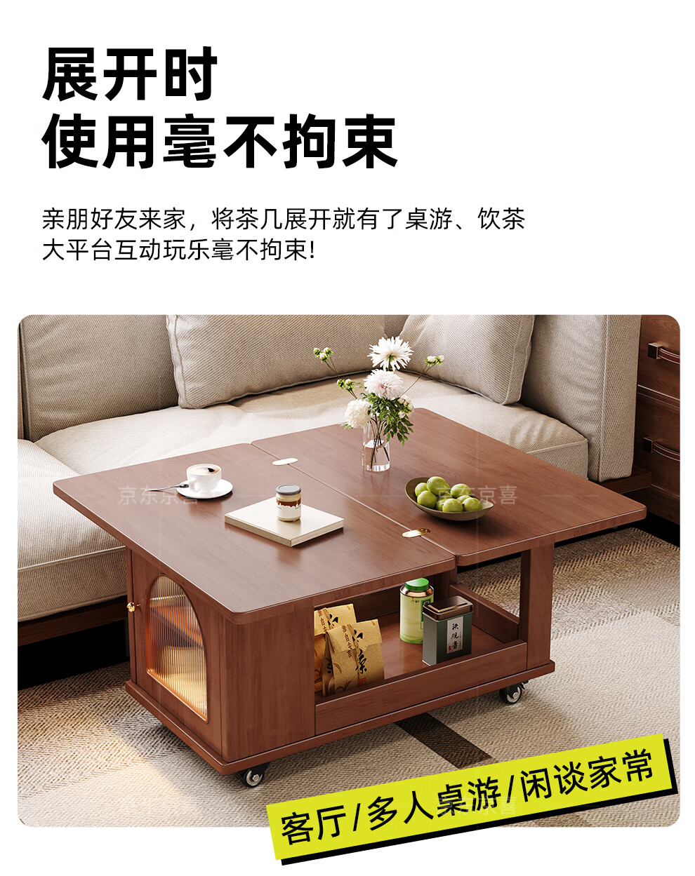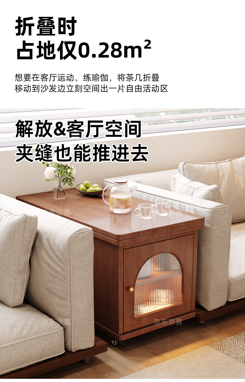Mobile side table foldable small coffee table living room household small apartment sofa side cabinet solid wood multi-functional trolley walnut color all solid wood folding side table