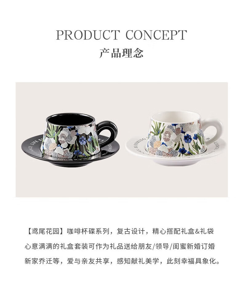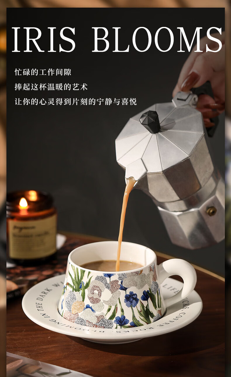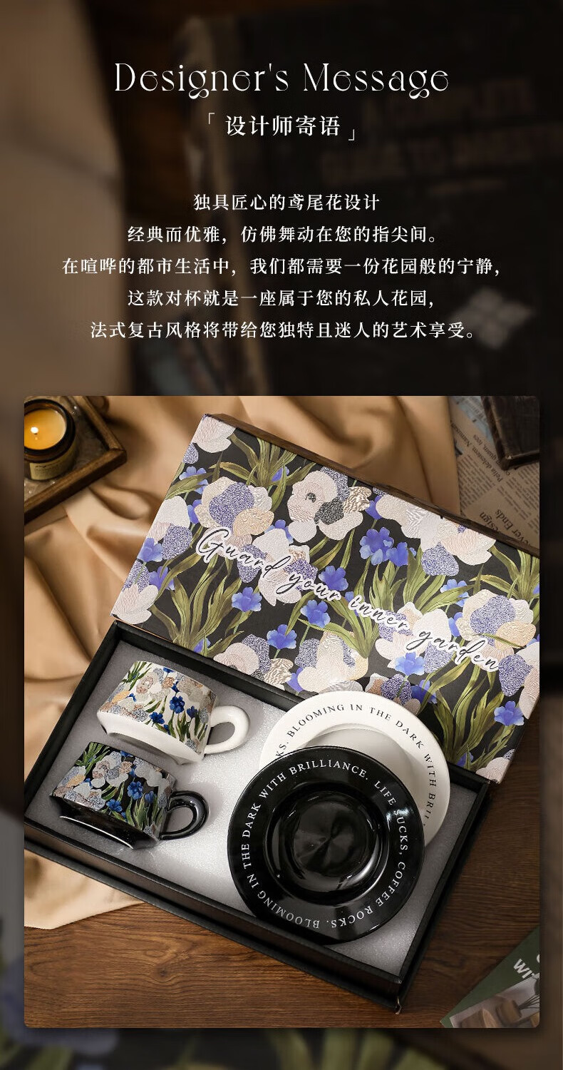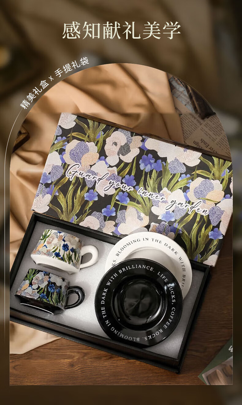 Jiali Senda coffee cup set gift box light luxury high-end moving to a new home wedding newlywed birthday gift couple men and women Iris cup and saucer gift box set (quick to next day delivery) 260ml