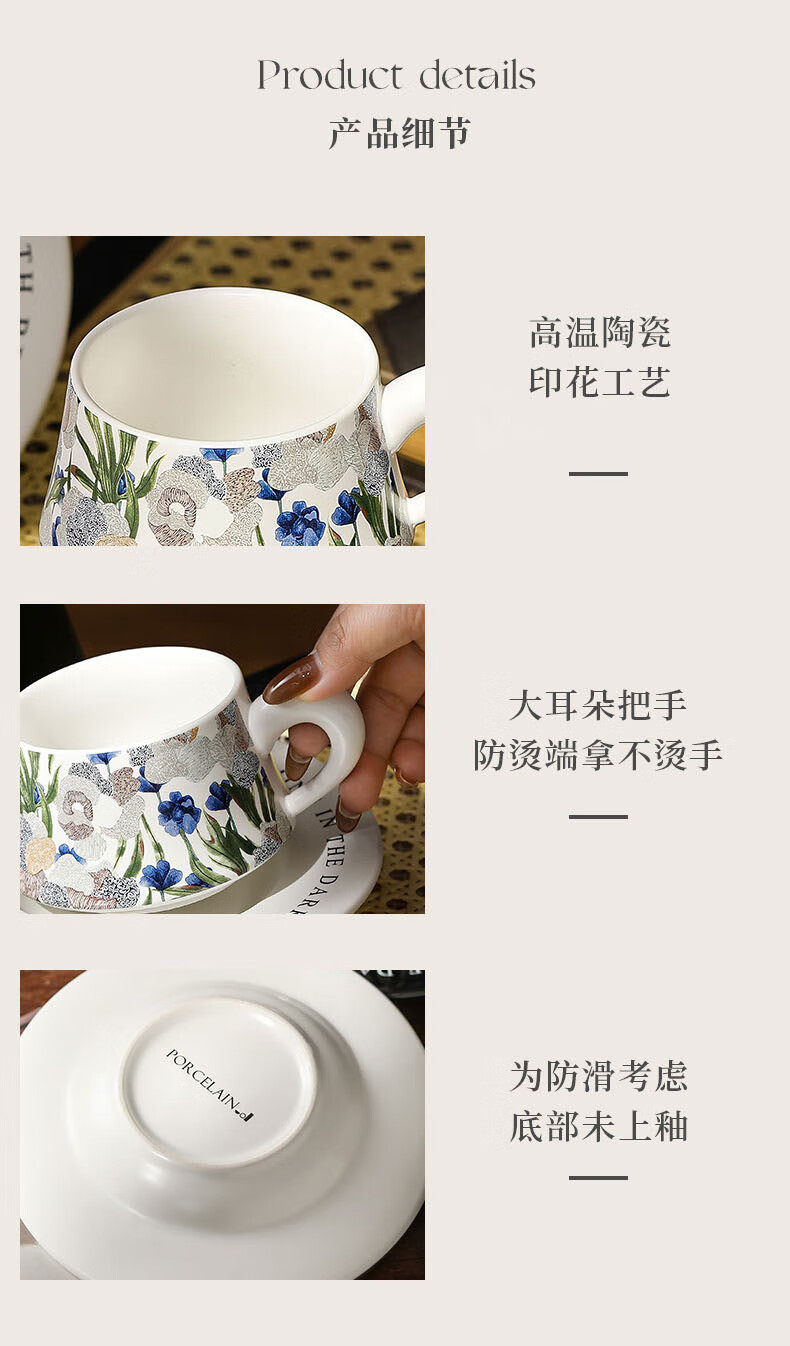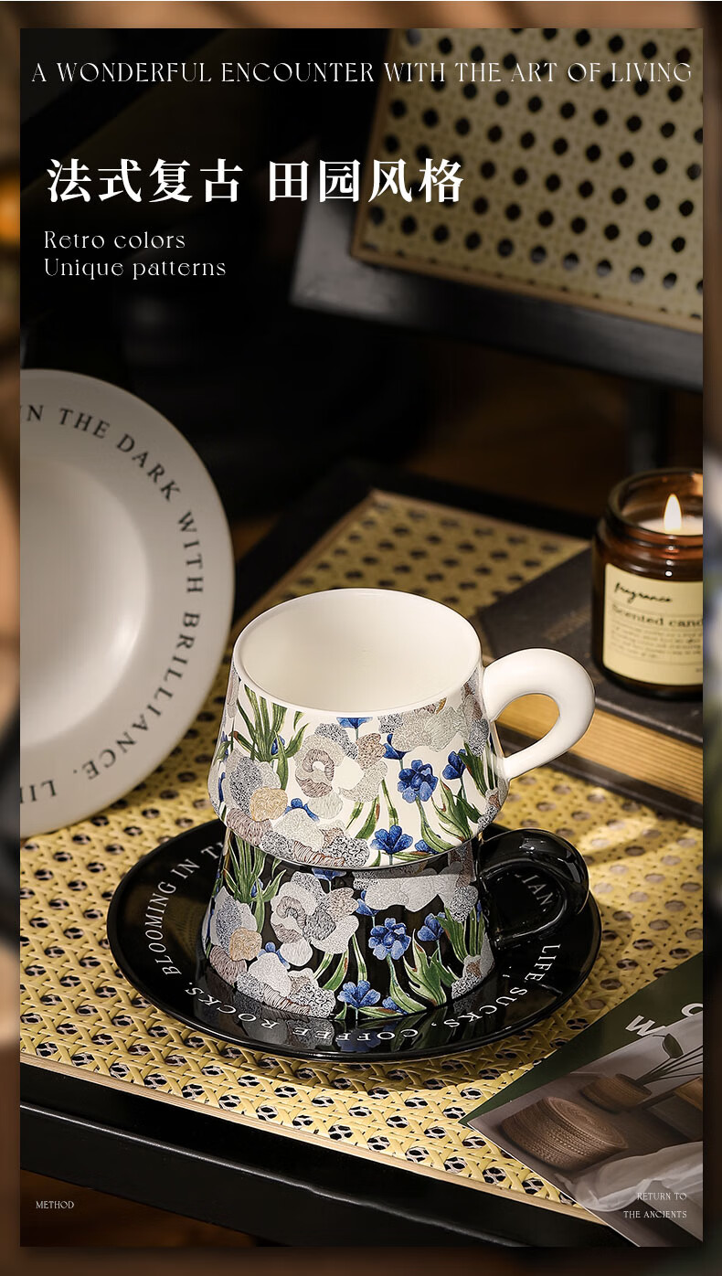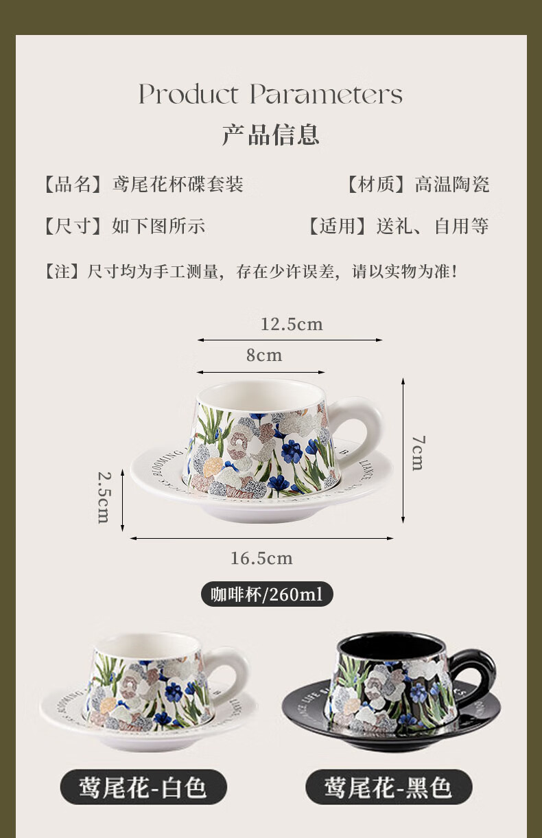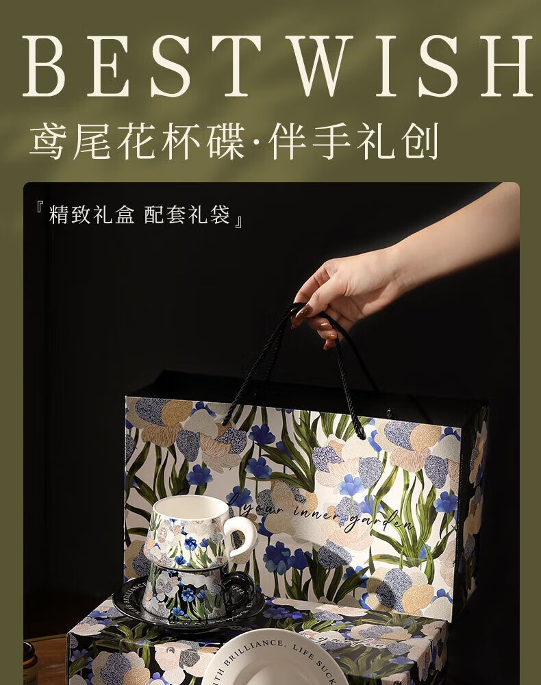 Jiali Senda coffee cup set gift box light luxury high-end moving to a new home wedding newlywed birthday gift couple men and women Iris cup and saucer gift box set (quick to next day delivery) 260ml