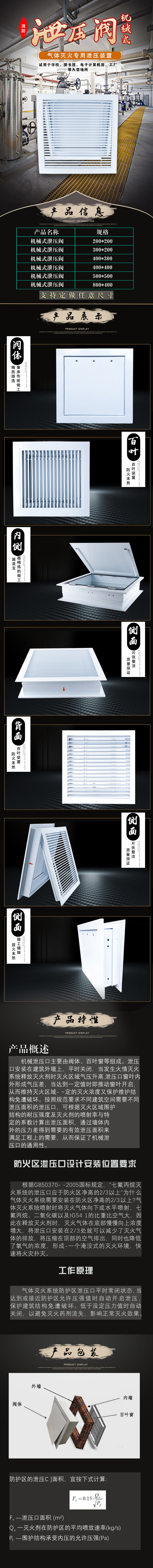Heptafluoropropane pressure relief valve gas fire extinguishing and smoke exhaust device 800*400 pressure relief area (0.25 square meters)