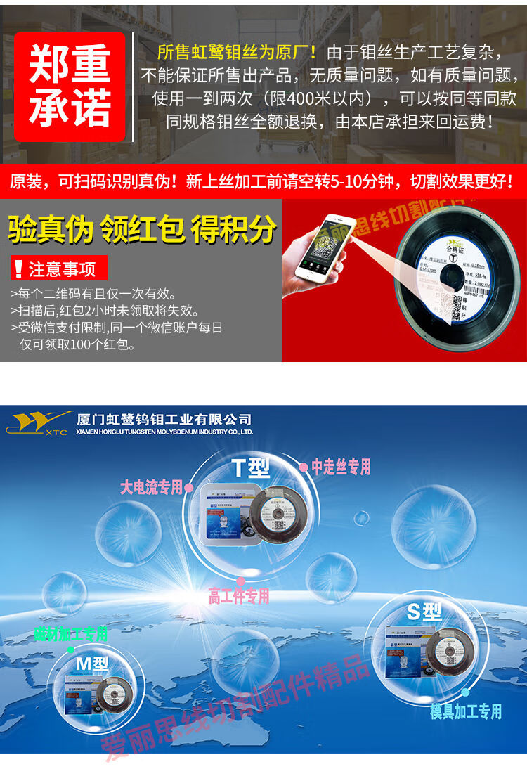 Honglu wire cutting special accessories Xiamen molybdenum wire S type 3000 meters barrel 300 meters roll 018mm T type original blue