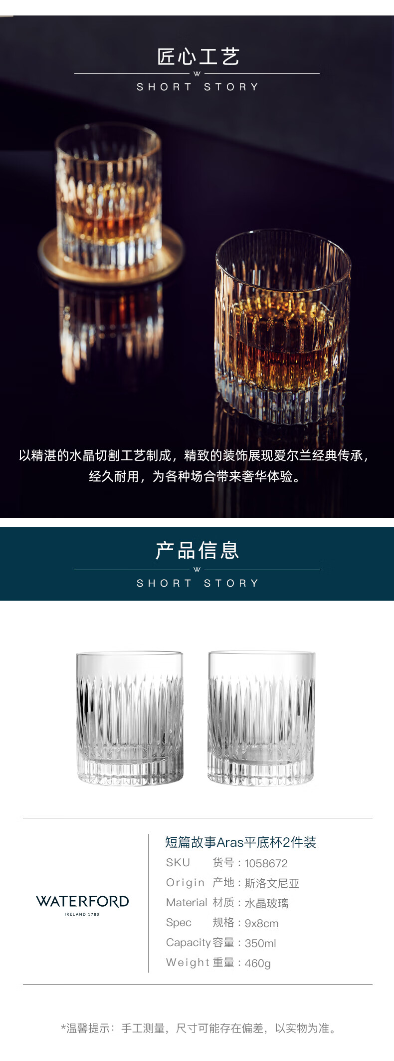 WATERFORD Short Story Aras Shot Glass 2-Pack Whiskey Glass Set SF Express Set SF Express