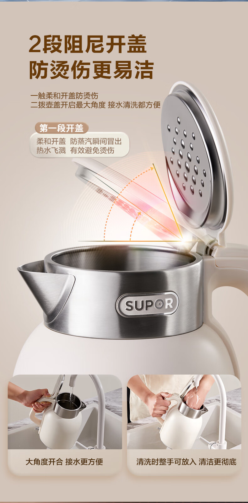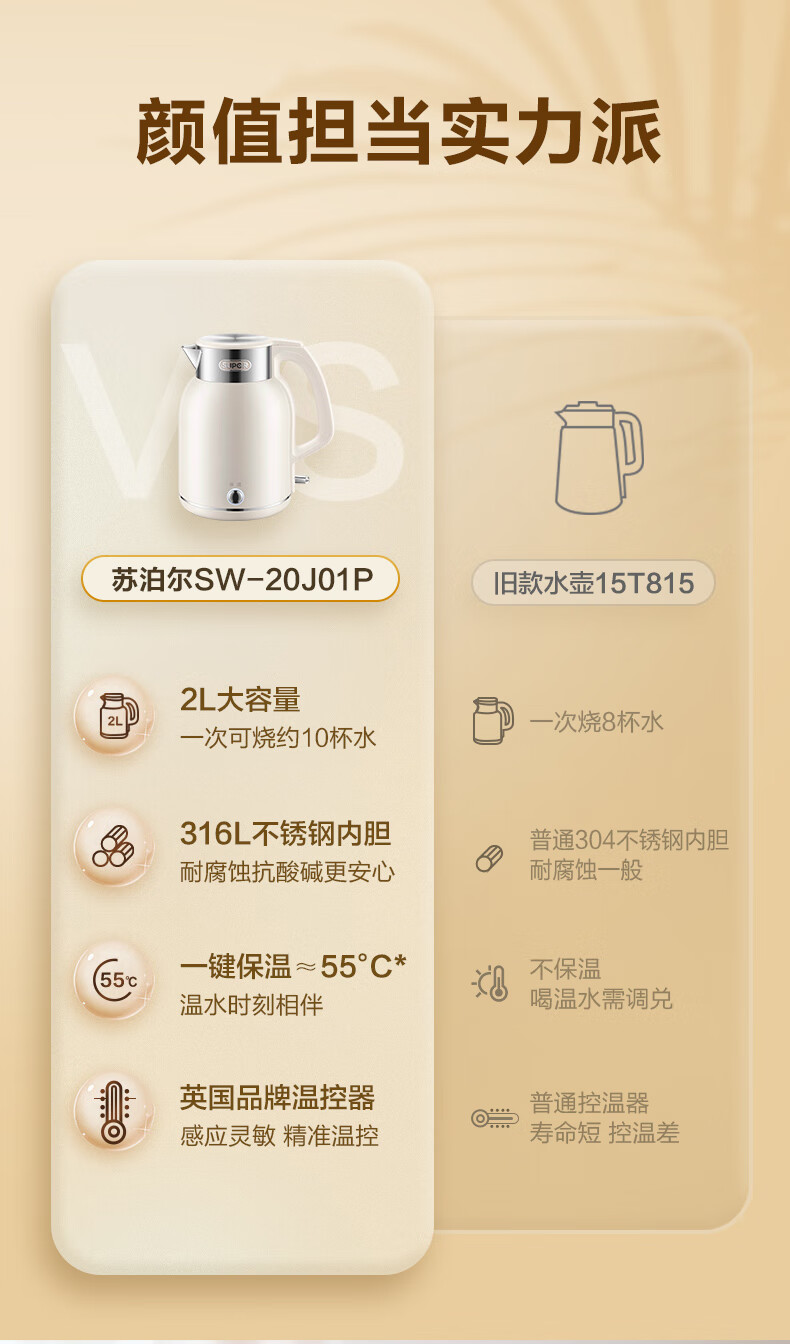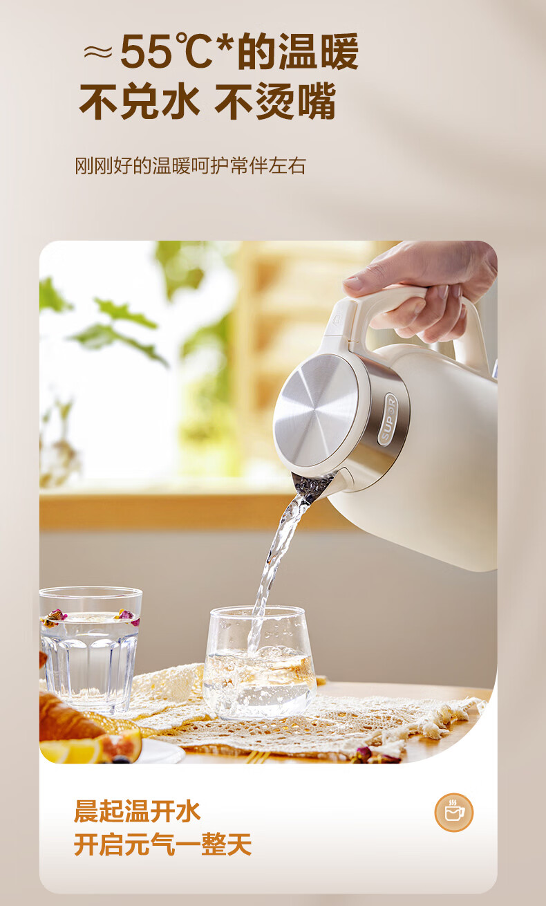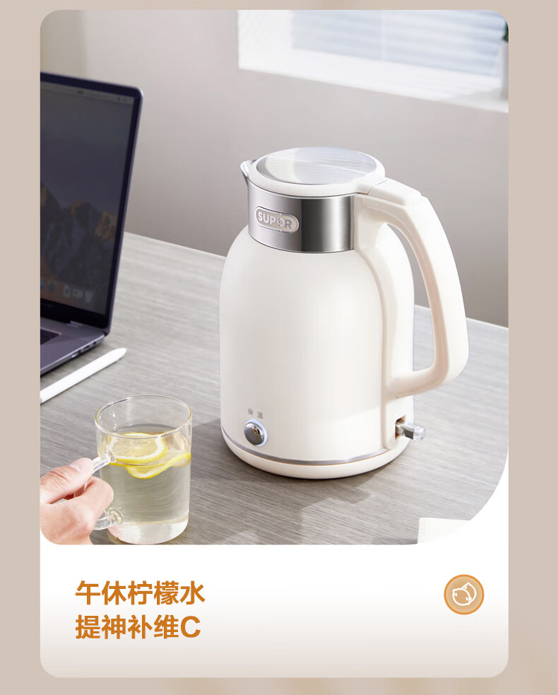 SUPOR constant temperature electric kettle household stainless steel large capacity integrated boiling kettle kettle heat preservation beige large capacity precise temperature control 2L