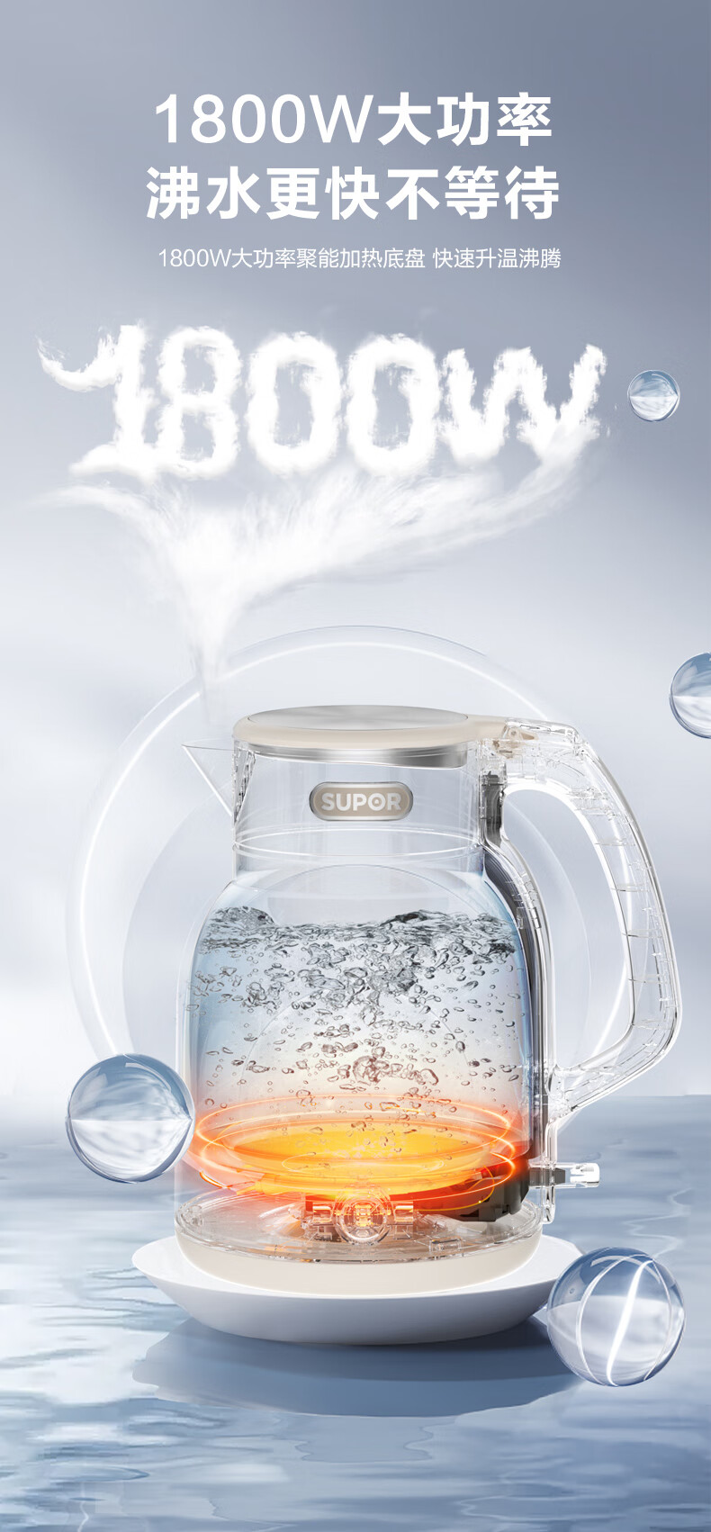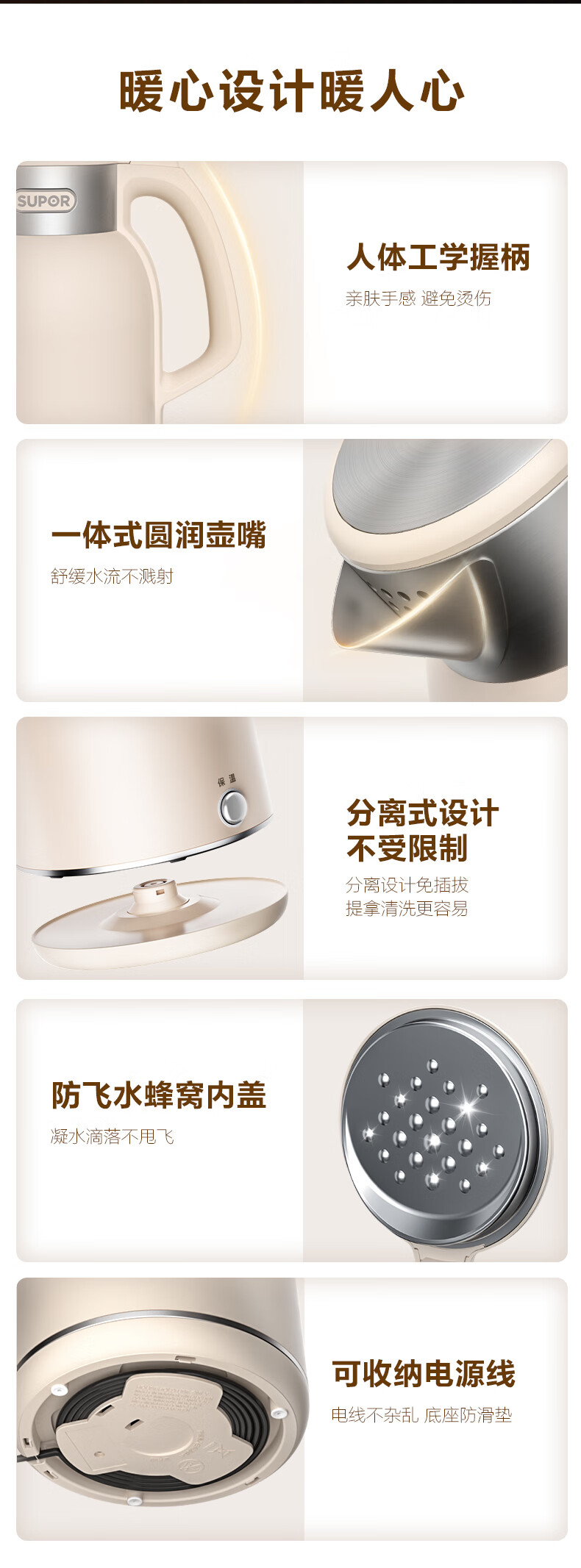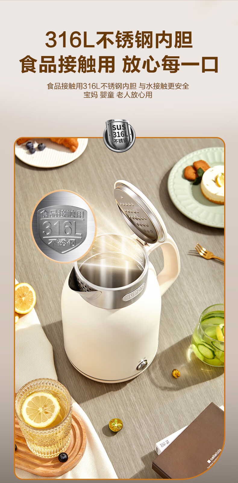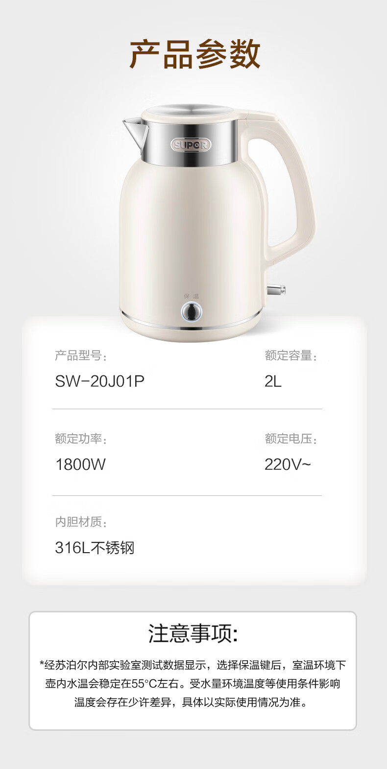 SUPOR constant temperature electric kettle household stainless steel large capacity integrated boiling kettle kettle heat preservation beige large capacity precise temperature control 2L