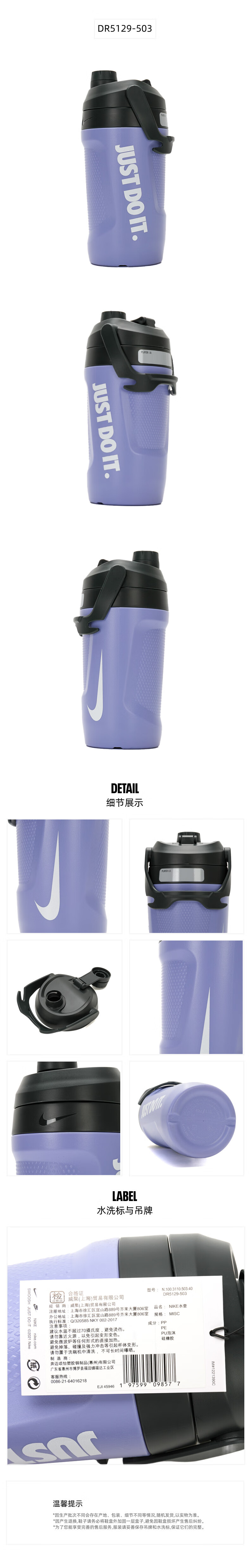 Nike (NIKE) water cup new sports water bottle fitness training large capacity ton bucket running water bottle convenient cycling water cup DR5129-380 40OZ