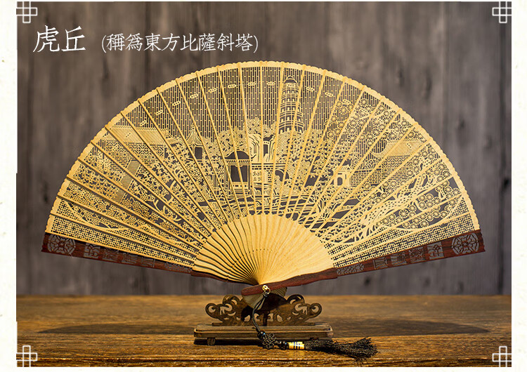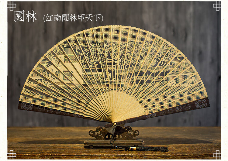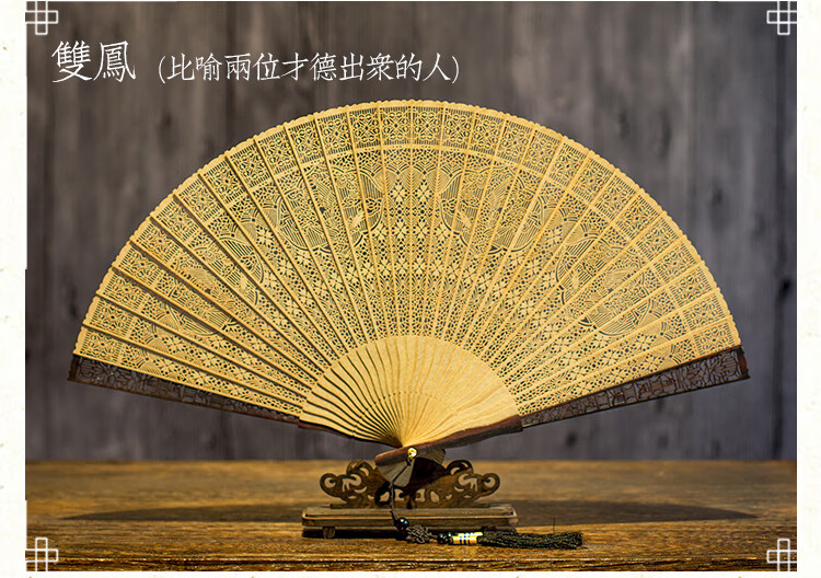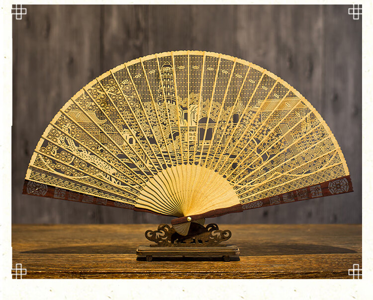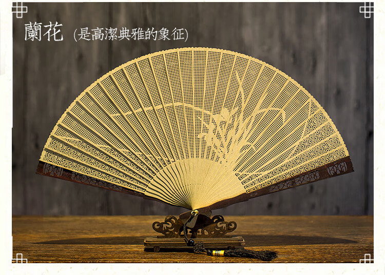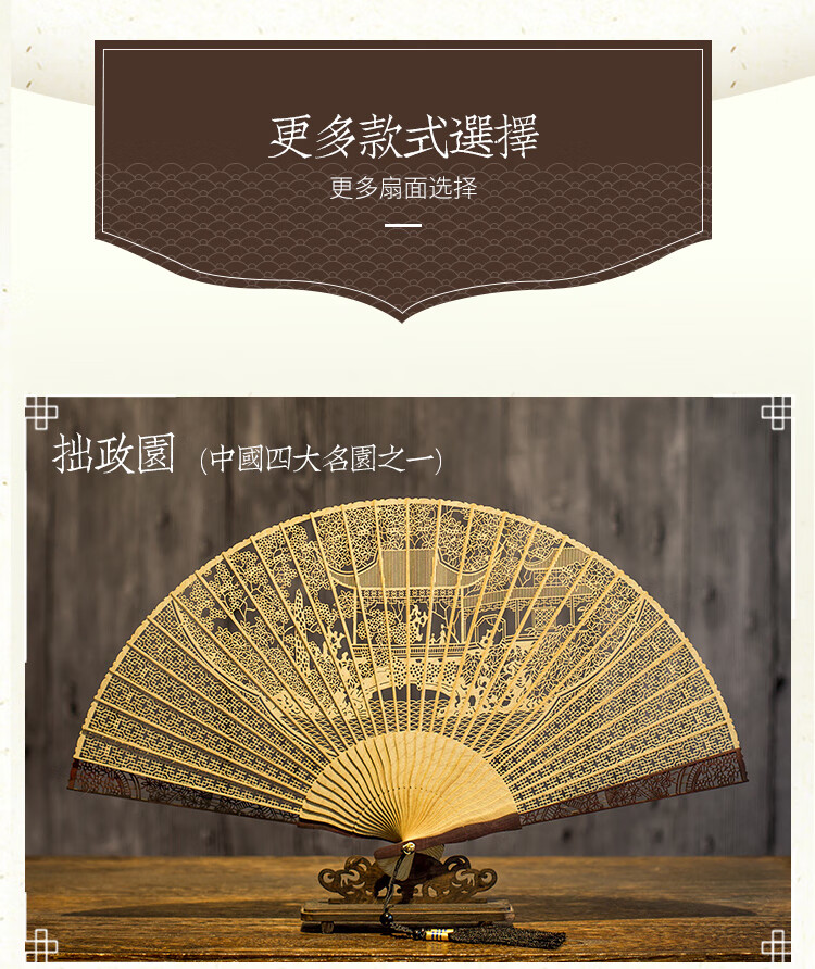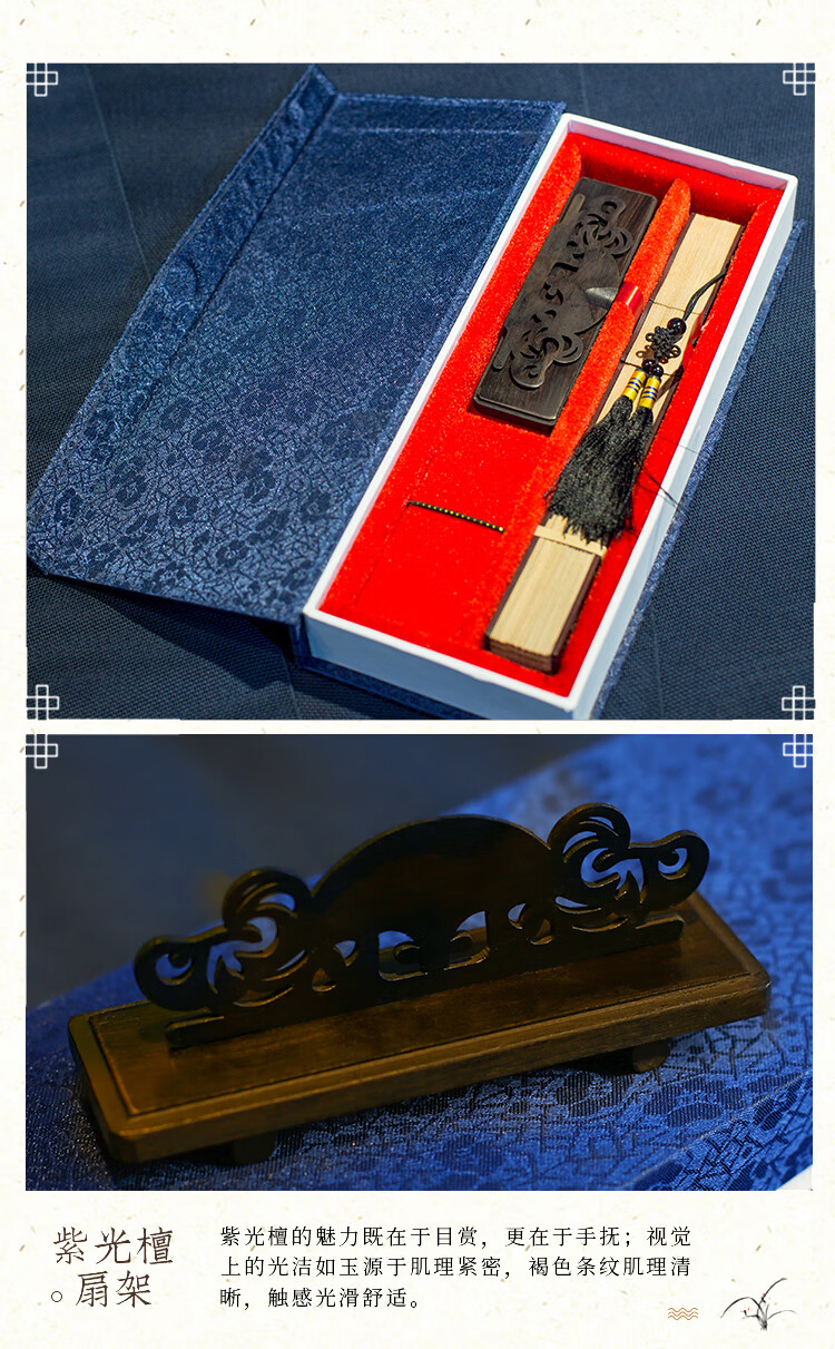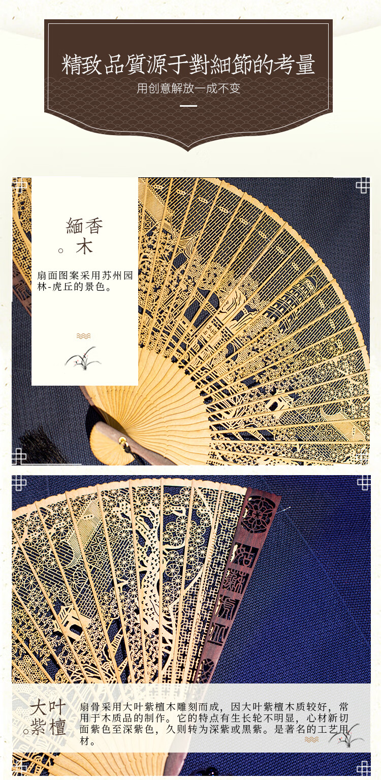 Intangible cultural heritage gift fan Suzhou specialty sandalwood fan Chinese style sandalwood fan folding fan craft fan craft fan gift box 7-inch red sandalwood Burmese incense - Bamboo Crane Picture