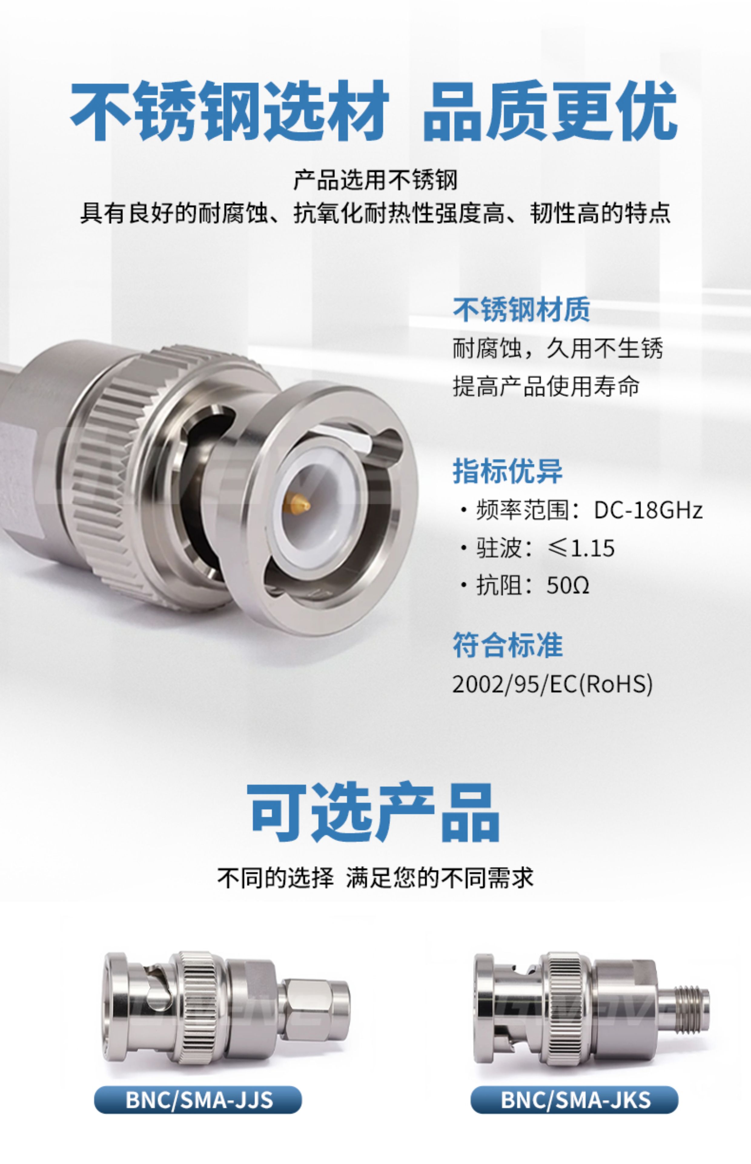 Gubo Interconnect BNC to SMA Connector Stainless Steel High Frequency Adapter DC-18GHz BNC/SMA-JJS JKS BNC/SMA-JKS-18G Male to Female