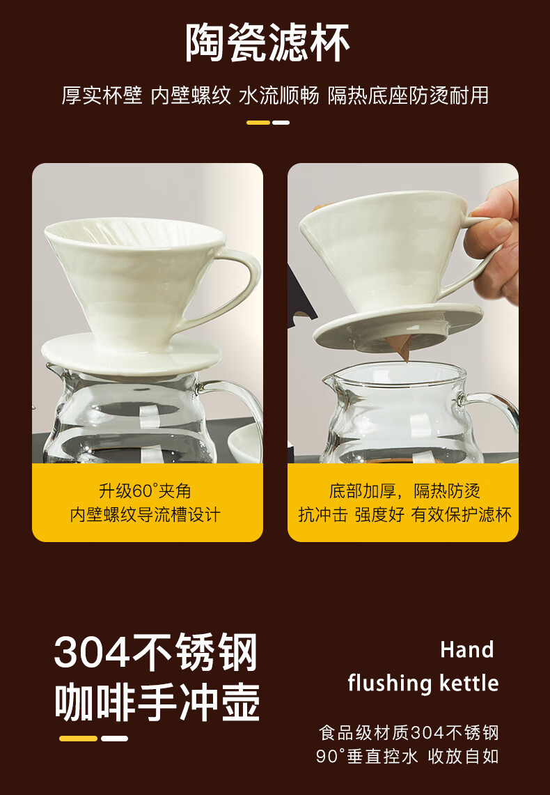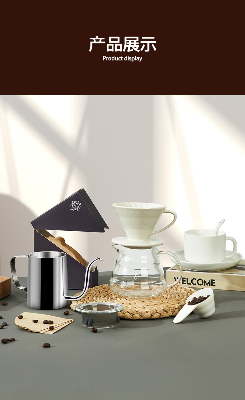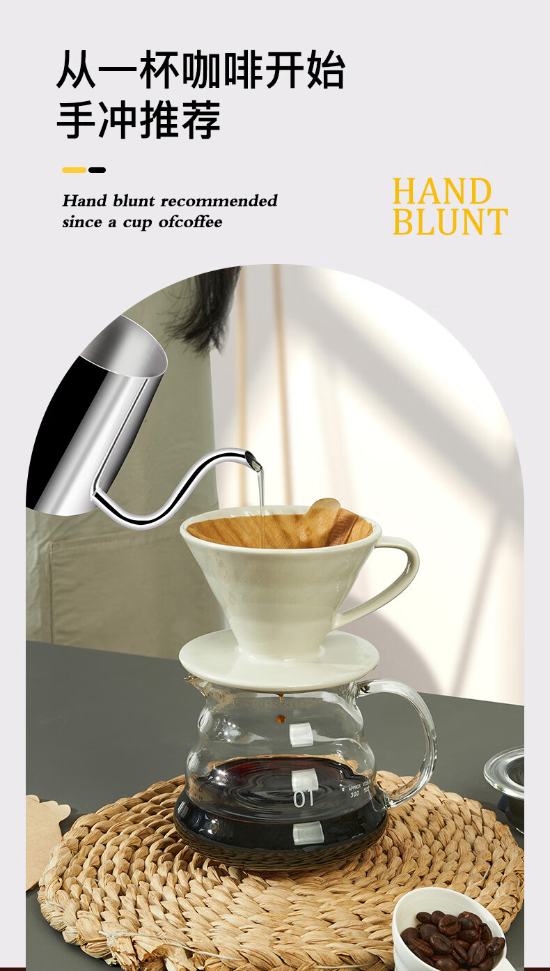Coffee filter cup, hand-brewed coffee filter, ceramic household drip filter V-shaped coffee pot set, hand-brewed coffee pot set, hand-brewed coffee 4-piece set (recommended)
