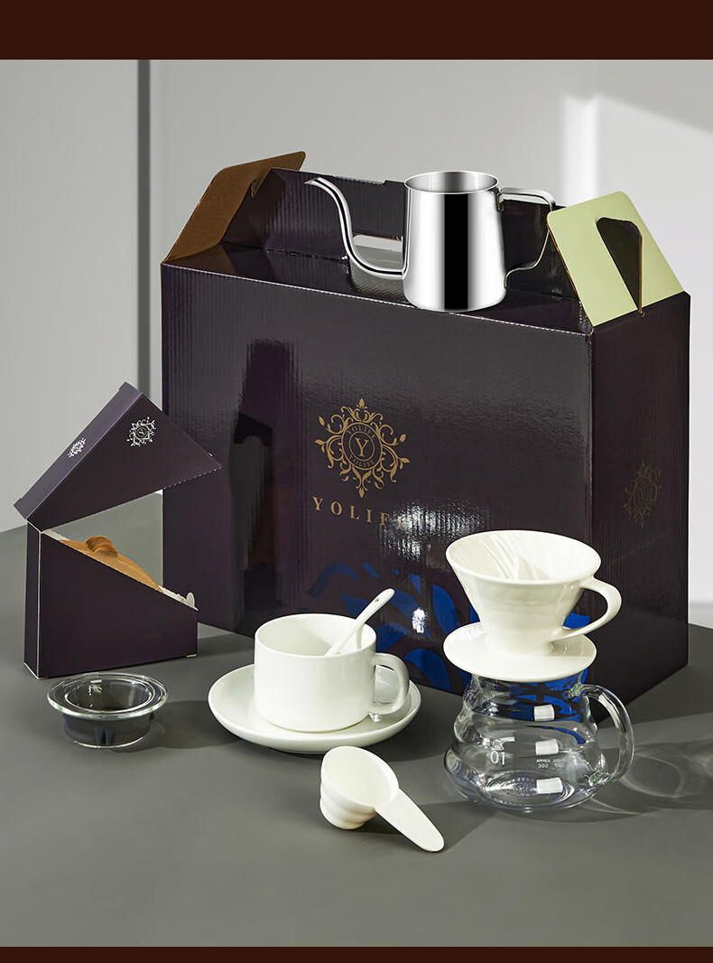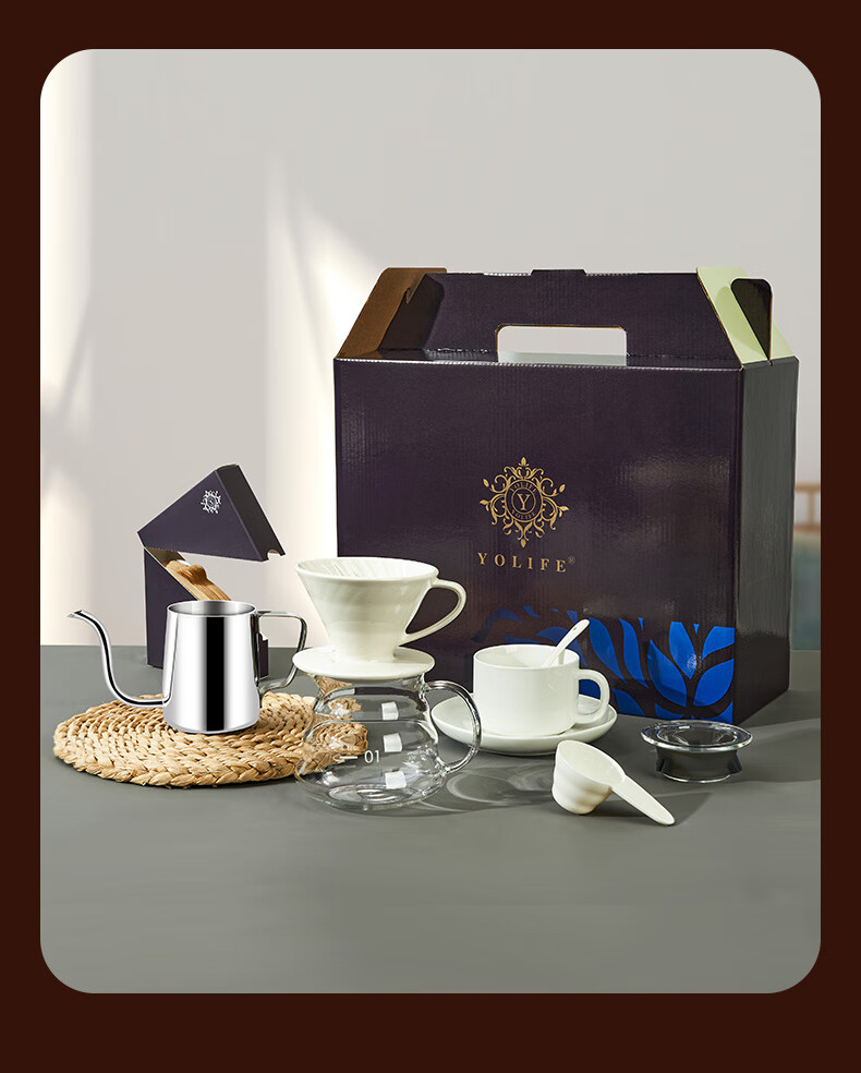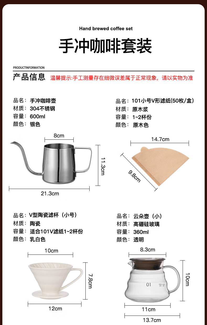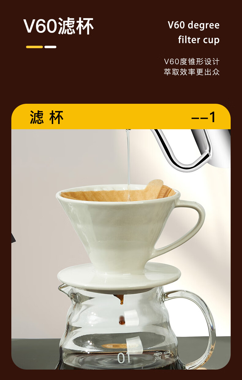 Coffee filter cup, hand-brewed coffee filter, ceramic household drip filter V-shaped coffee pot set, hand-brewed coffee pot set, hand-brewed coffee 4-piece set (recommended)