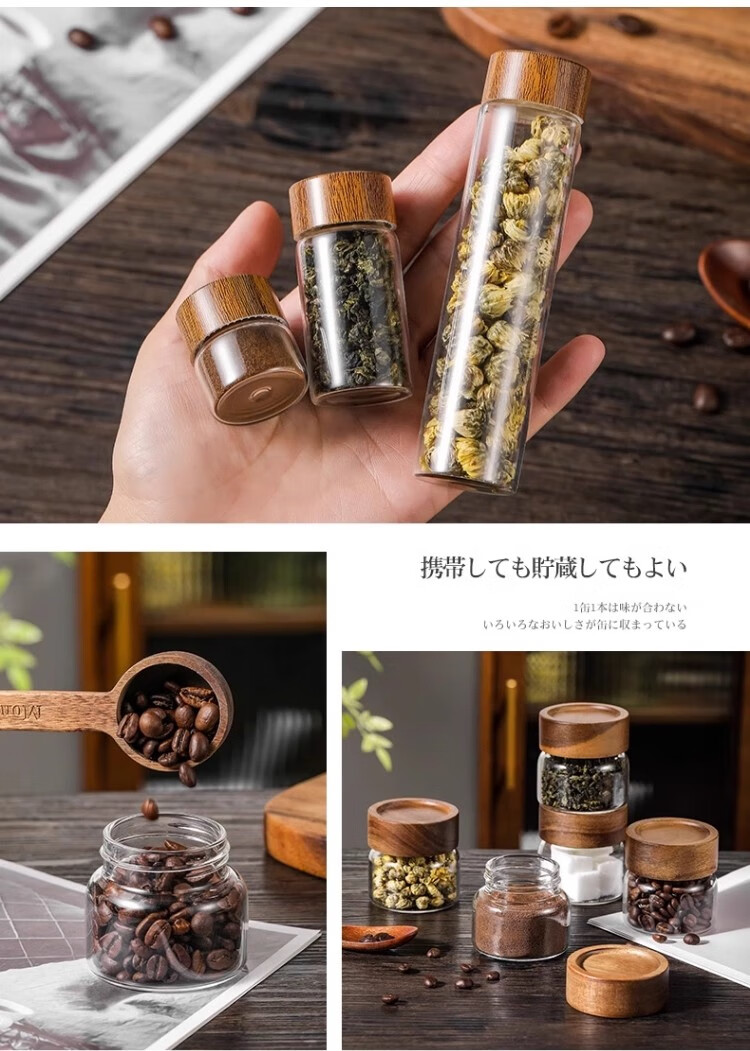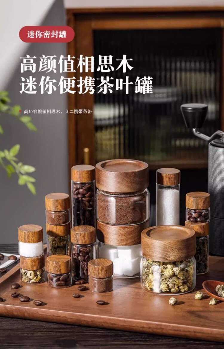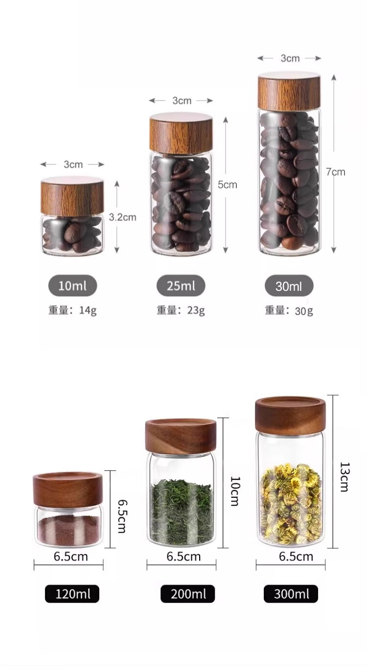 Mini tea jar glass sealed jar portable storage jar food grade coffee powder bean repackaging jar storage moisture-proof coffee bean sealed jar 20ML