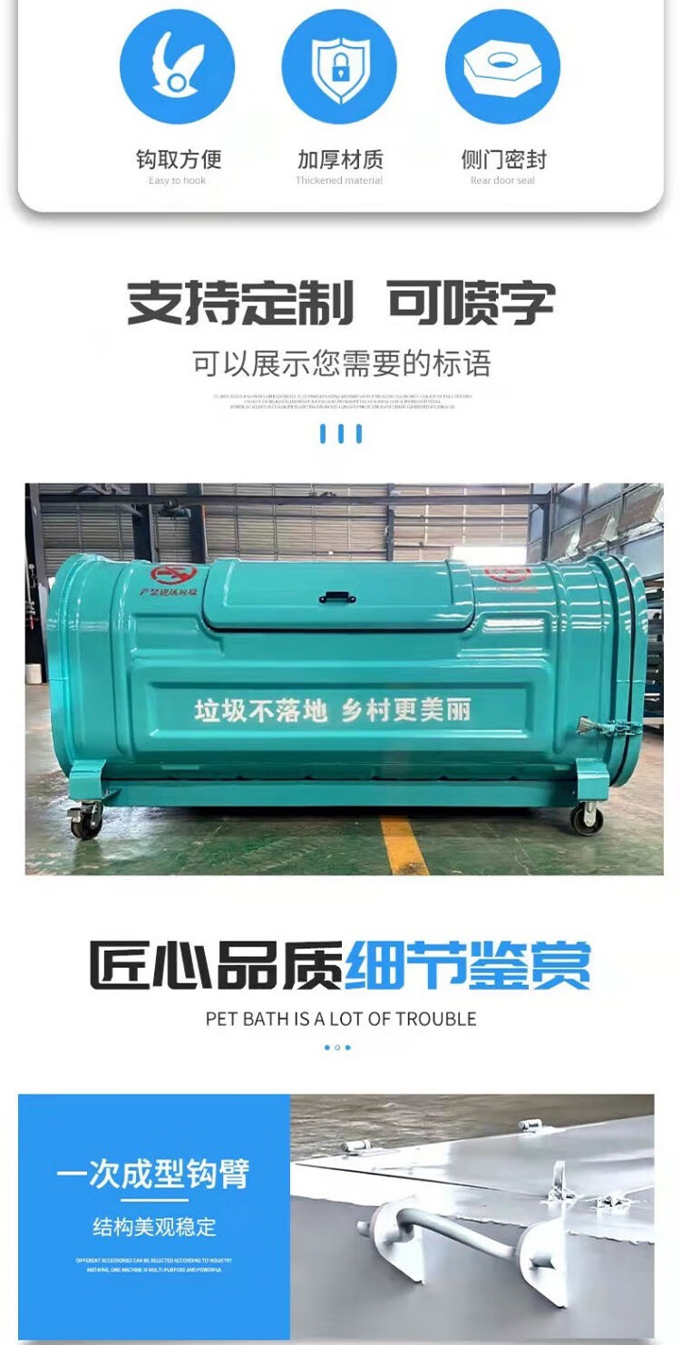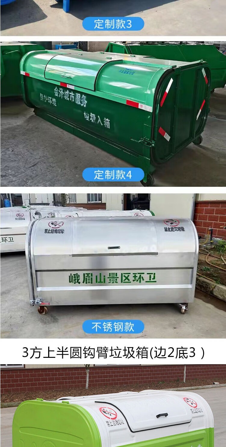 Hook-arm garbage bin large outdoor removable 34 square meter vehicle-mounted sanitation industrial community rural iron transfer box green-3 square hook arm garbage bin deposit-molded model
