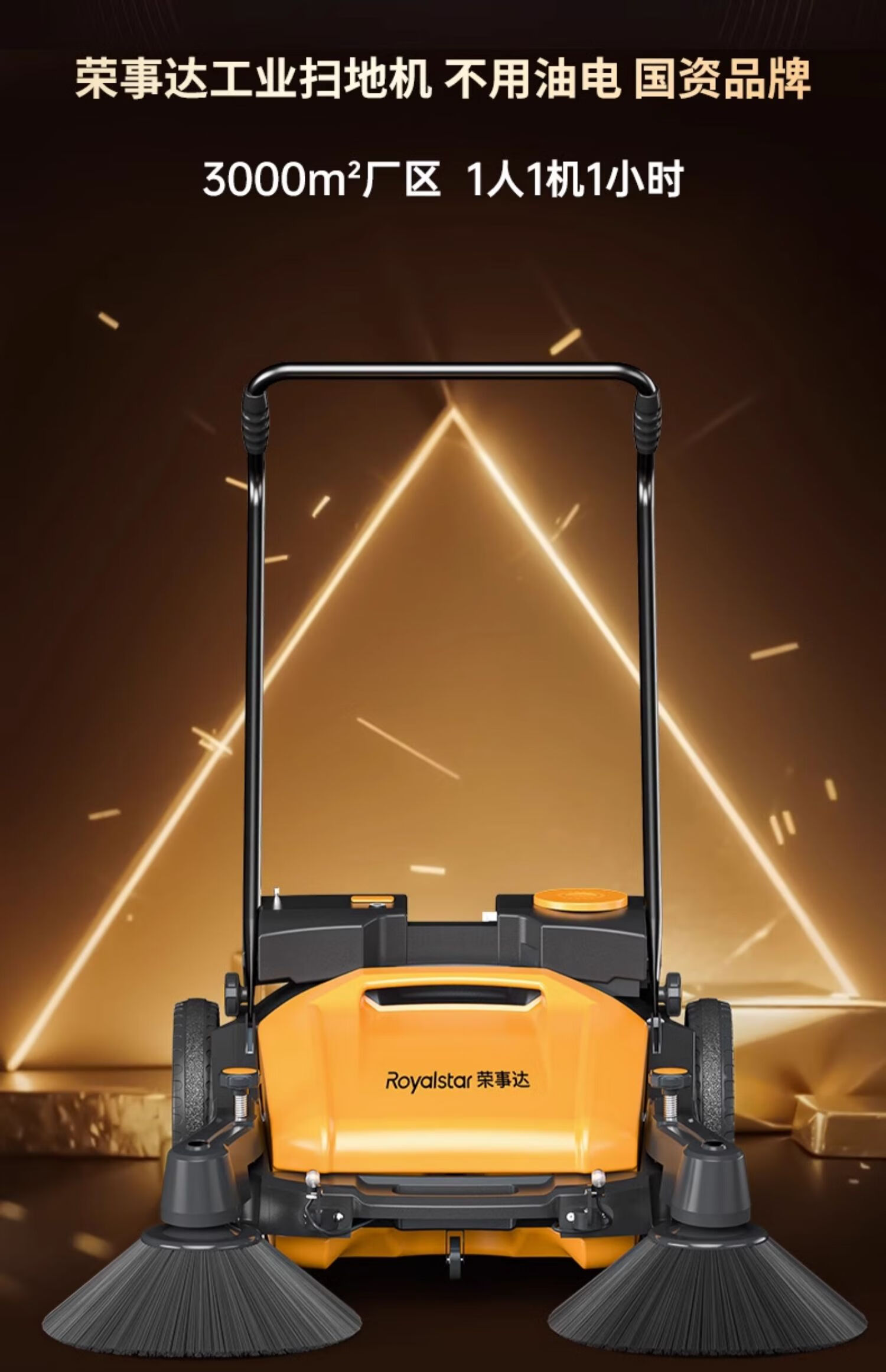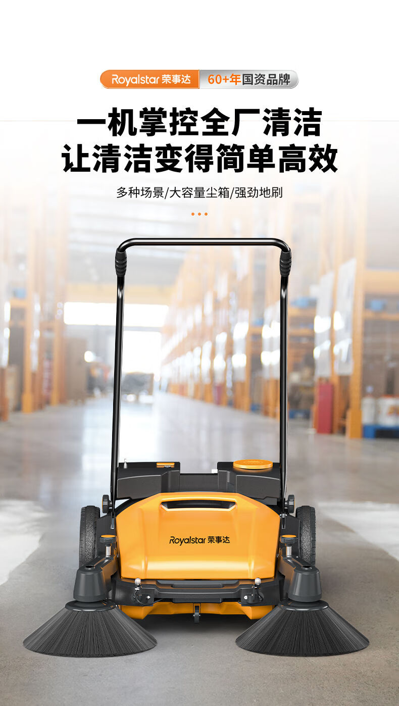 Industrial hand push sweeper, factory workshop, farm road warehouse dust cleaning sweeper, 55L engineering plastic model - cleaning efficiency 3860M/H