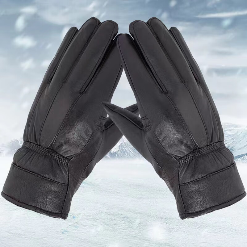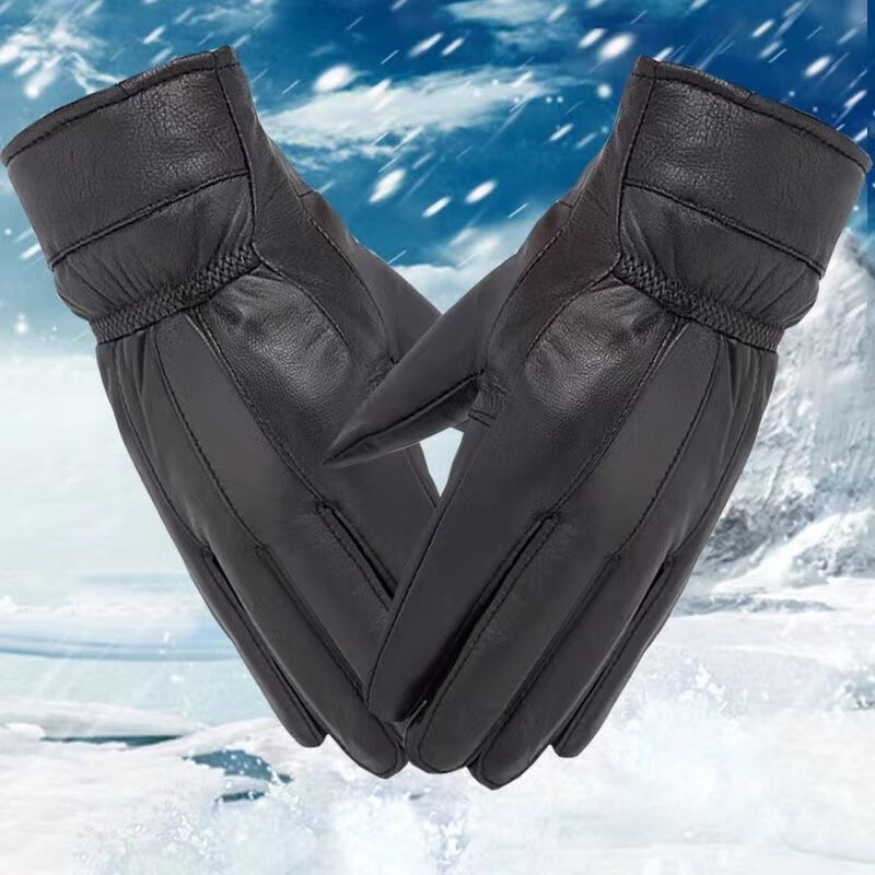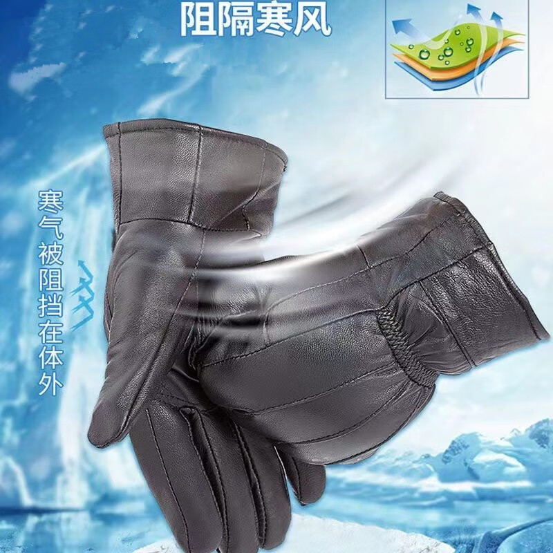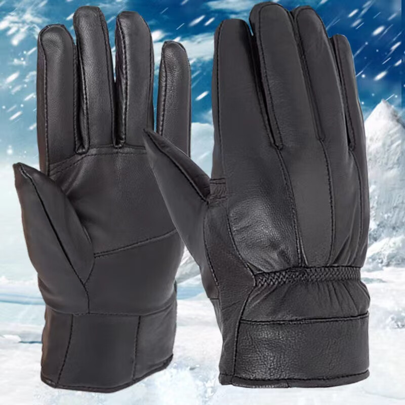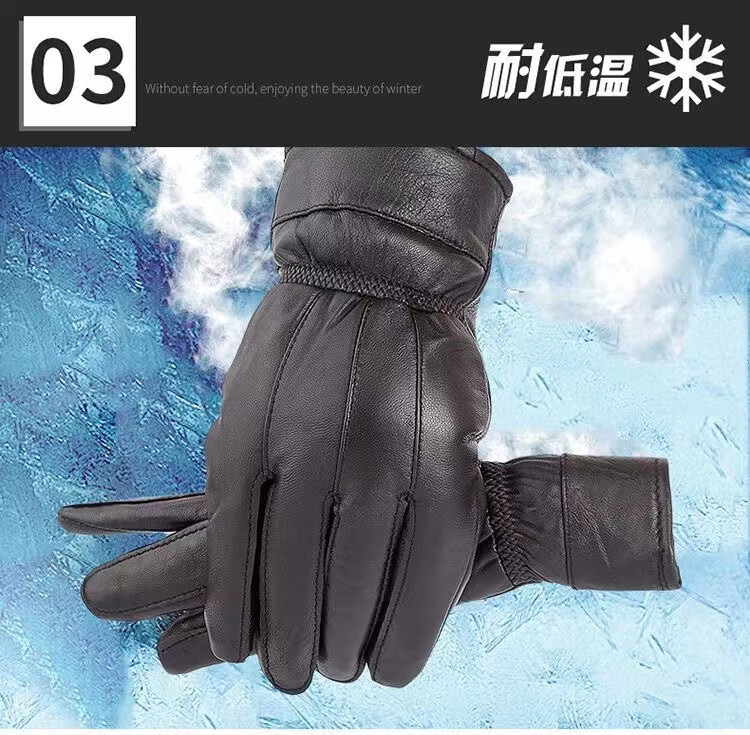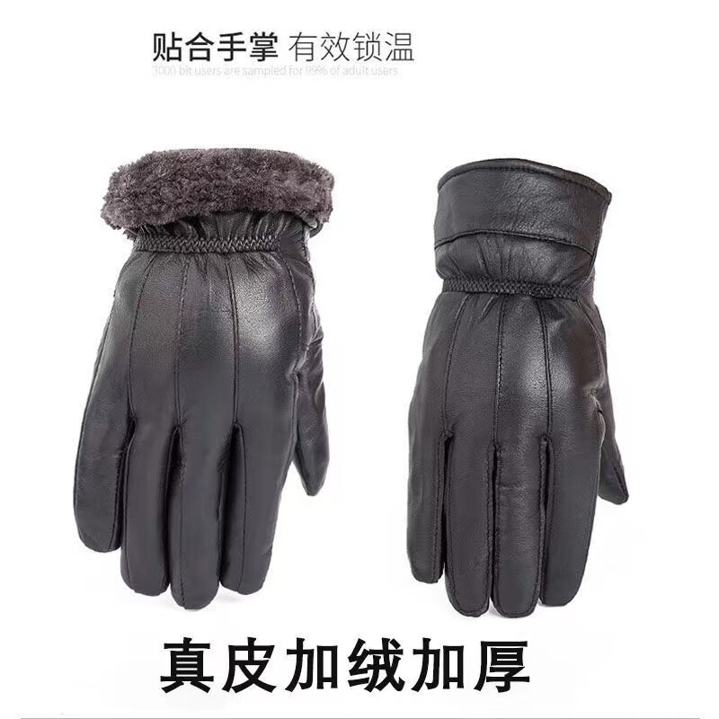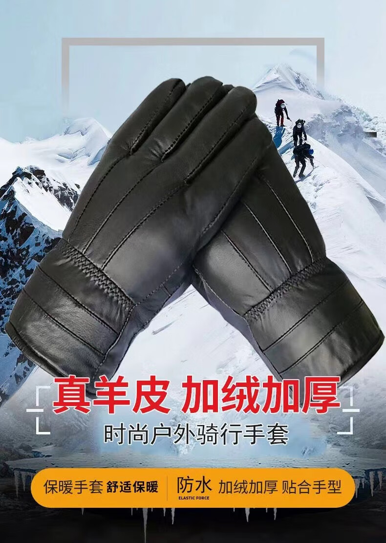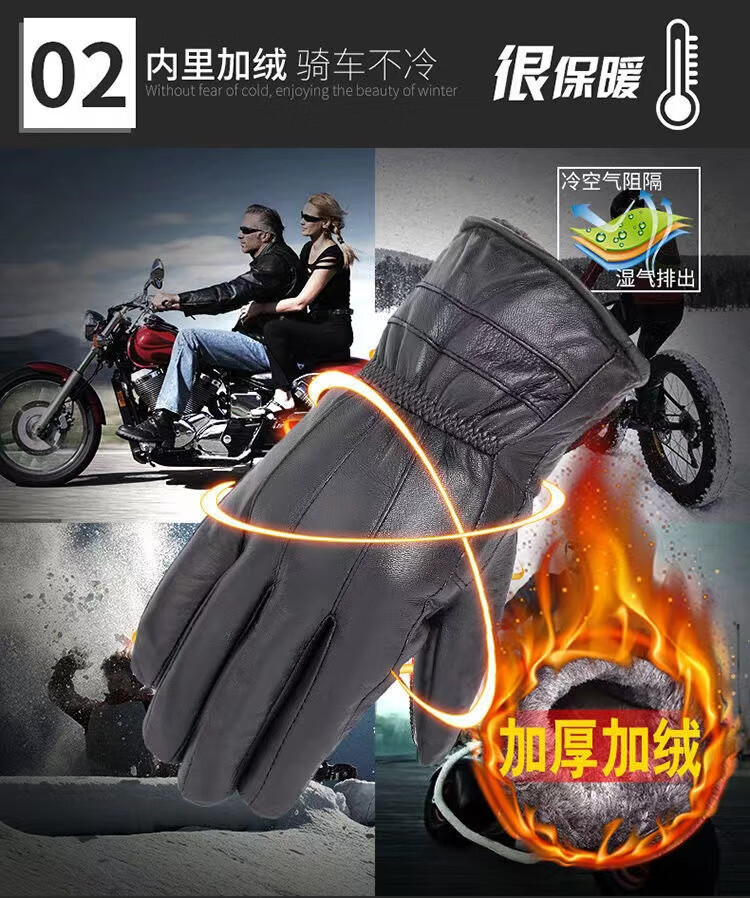 Pure sheepskin genuine leather men's gloves winter motorcycle windproof and water repellent warm plus velvet thickened riding gloves genuine leather thickened gloves