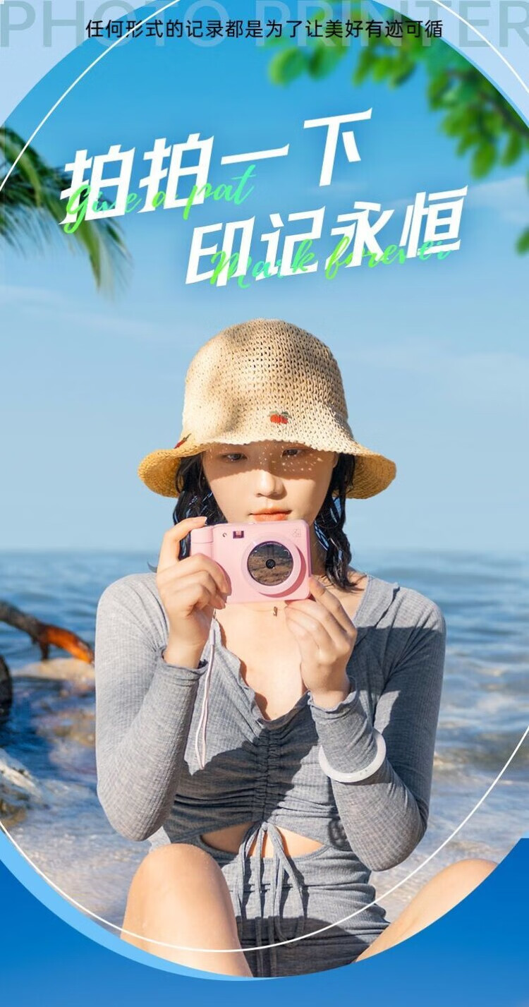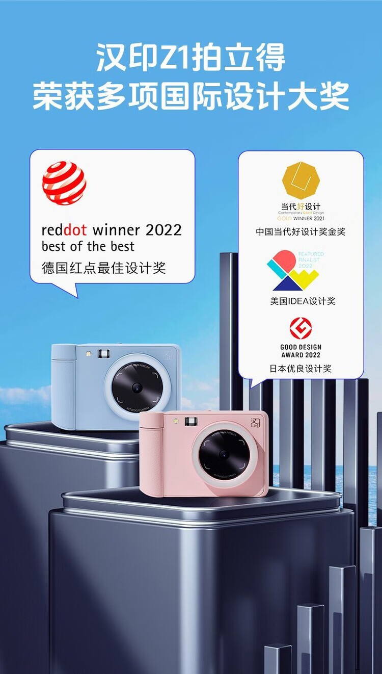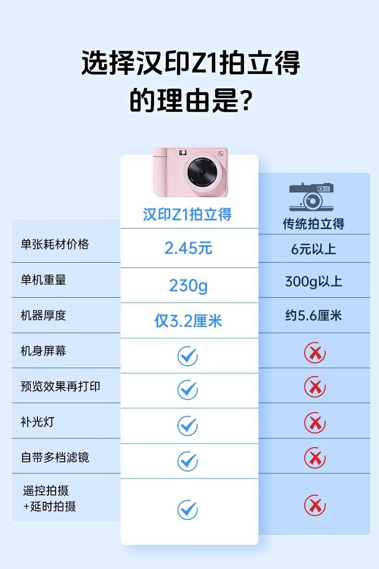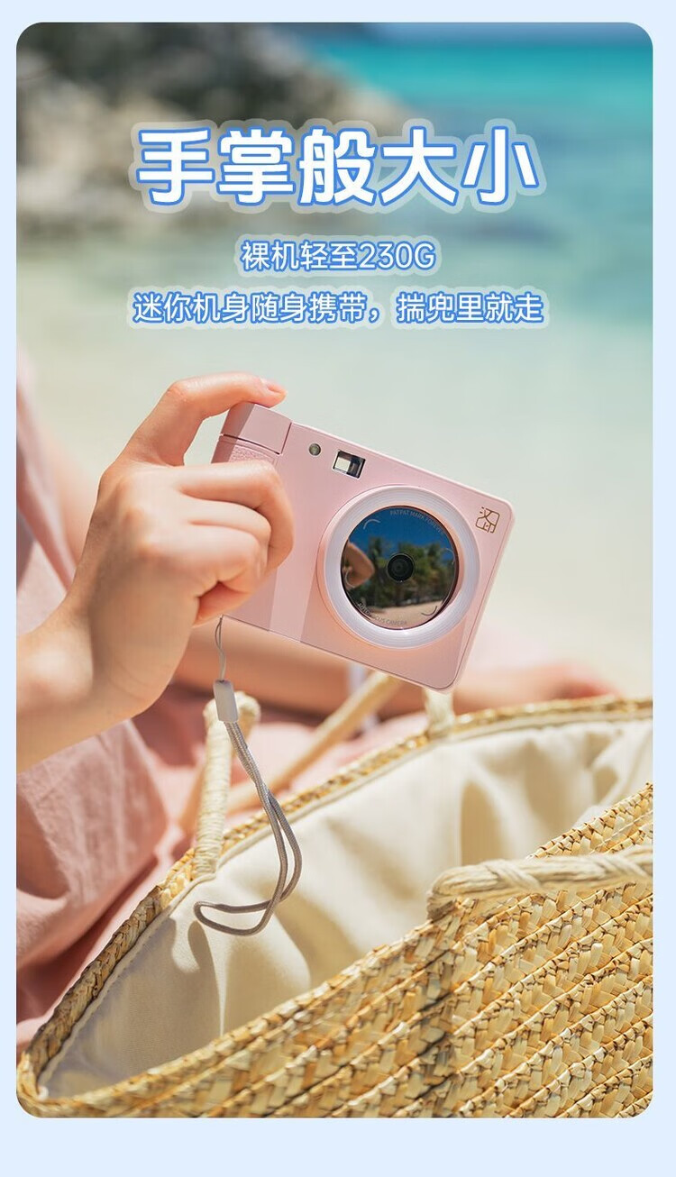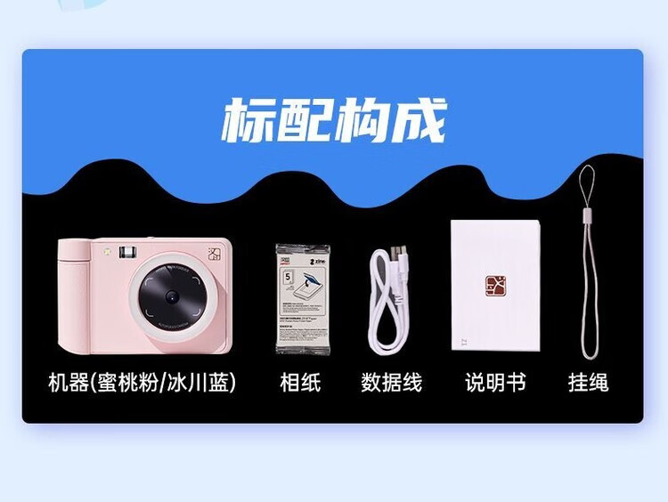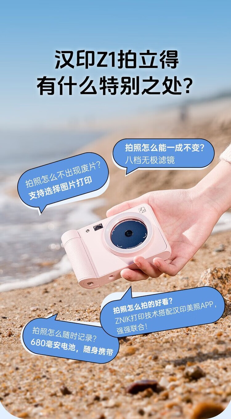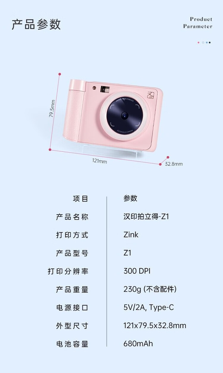 Hanyin (HPRT) Polaroid Camera Z1 Couple Photo Retouching AR Video Photo Camera Gift for Family Reunion Peach Pink Single Camera + 45 Photo Papers + Leather Tote Bag