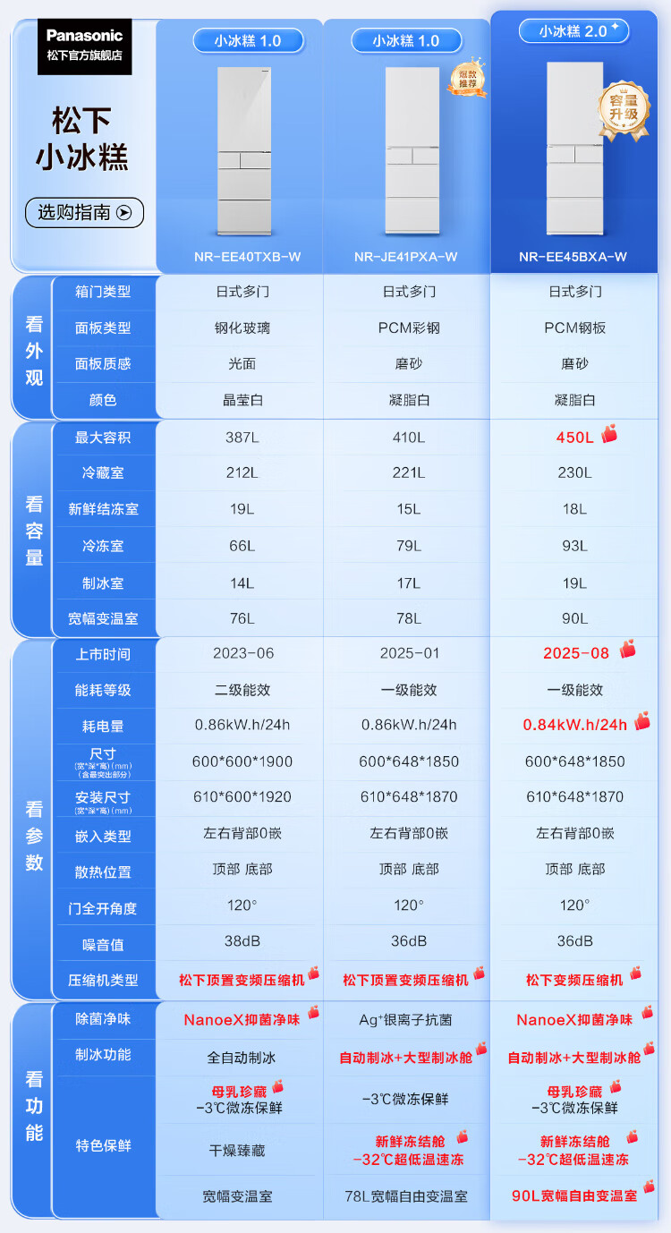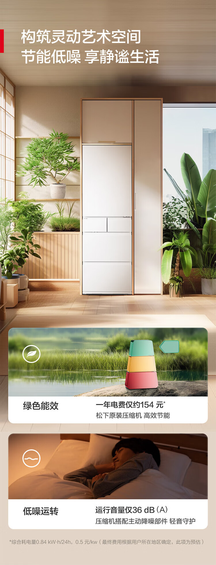 Panasonic (Panasonic) national subsidy Xiaobing 2.0 Japanese multi-door refrigerator French small apartment 450 household ultra-thin air-cooled frost-free automatic ice making first-class energy efficiency antibacterial and fresh-keeping Xiaobing 2.0 450 fine storage and storage EE45BXA