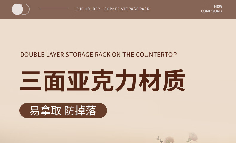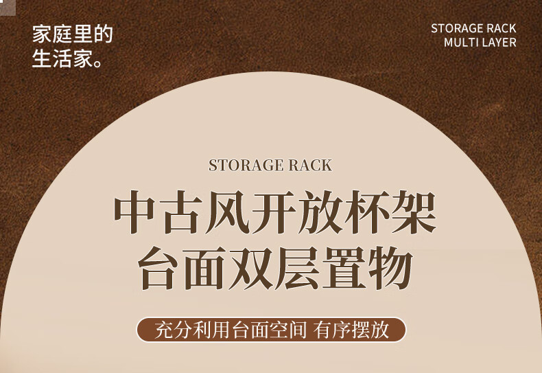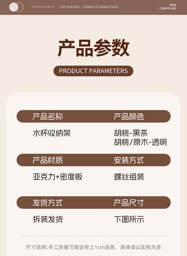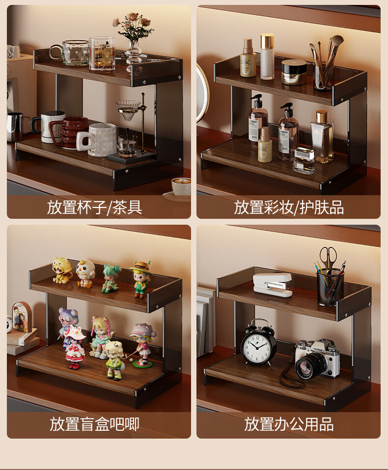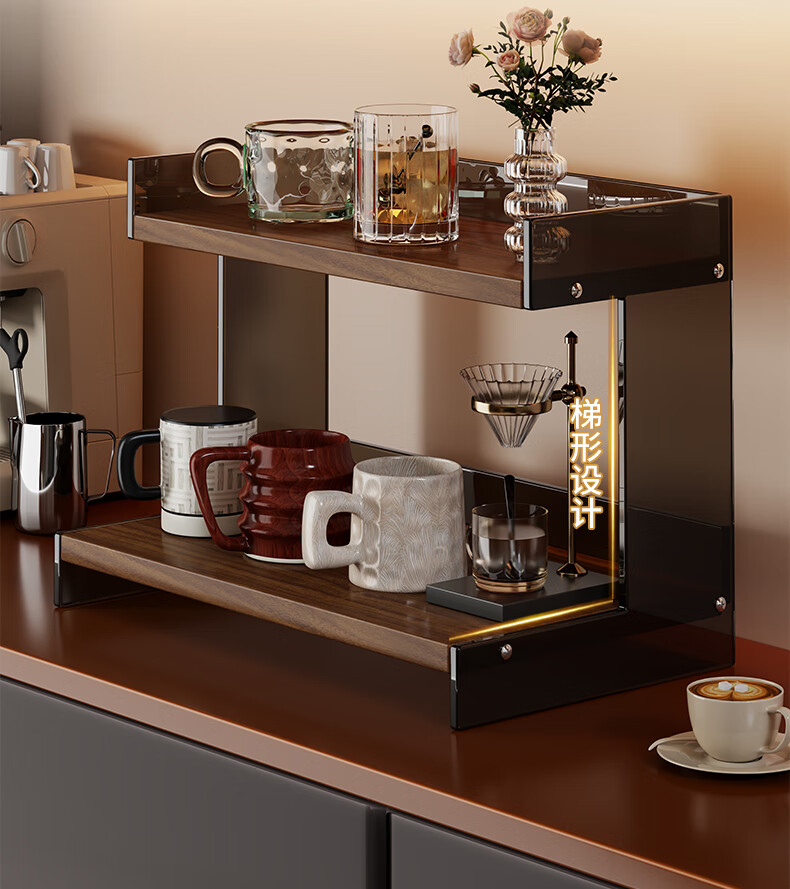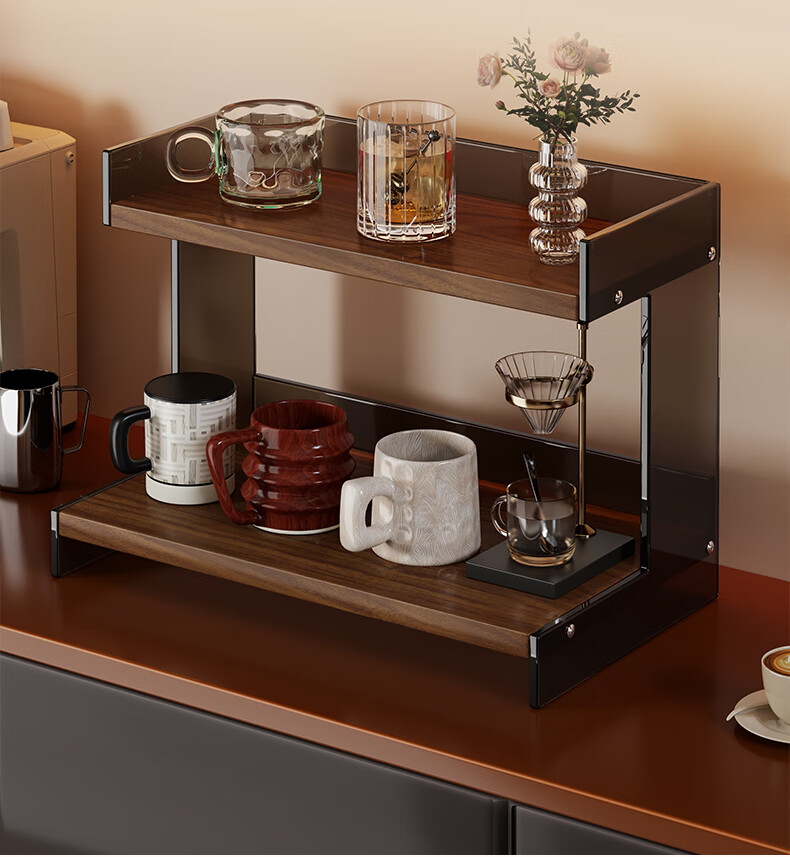 FANLILIN acrylic cup holder desktop cup storage rack dining table light luxury high-end coffee cup tea cup sideboard walnut color-black tea flat style medium size