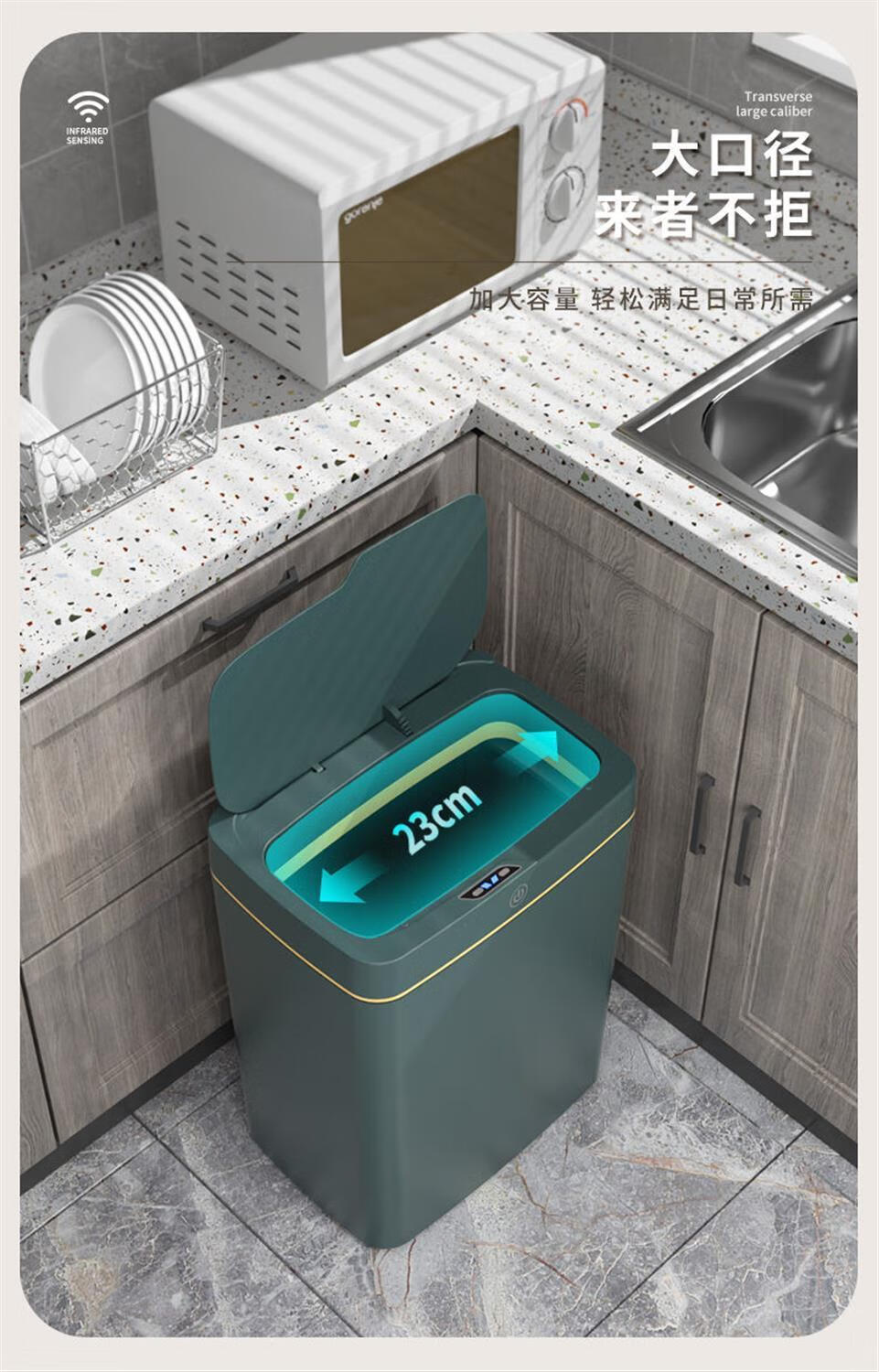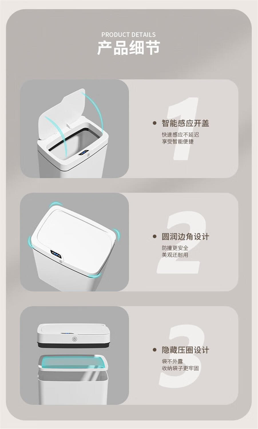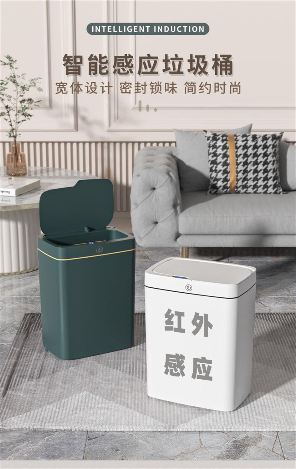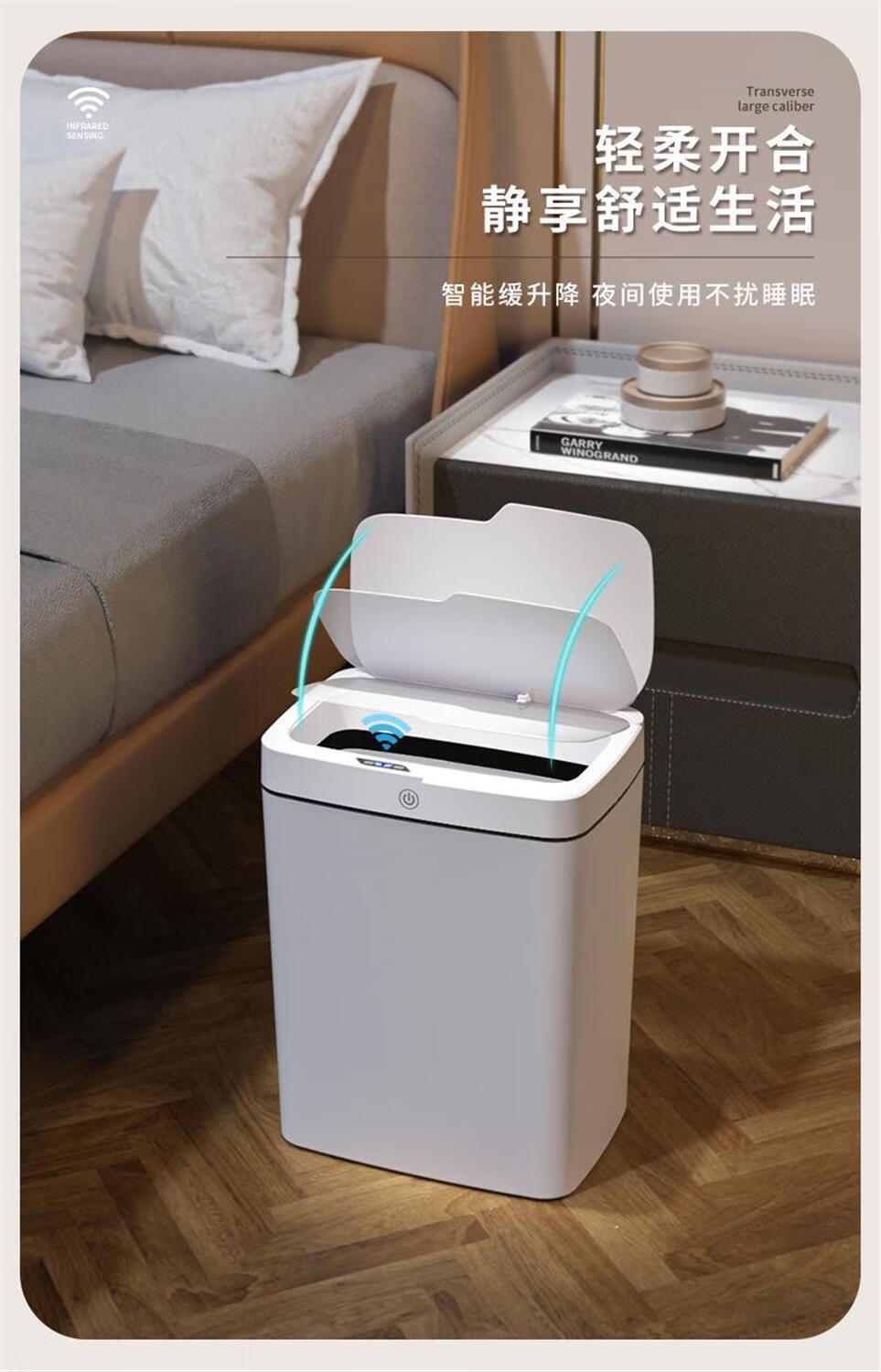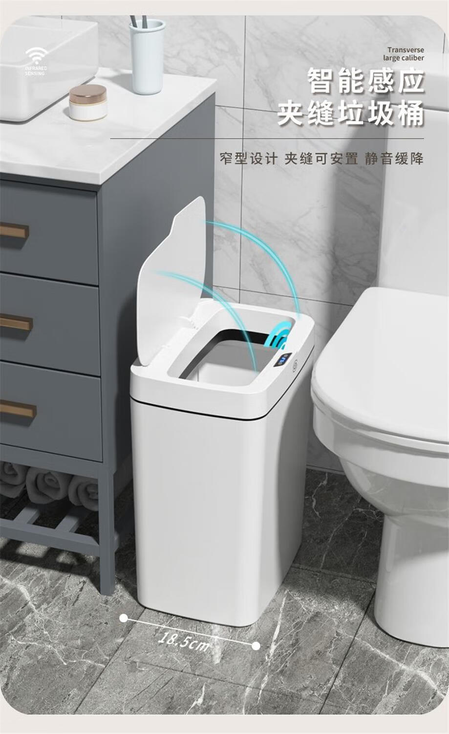 Intelligent induction trash can for home toilet, bathroom and kitchen, new electric automatic paper basket storage bucket 16L white (three modes - charging model)