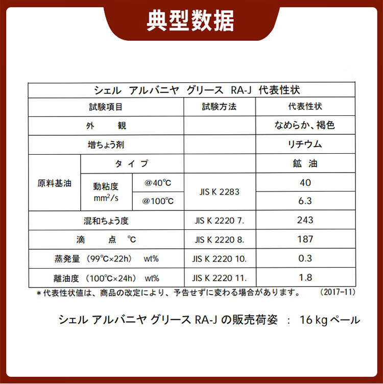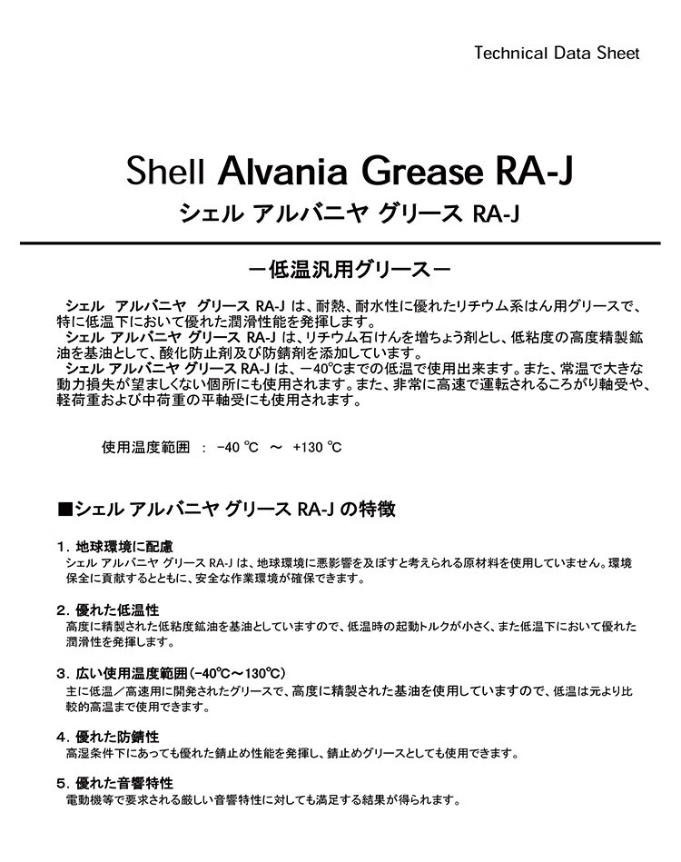 Japan Showa Shell Aiwanli SHELL ALVANIA RA-J low temperature general grease 16KG/barrel SHELL ALVANIA RA-J 16KG1