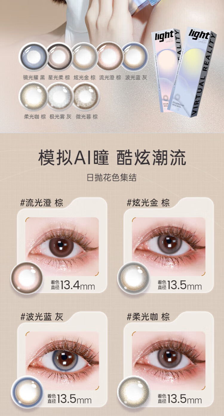 Haichang (HYDRON) Star Eyes Light-Chasing Color Contact Lenses Daily Disposable 10 Pieces Color Myopia Contact Lenses Size and Diameter Natural Dating for Men and Women Sunset Floating Brown - Large Diameter & Native Shallow Pupils | 38% Water 425 Degrees