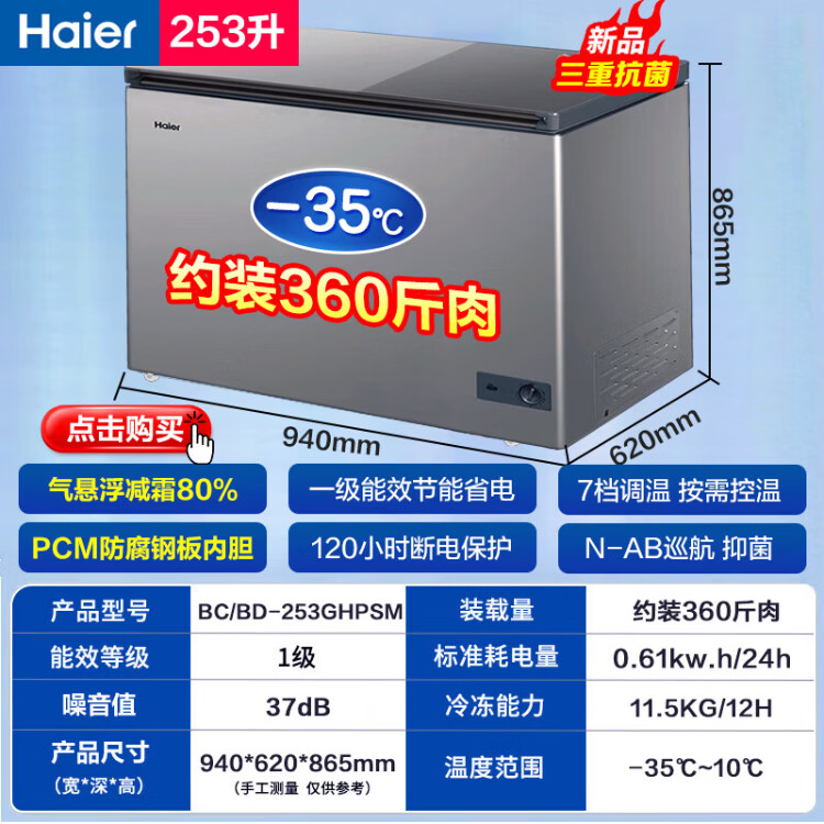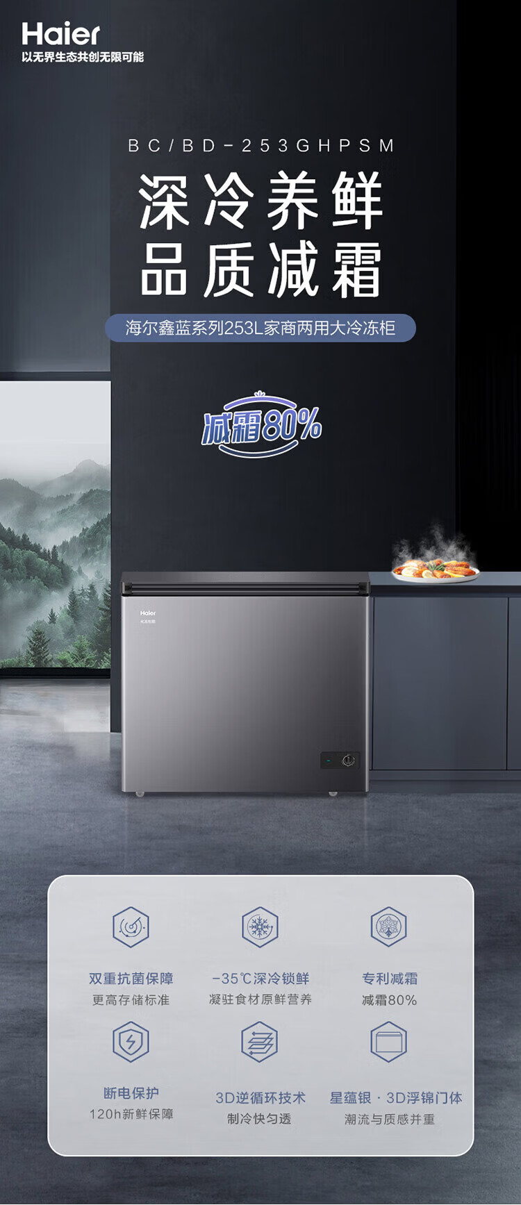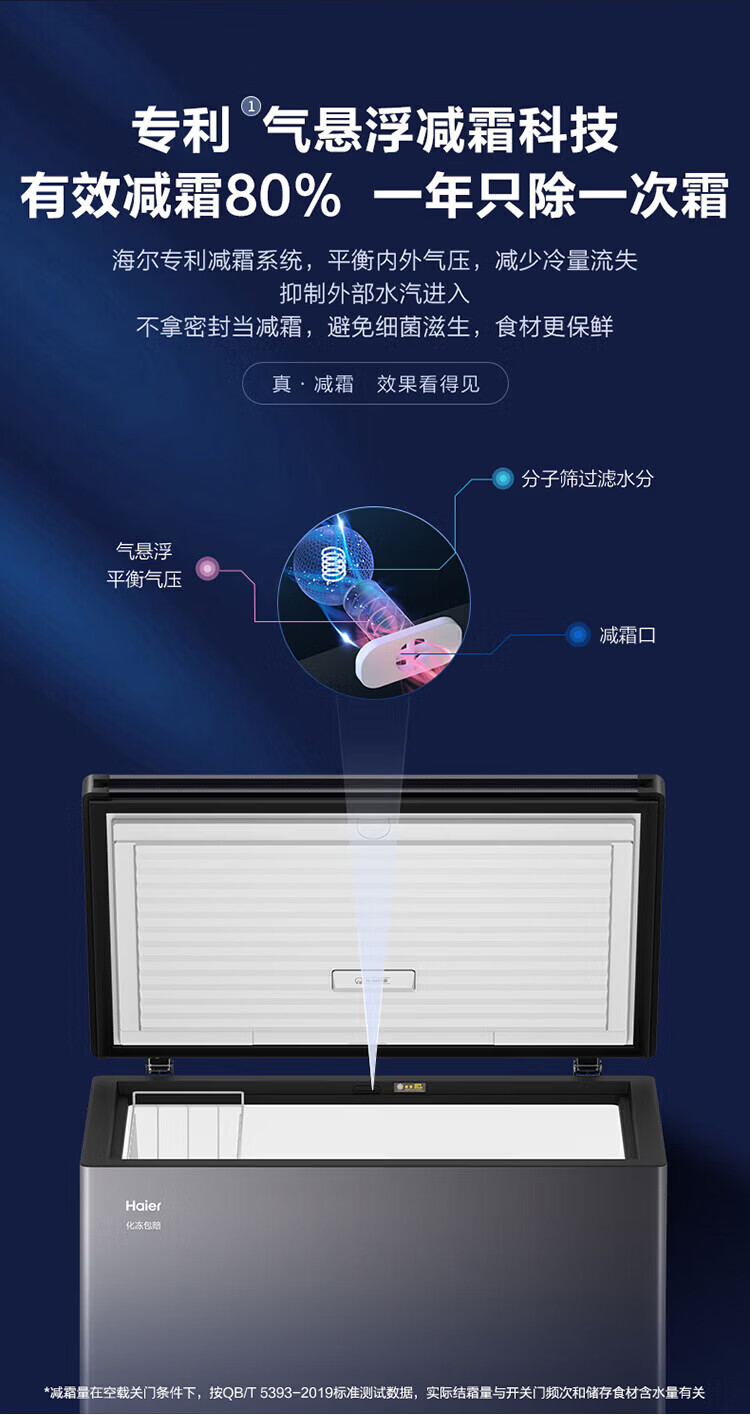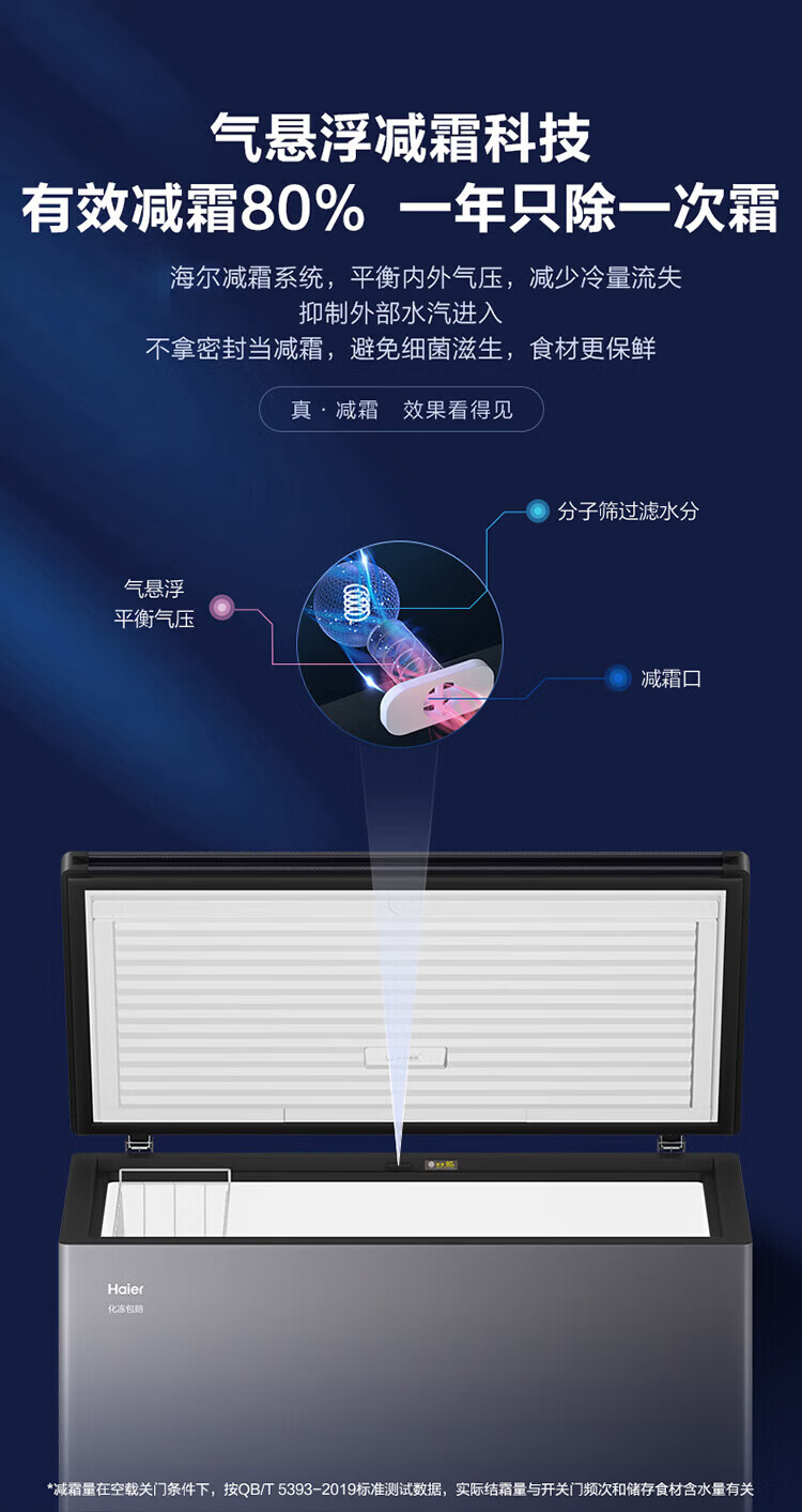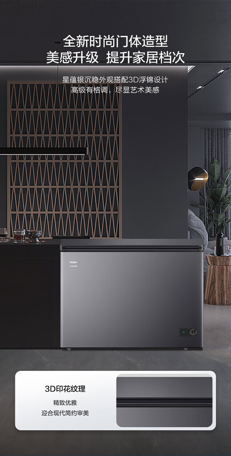 Haier minus 35 degrees quick-freezing ultra-low temperature freezer for household use without frequent defrosting, new level of energy efficiency and power saving, 300 liters large capacity full freezer, horizontal freezer subsidy 308 liters, newly upgraded, 1.1 meters long, 436 pounds frozen, power saving + sterilization