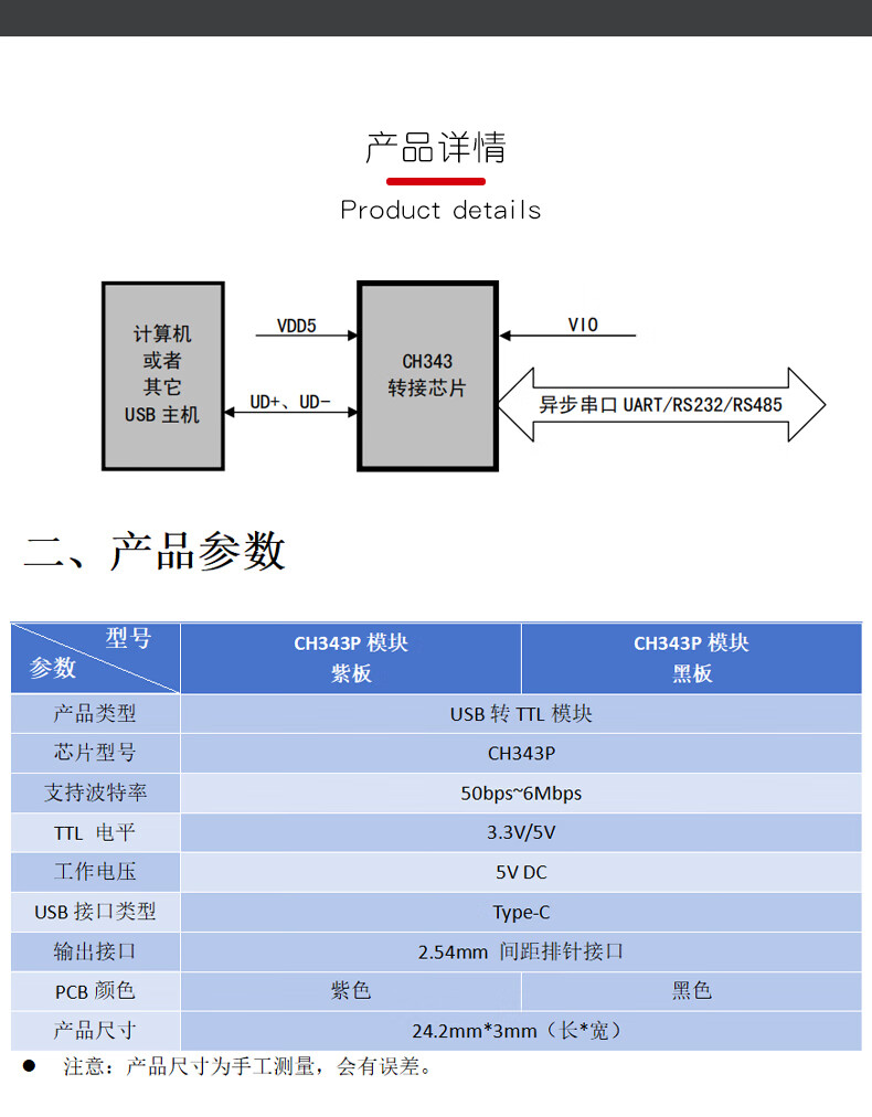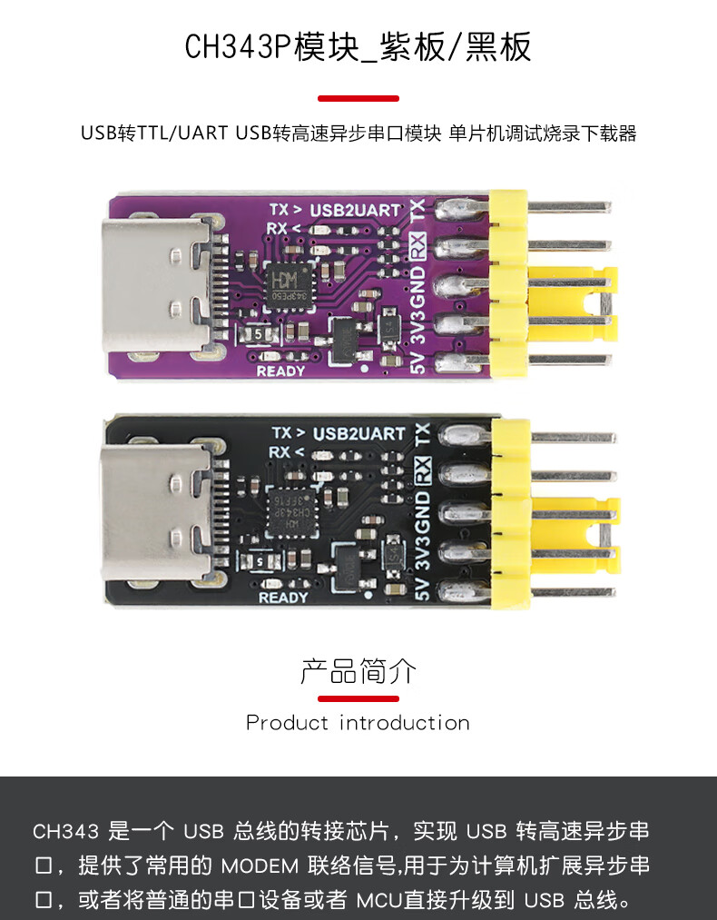 CH343P module USB to TTL/UART USB to high-speed asynchronous serial port MCU Burning downloader CH343P module_Purple board No specifications
