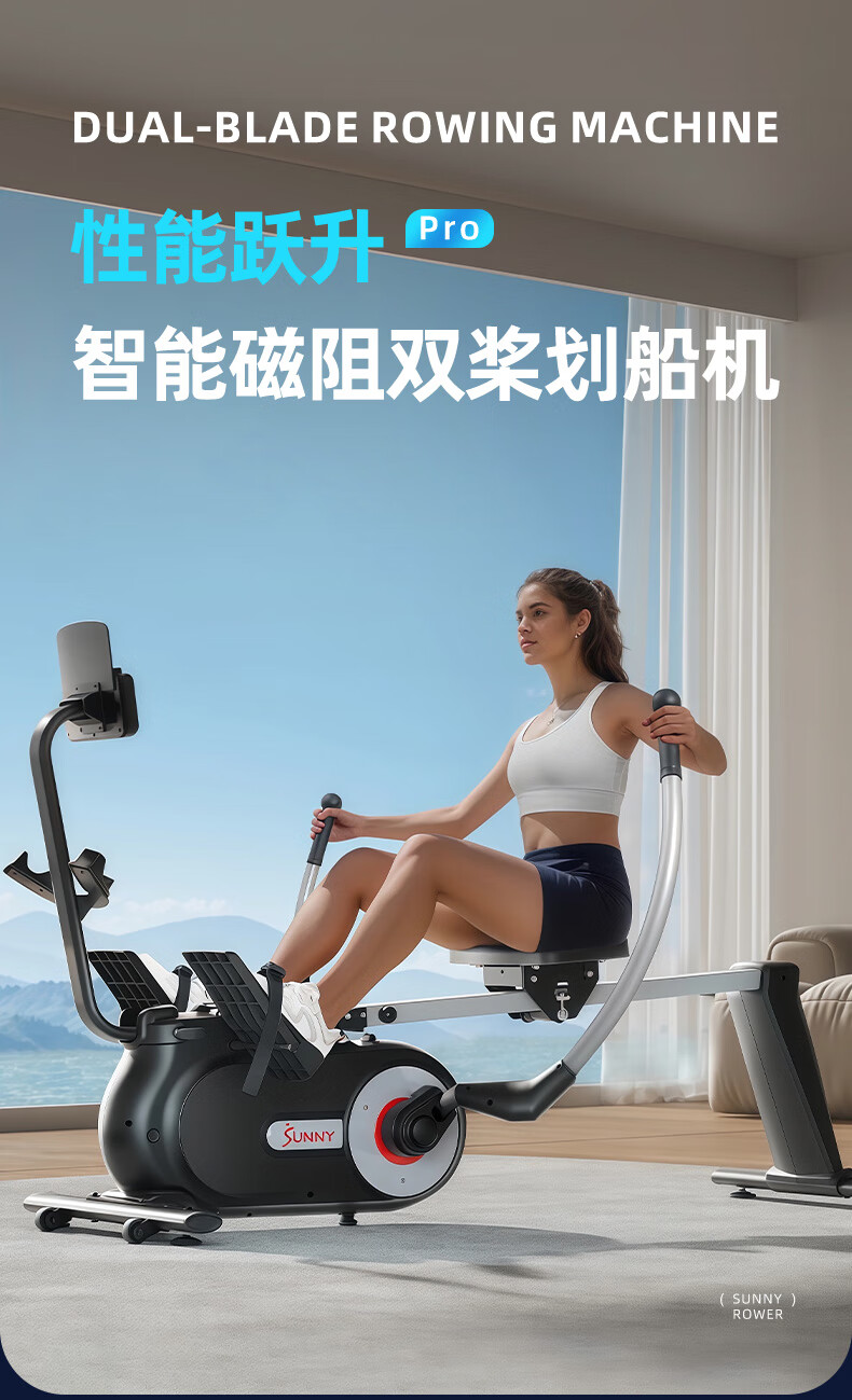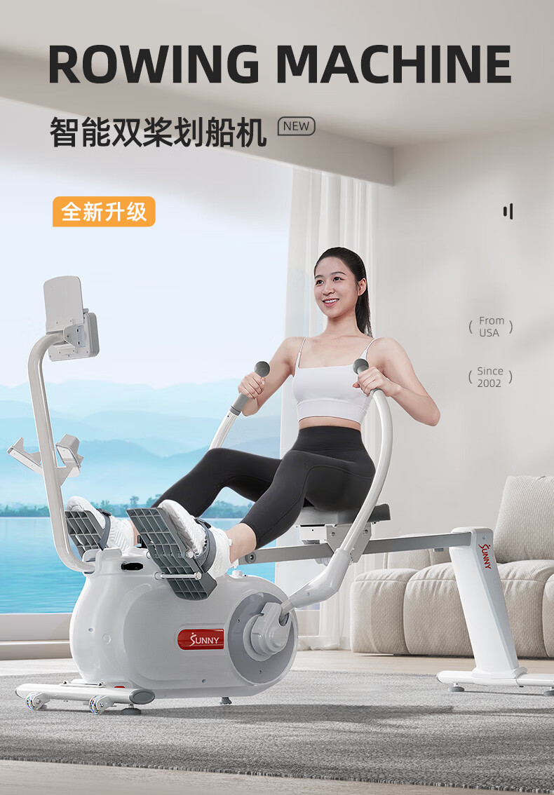 SUNNY American sculls rowing machine home fitness equipment indoor magnetic resistance silent knee pads exercise shoulder and neck European and American same model/door installation