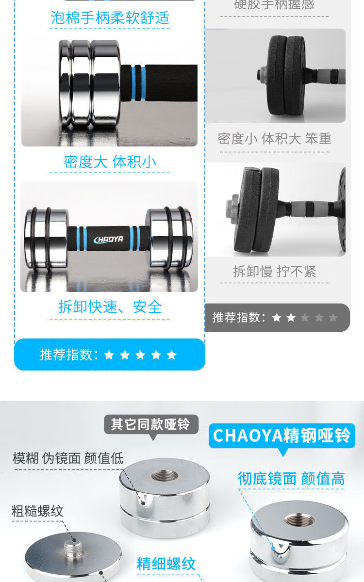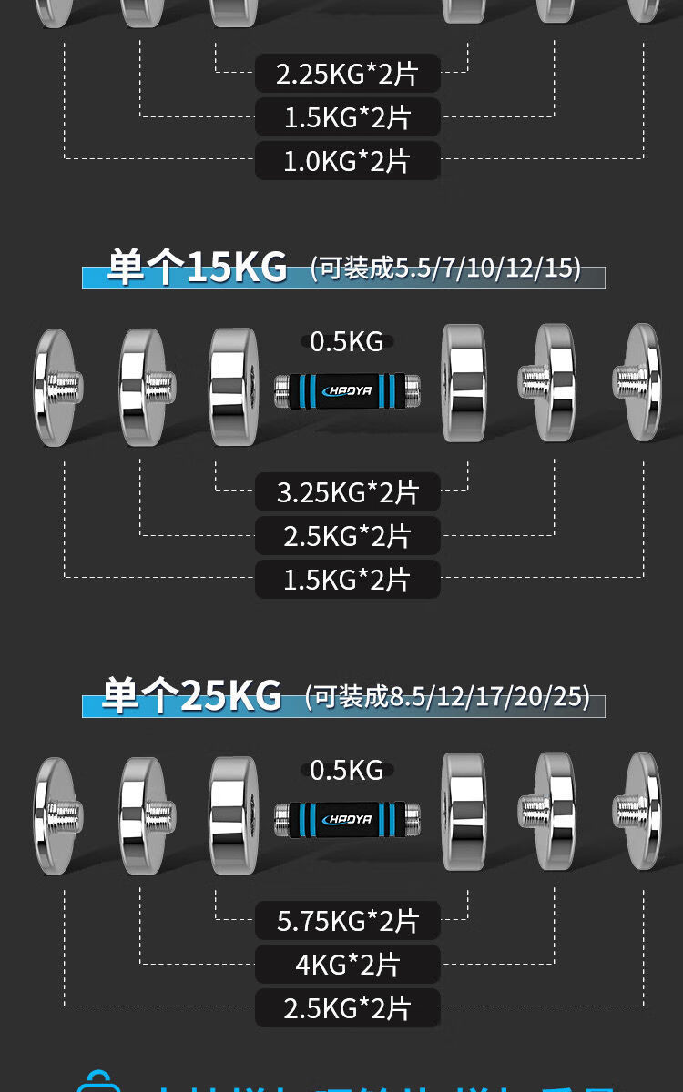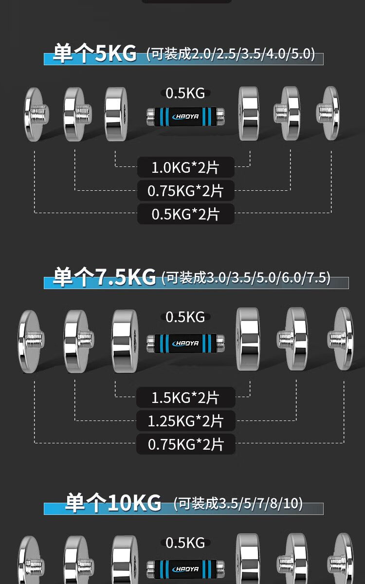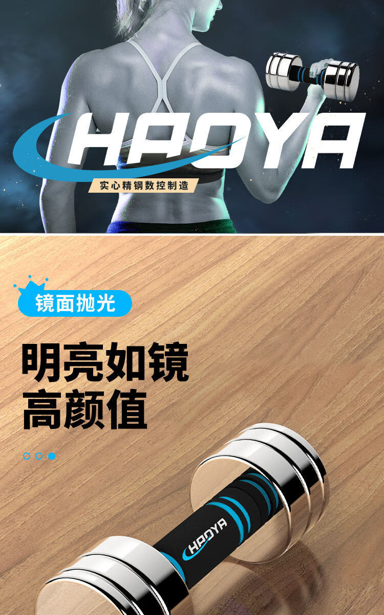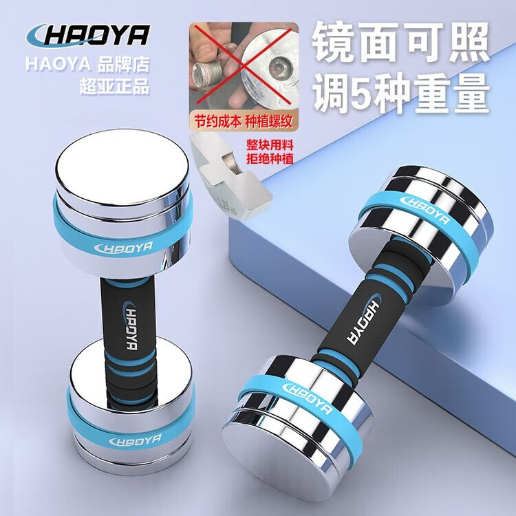 HAOYA mirror electroplated pure steel dumbbells adjustable multi-functional home fitness barbells can be assembled slightly new 5KG (2.5kgx2 pieces) children and students