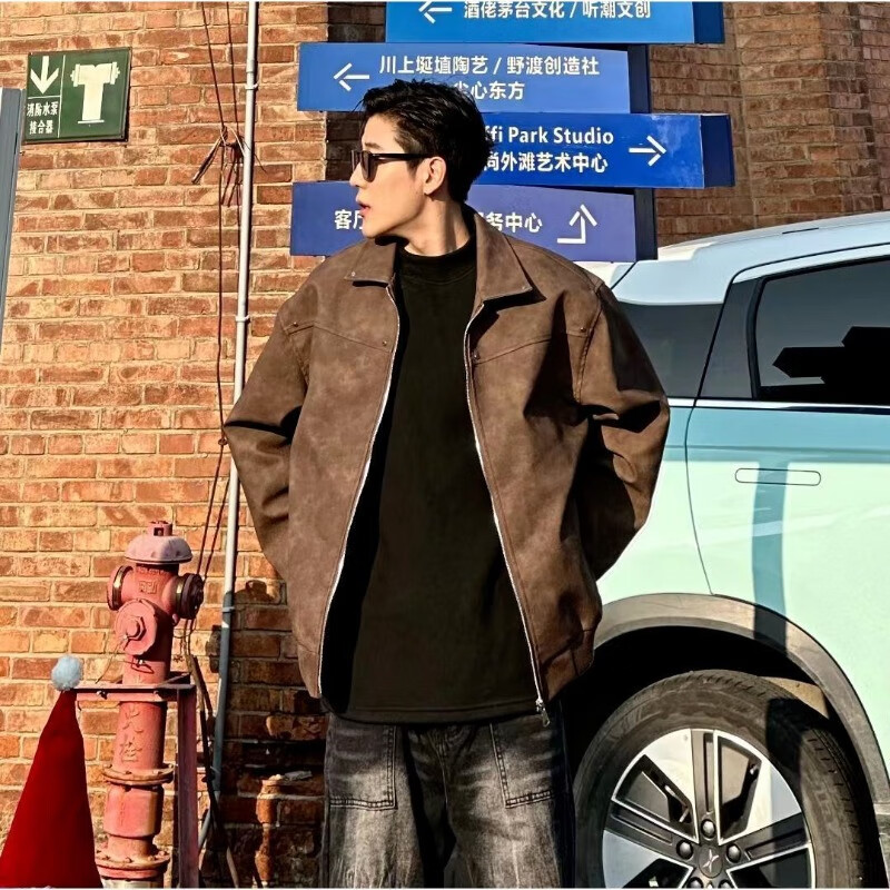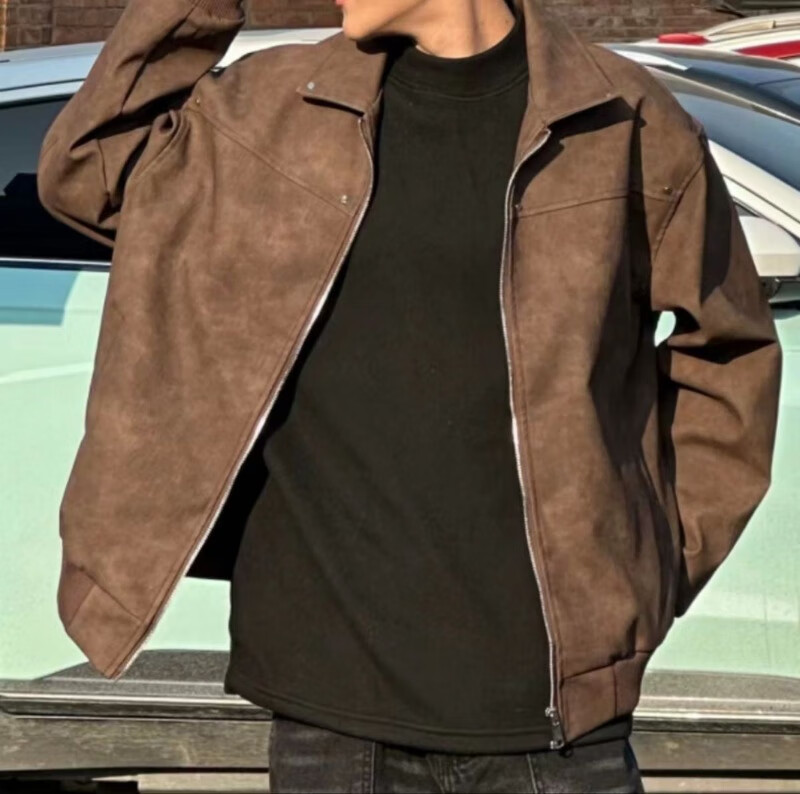PU leather American retro rivet jacket men's spring and autumn lapel baseball uniform Maillard couple leather jacket W507 brown special price leakage XL upgraded version