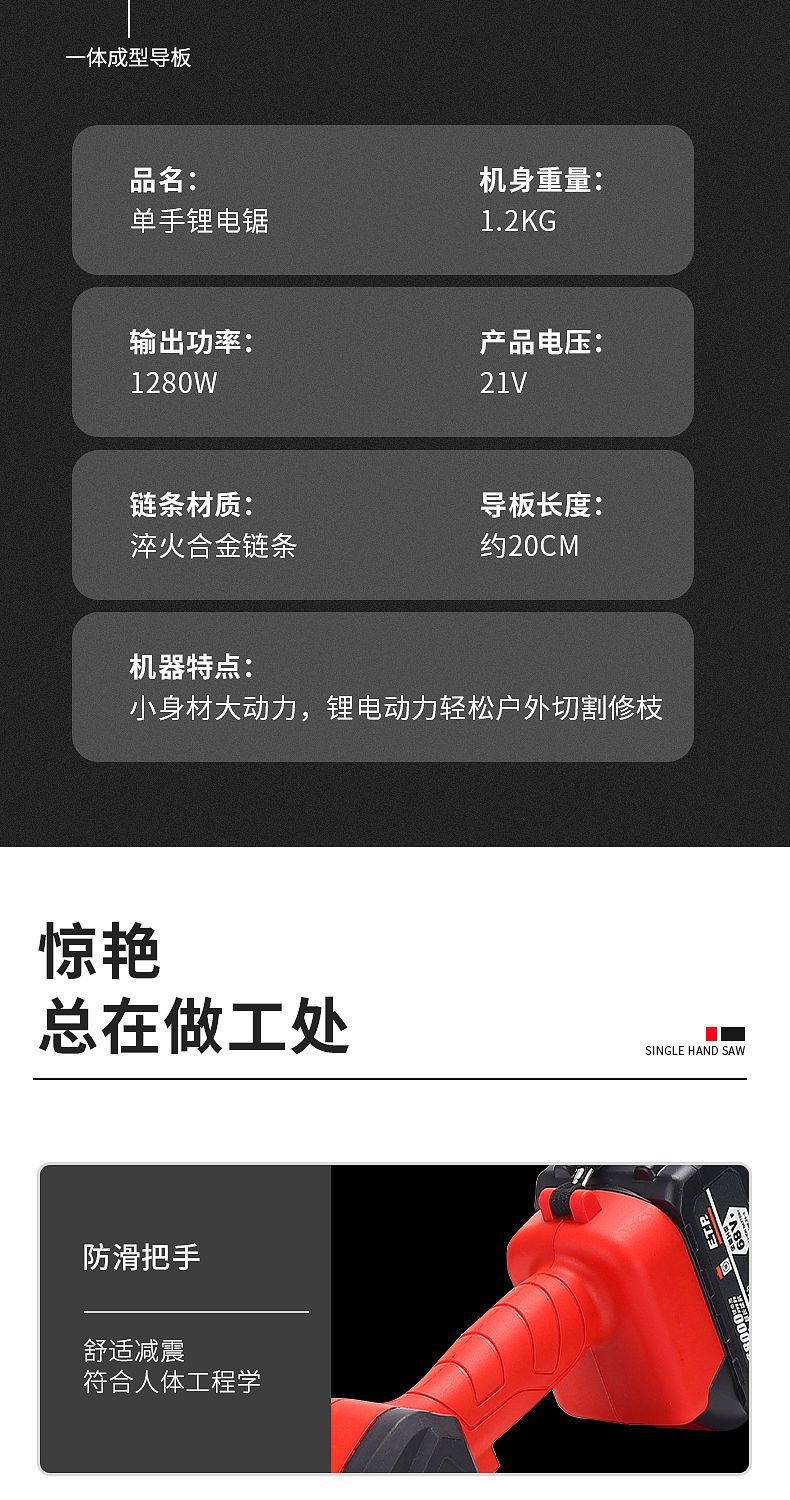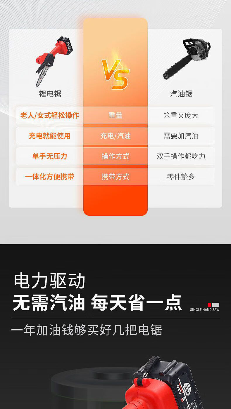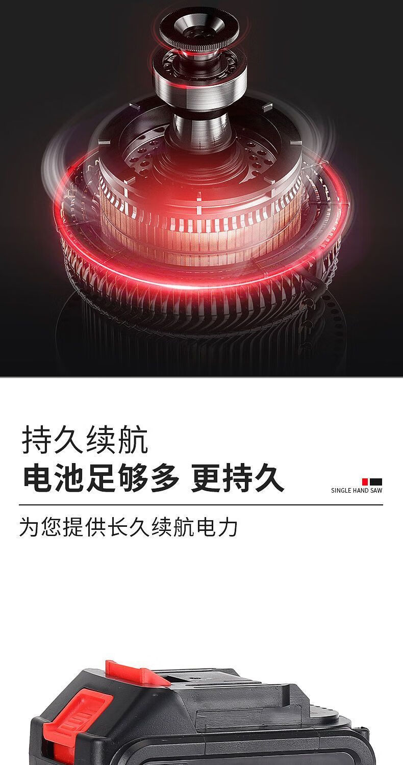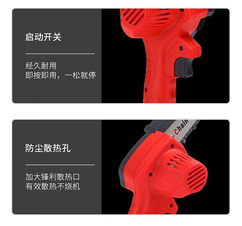 Electric chainsaw rechargeable portable lithium-electric chain saw outdoor wireless small logging hand saw for tree cutting and pruning high-power enhanced single-hand saw-8 inches-5 sections 2 electric 2 chains