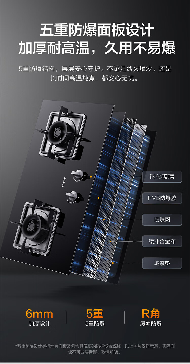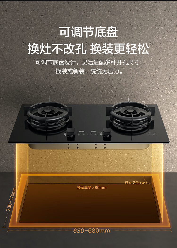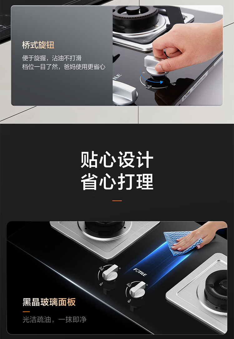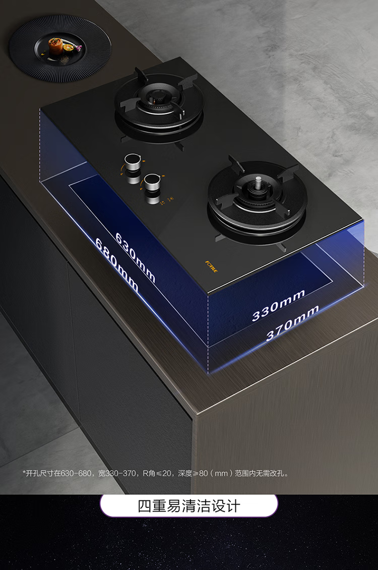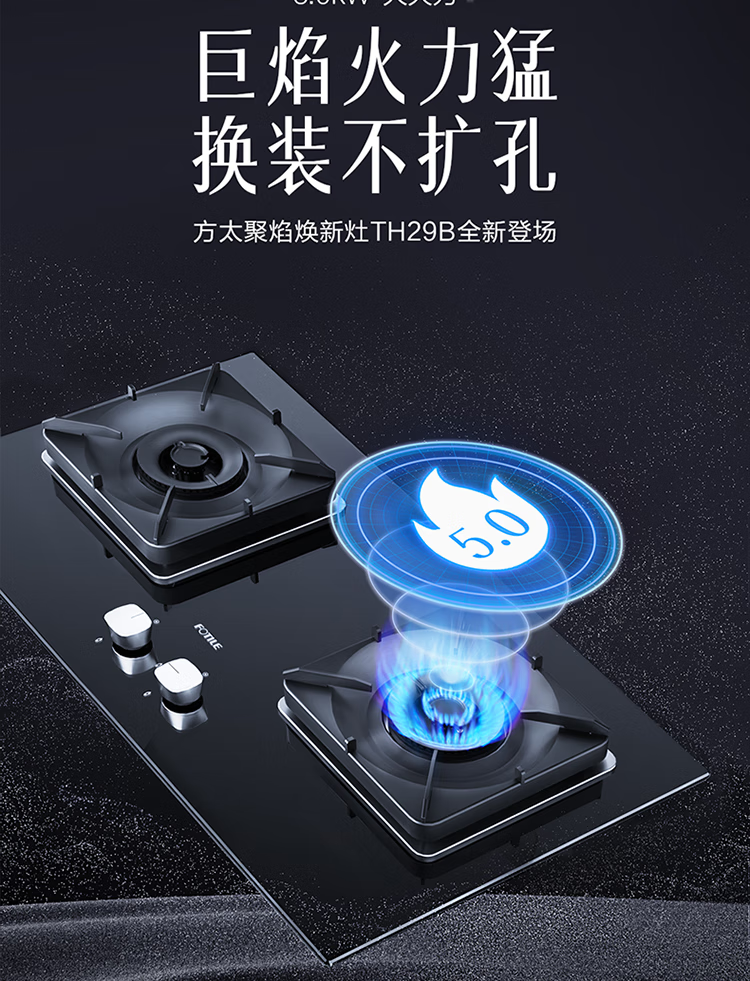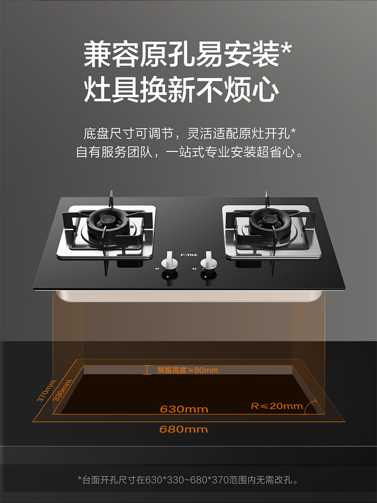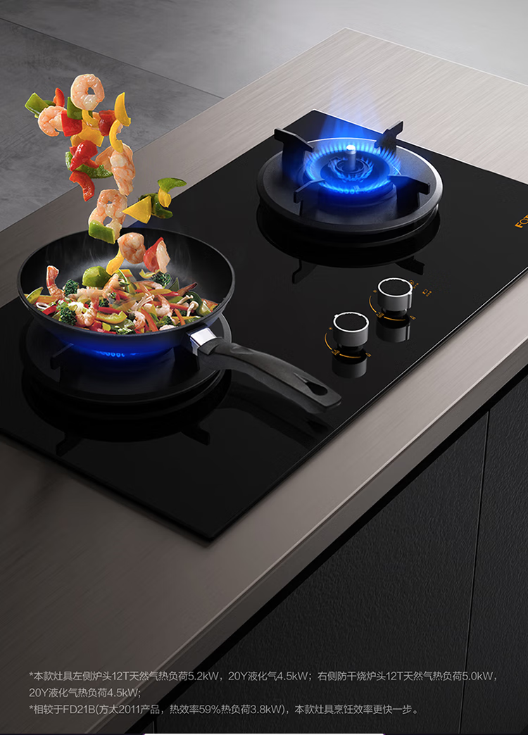 FOTILE gas stove double stove household desktop embedded dual-purpose stove first-class energy efficiency full air intake high-power natural gas liquefied gas stove flameout protection six layers of explosion-proof TX22 5.2KW high flame stove / burner head detachable