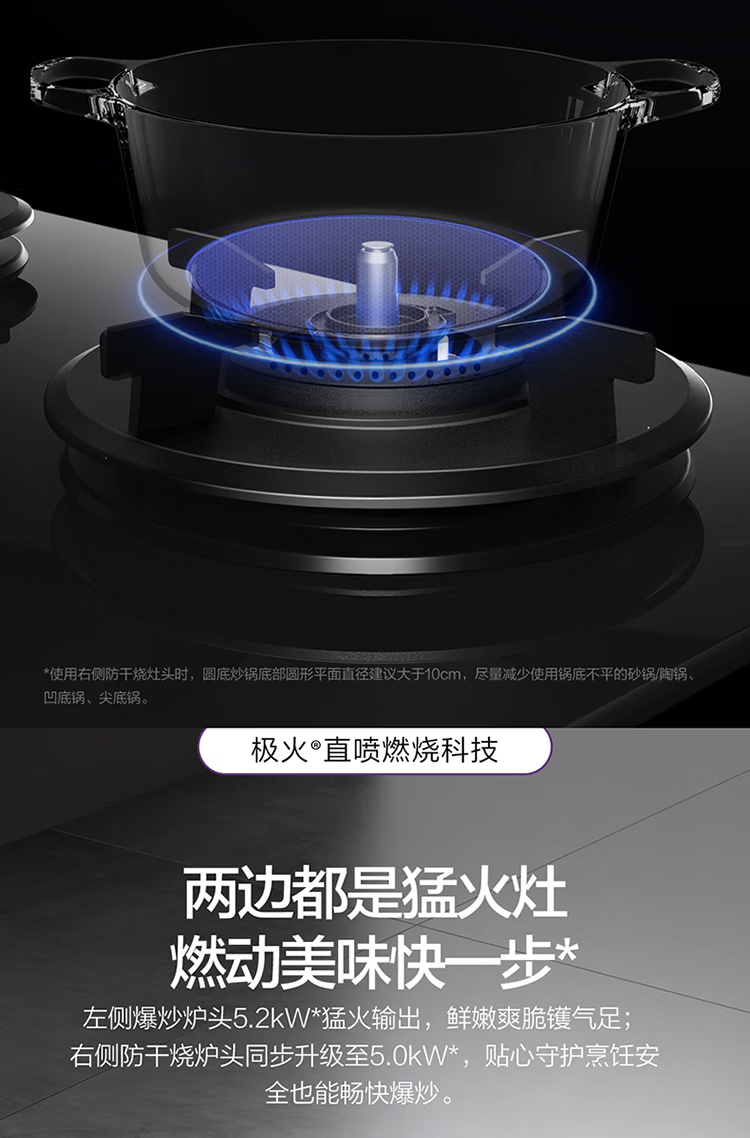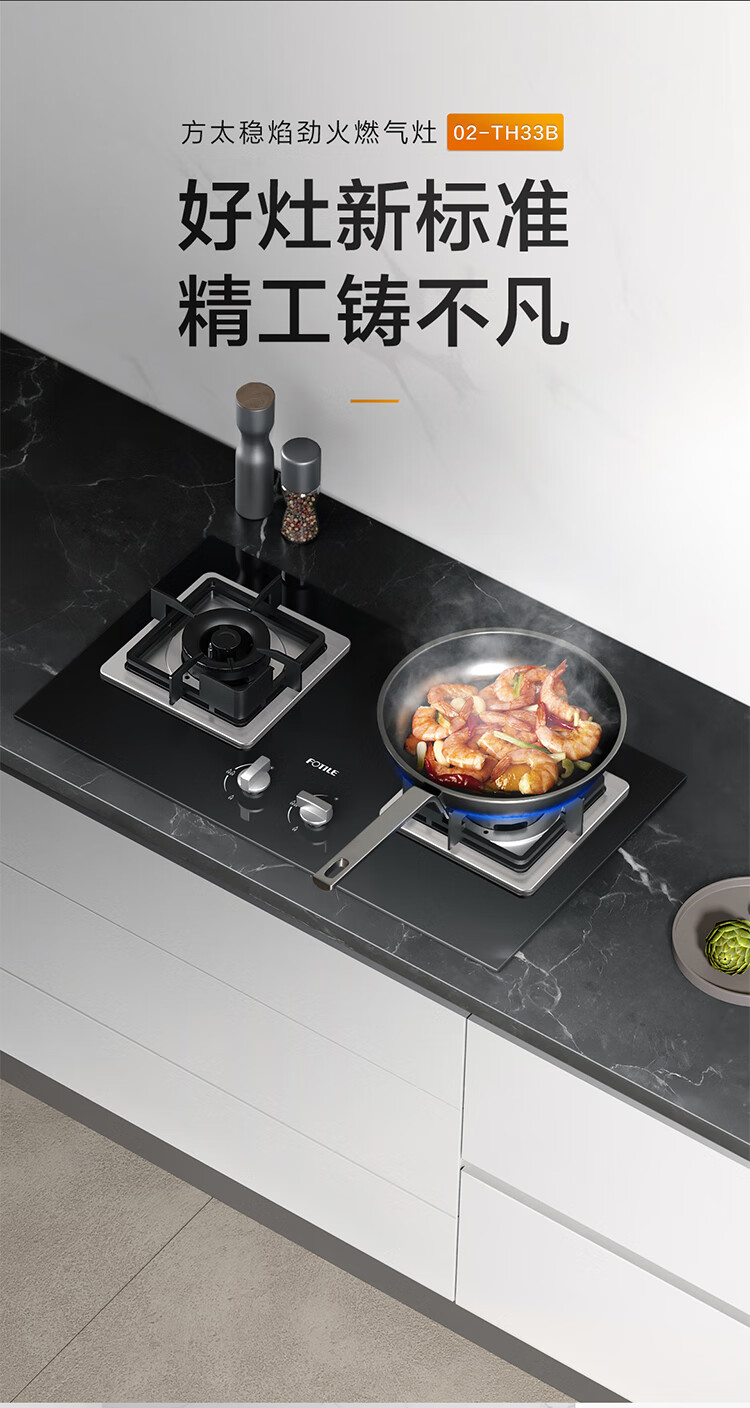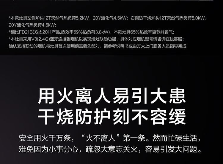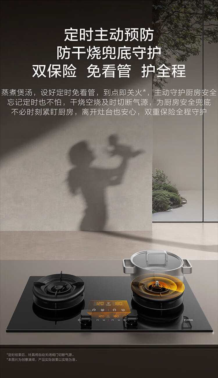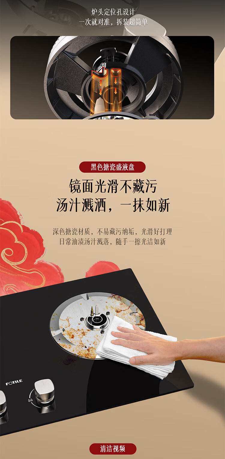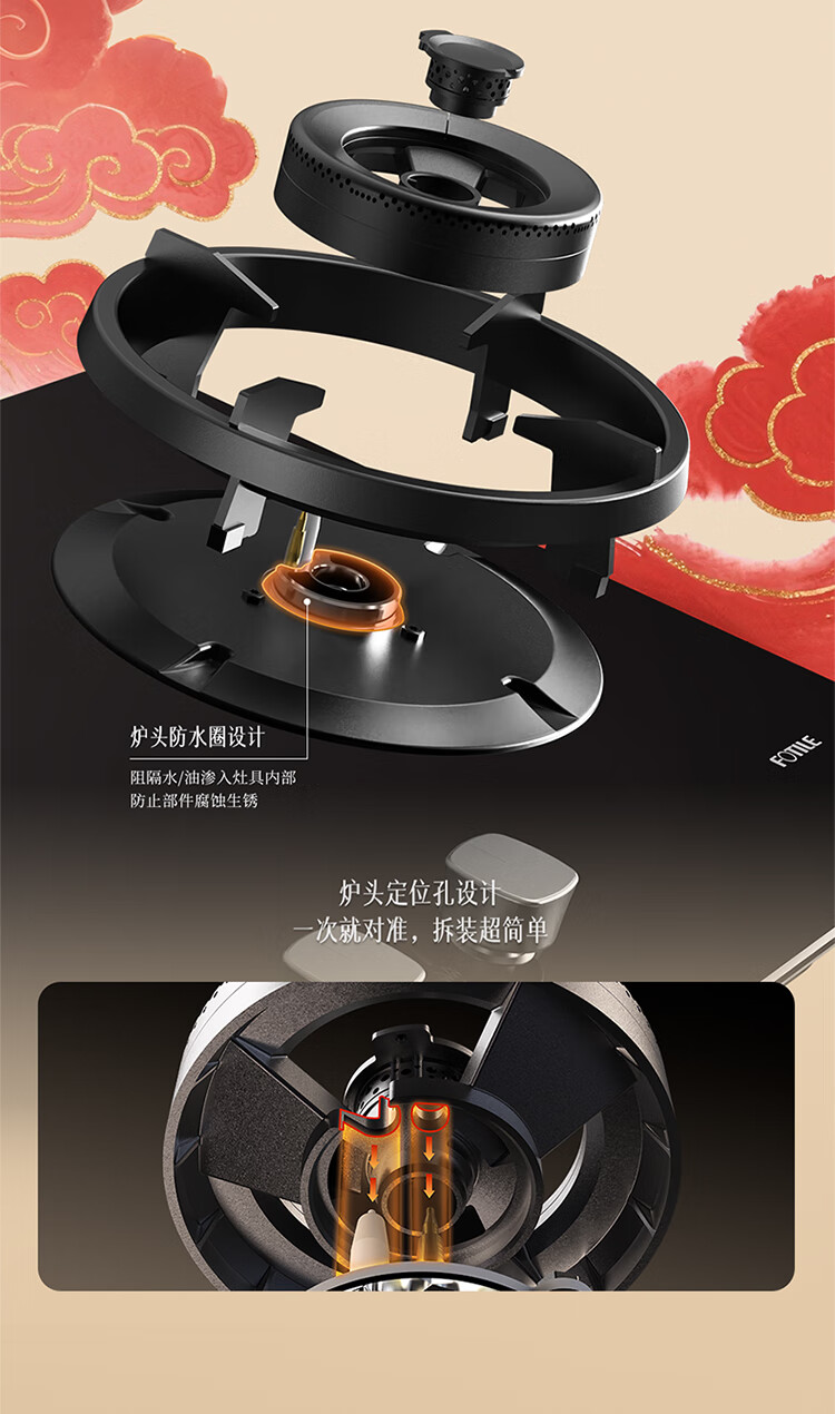 FOTILE gas stove double stove household desktop embedded dual-purpose stove first-class energy efficiency full air intake high-power natural gas liquefied gas stove flameout protection six layers of explosion-proof TX22 5.2KW high flame stove / burner head detachable