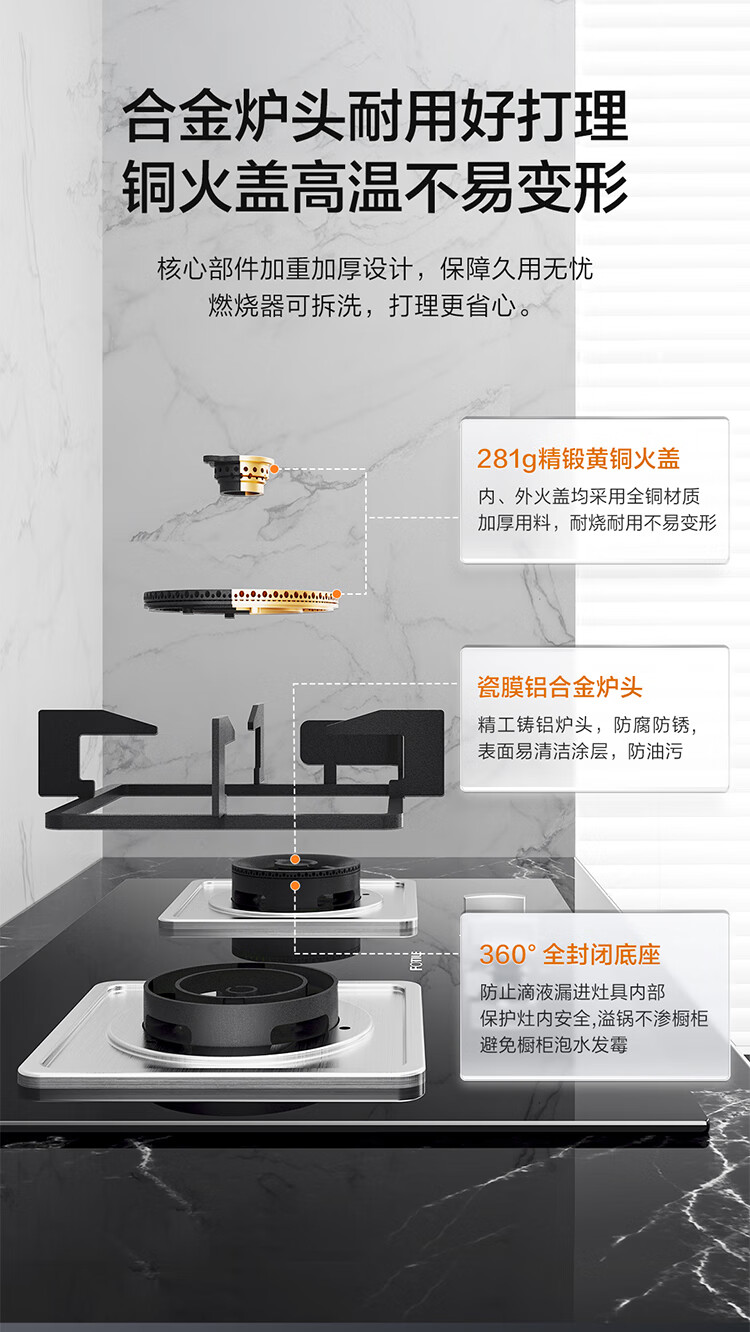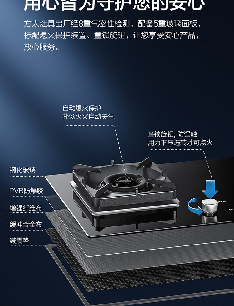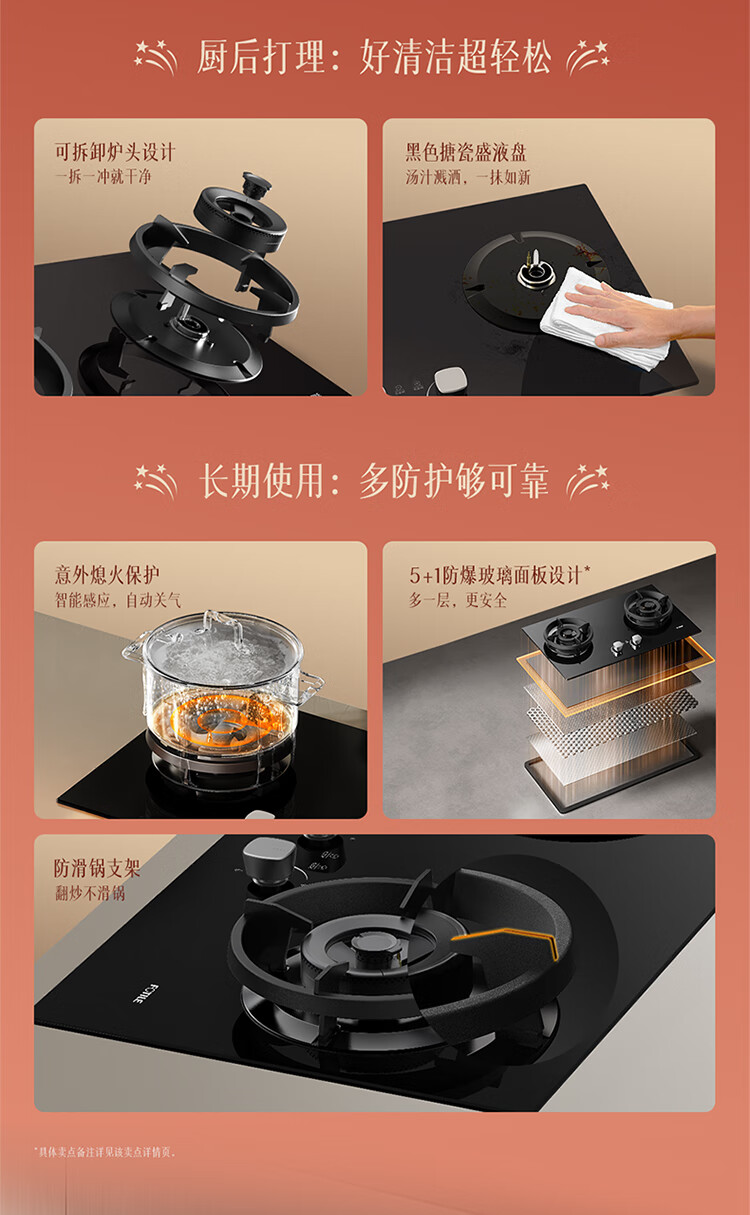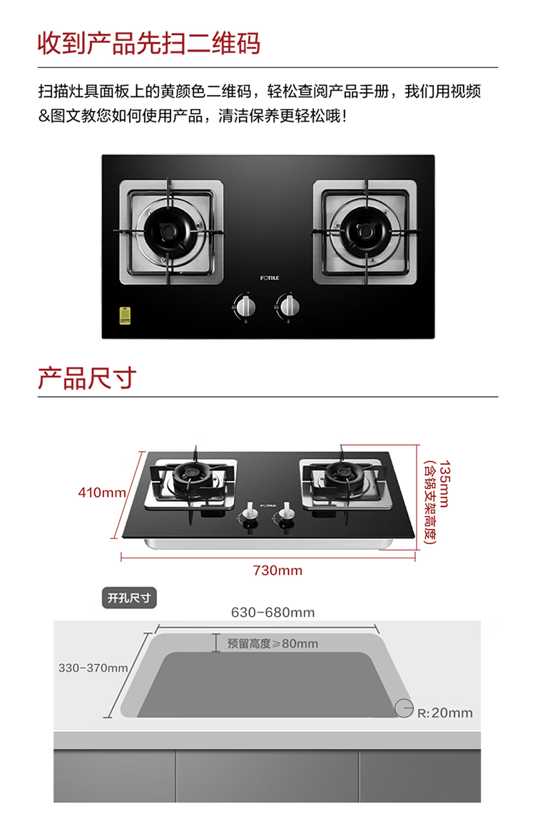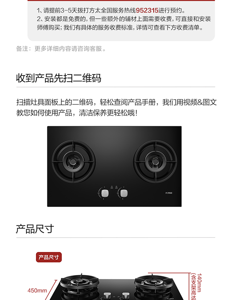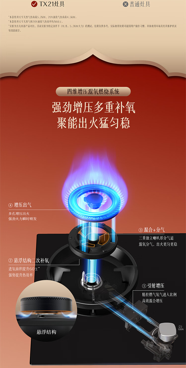 FOTILE gas stove double stove household desktop embedded dual-purpose stove first-class energy efficiency full air intake high-power natural gas liquefied gas stove flameout protection six layers of explosion-proof TX22 5.2KW high flame stove / burner head detachable