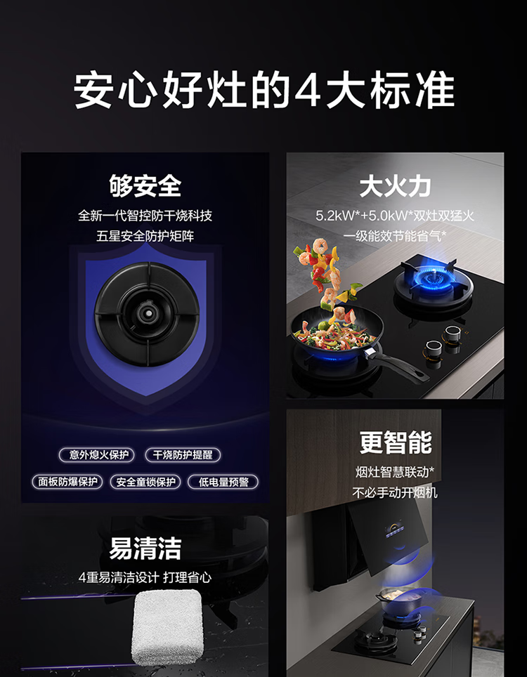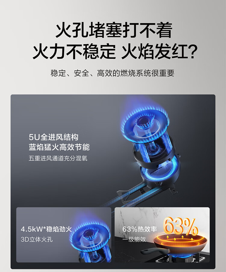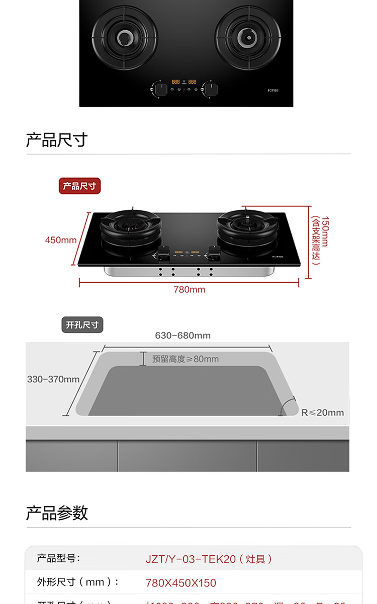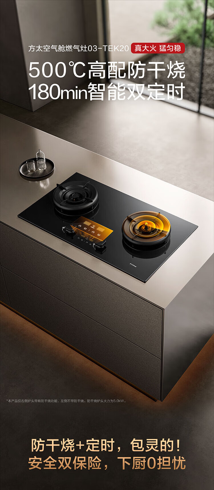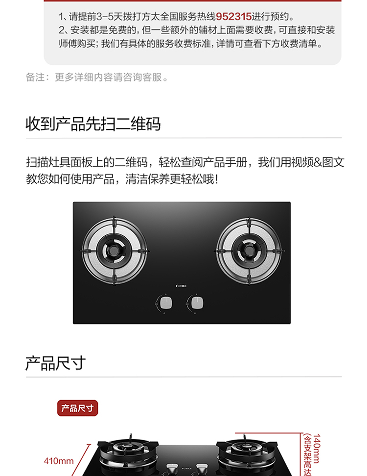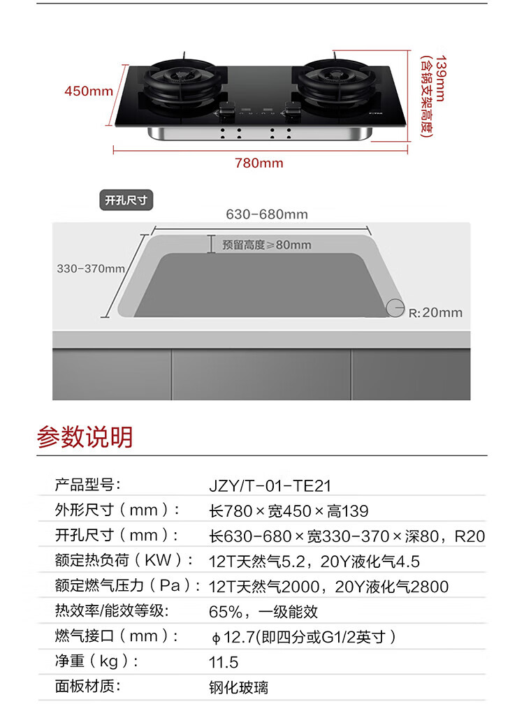 FOTILE gas stove double stove household desktop embedded dual-purpose stove first-class energy efficiency full air intake high-power natural gas liquefied gas stove flameout protection six layers of explosion-proof TX22 5.2KW high flame stove / burner head detachable