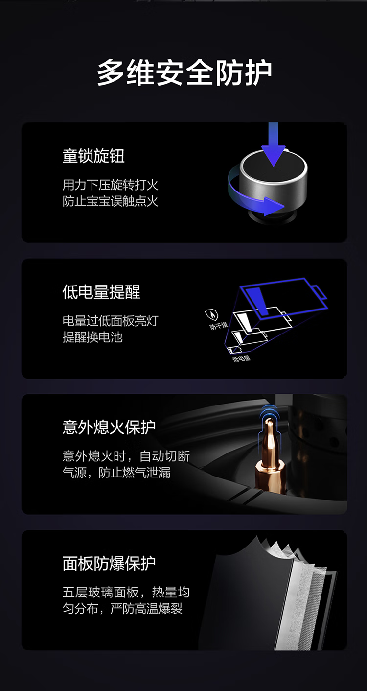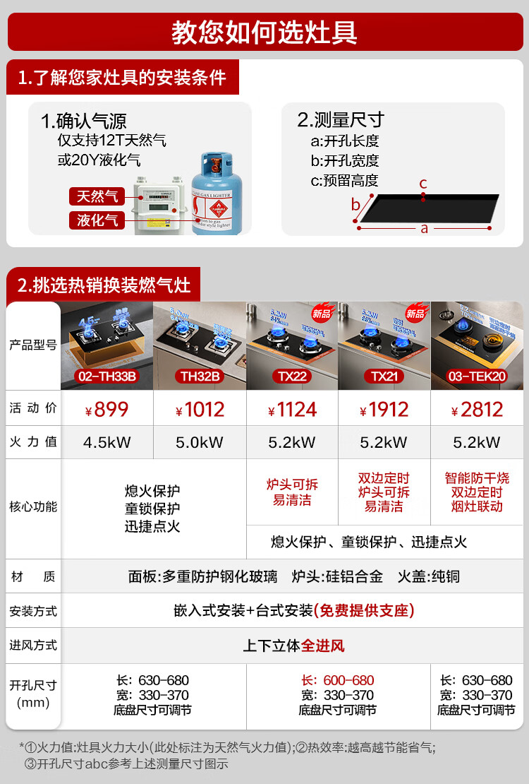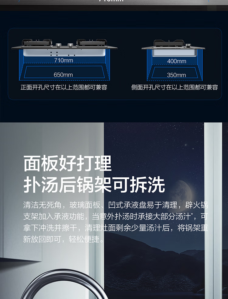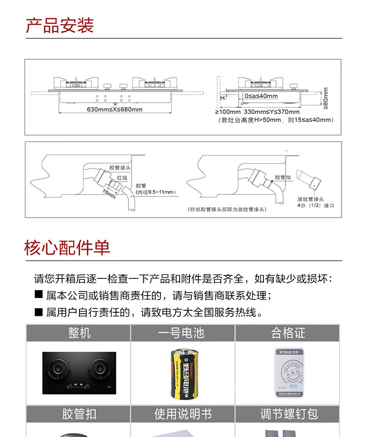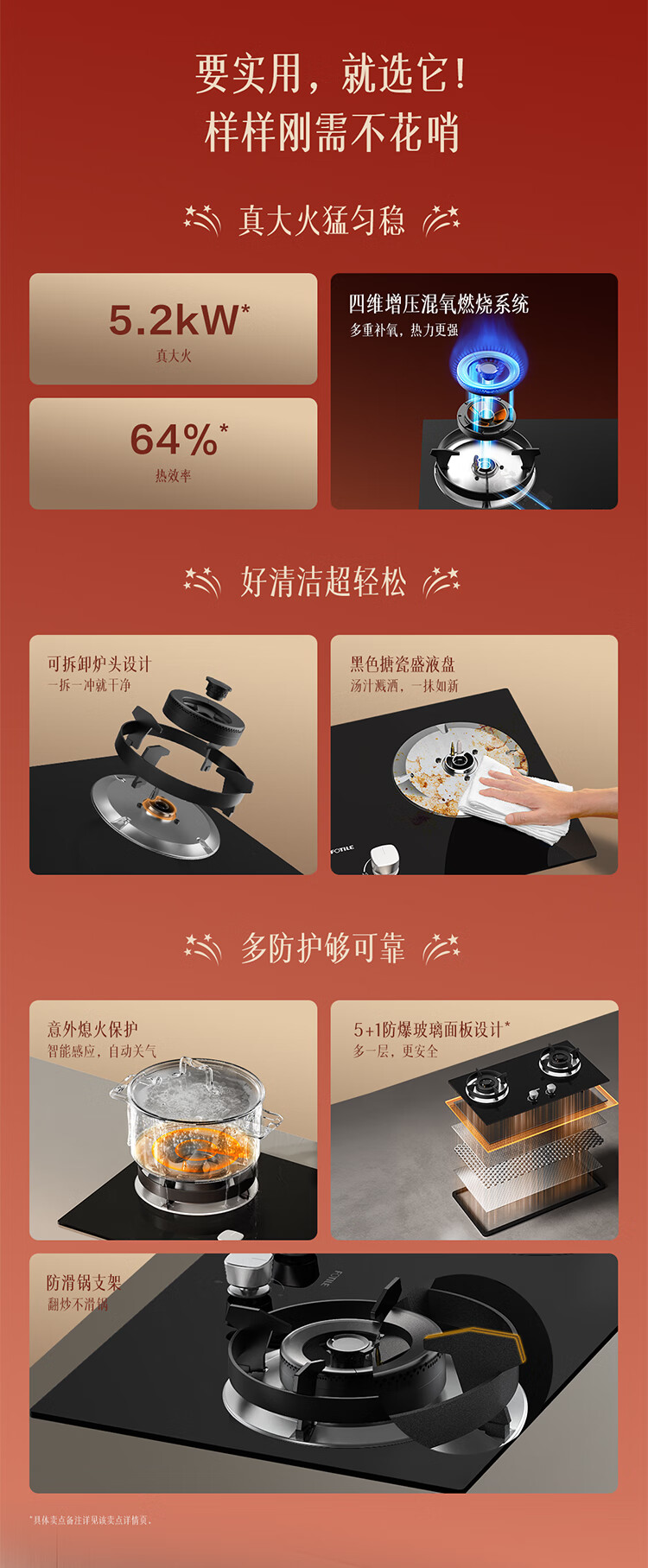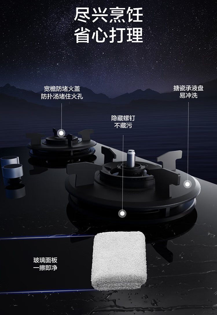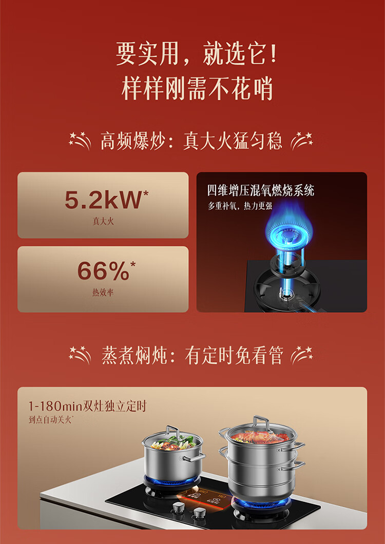 FOTILE gas stove double stove household desktop embedded dual-purpose stove first-class energy efficiency full air intake high-power natural gas liquefied gas stove flameout protection six layers of explosion-proof TX22 5.2KW high flame stove / burner head detachable